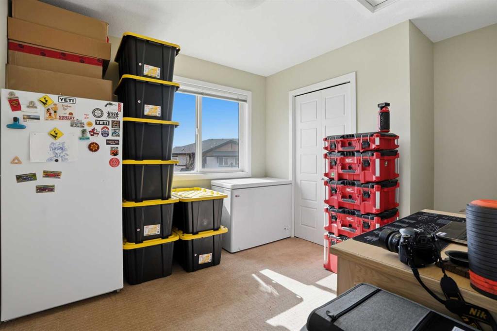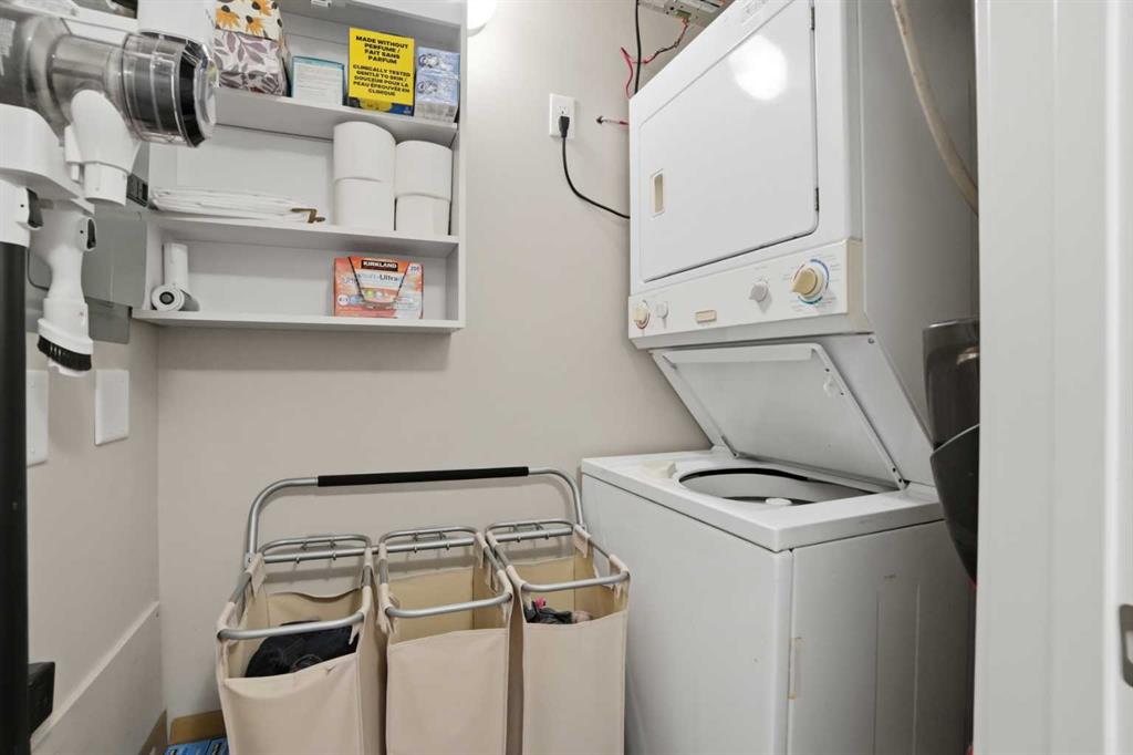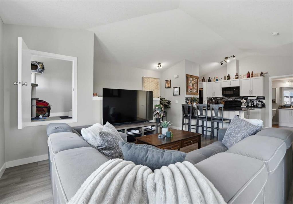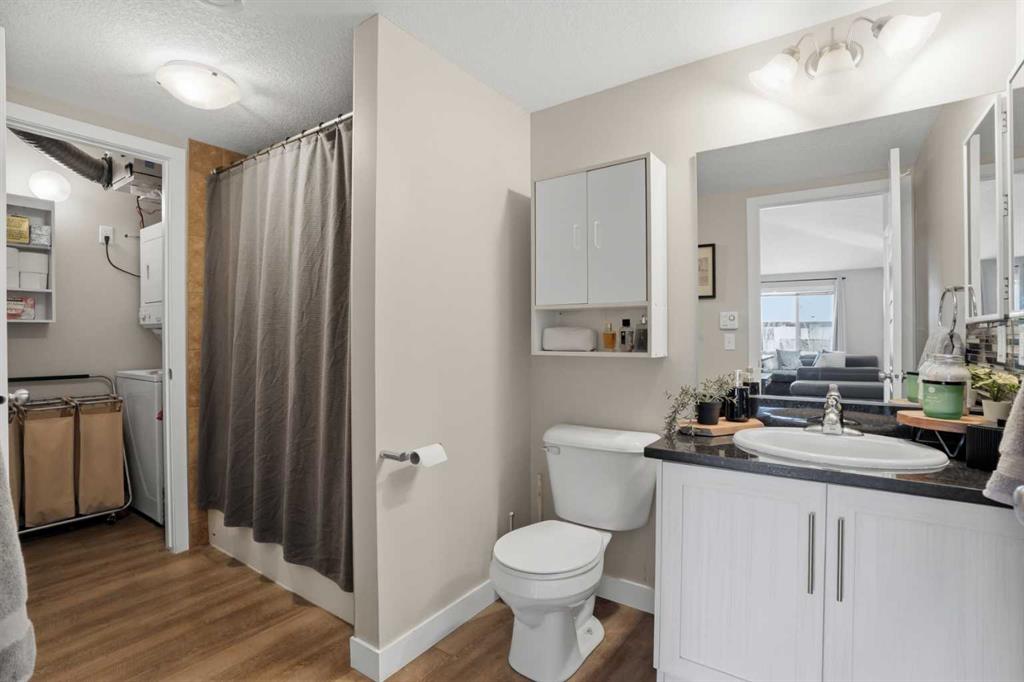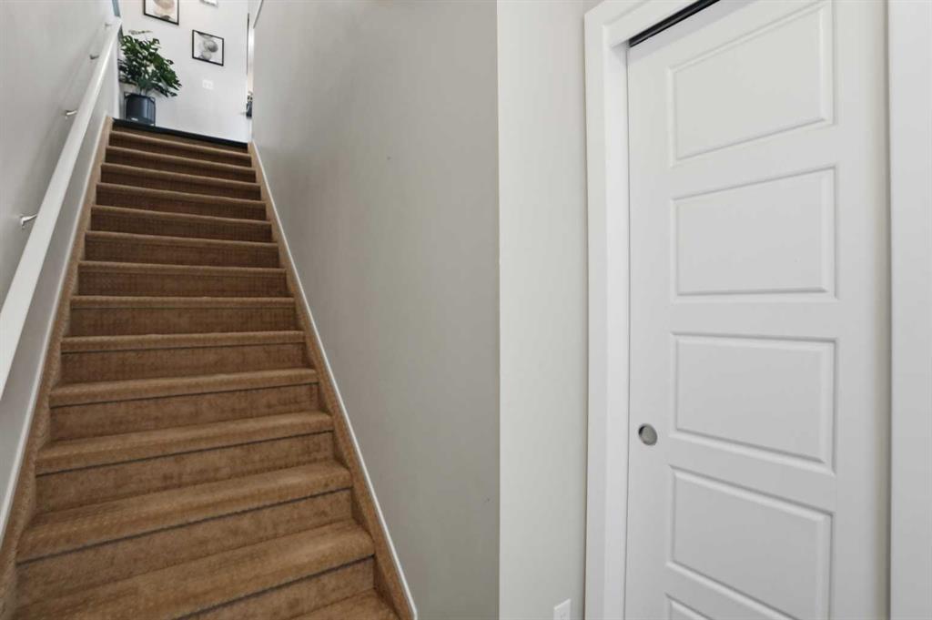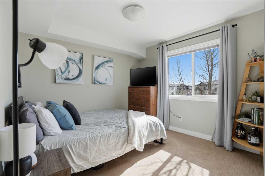 Welcome to this beautifully designed 2-storey condo offering style, space, and functionality in a prime Airdrie location—right next to Chinook Winds Regional Park! Enjoy easy access to scenic walking paths, green space, and outdoor activities all summer long. The main level foyer provides a private entrance and leads upstairs to a bright, open-concept living area featuring soaring vaulted ceilings and large windows that fill the home with natural light. The spacious kitchen is ideal for everyday living and entertaining, complete with granite countertops, black appliances, ample cabinetry, a closet pantry for extra storage, and a breakfast bar with barstool seating. The kitchen flows seamlessly into the dining and living areas, creating an inviting atmosphere. From the living room, step out onto your private balcony—perfect for BBQs and relaxing evenings. This well-appointed unit features 2 comfortable bedrooms with plush carpet and generous closet space, along with a full 4-piece bathroom. You’ll also appreciate the convenience of in-suite laundry and additional in-unit storage—perfect for seasonal items. To top it off, this home includes an assigned parking stall for added ease and convenience. Hurry and book a showing at this gorgeous home today!