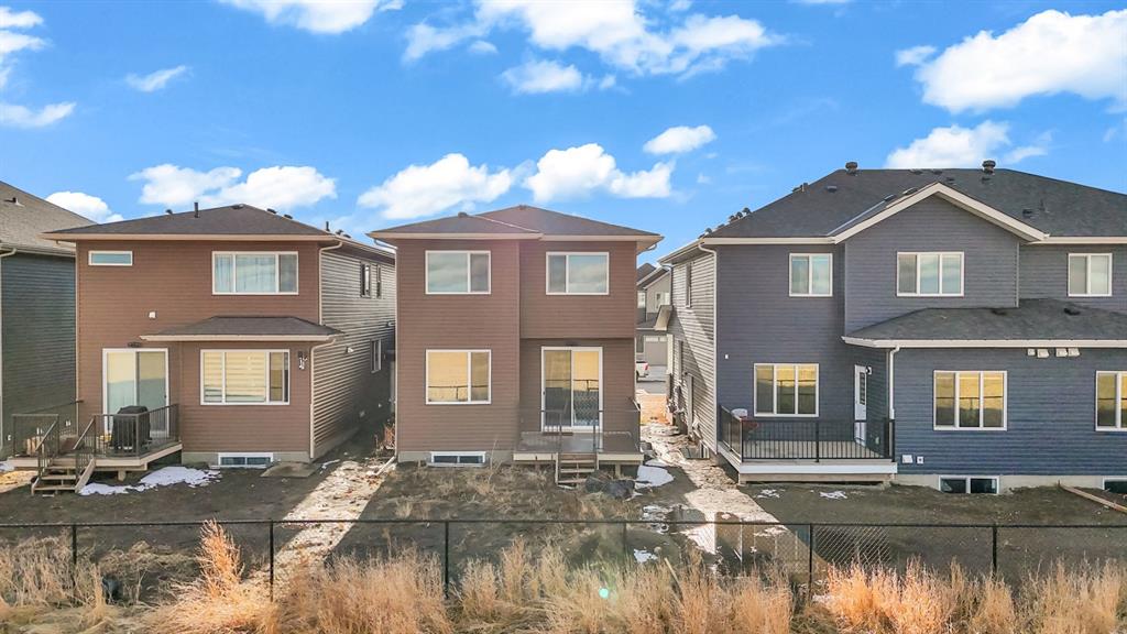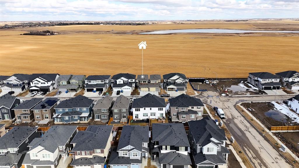 RARE FIND — ONLY THE GARAGE IS ATTACHED! ENJOY THE PRIVACY OF A DETACHED HOME WITH THE VALUE OF A HALF-DUPLEX! Welcome to this stunning, fully upgraded home in the highly sought-after community of Kinniburgh South! This front-attached garage property offers a separate side entrance and backs onto no homes — just beautiful greenery and open views, giving you privacy that’s hard to find. Step inside to an impressive open-concept main floor featuring modern tones and high-end finishes throughout, including luxury vinyl plank flooring (LVP), soaring ceilings, sleek black hardware, pot lights, and an upgraded stair railing. The extended chef’s kitchen is the true centerpiece, showcasing floor-to-ceiling cabinetry, a stylish hood fan, stainless steel appliances, and a large island — all overlooking a bright living room with a built-in electric fireplace. Upstairs, enjoy the added space of a bonus room/loft, perfect for a second living area, office, or family lounge. You’ll also find 3 spacious bedrooms, including a luxurious primary retreat with a walk-in closet and a spa-inspired 5-piece ensuite. Custom MDF built-in shelving is featured in all closets, and the upper-level laundry room offers added convenience with extra storage. The undeveloped basement includes a separate side entrance and two windows, providing excellent potential for future development or a legal suite (subject to city approval). Additional highlights include central air conditioning (A/C) for year-round comfort and an unbeatable location close to East Lake School, Chestermere High School, shopping plazas, a car wash, and Lakeside Golf Club. This is the one that truly checks all the boxes — privacy, upgrades, and location. Book your private showing today!