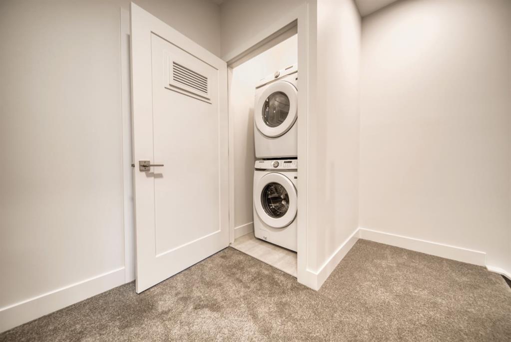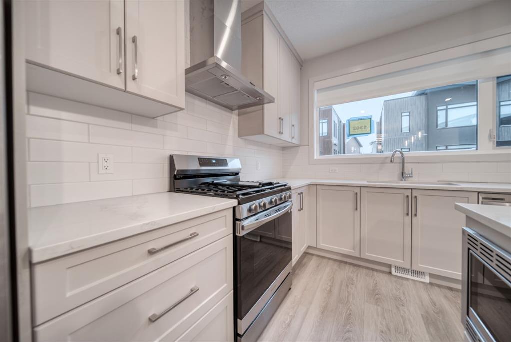 Ravines of Royal Oak by Janssen Homes offers unmatched quality & design, located on the most scenic & tranquil of sites in the mature NW community of Royal Oak. This dual primary (2BR), 2.5 bath 1,442sf 3-storey, townhouse with single attached garage boasts superior finishings. Entry level offers convenient flex space ideal for office, media-room, gym, or storage. Main floor open-concept-plan features end kitchen option with full-height cabinets, soft close doors/drawers & full extension glides, quartz counters, undermount sink, plus 4 S/S appliances opening onto dining area & living room with access to balcony. Upper level includes two roomy master retreats, both with well-appointed 4-pce ensuites & tile flooring. Ample closet space with site-built shelving & separate laundry space . Single attached garage adds the final touch. Ravines of Royal Oak goes far beyond typical townhome offerings; special attention has been paid to utilizing high quality, maintenance free, materials to ensure long-term, worry-free living. Acrylic stucco with underlying 'Rainscreen' protection, stone, & Sagiwall vertical planks (ultra-premium European siding) ensure not only that the project will be one of the most beautiful in the city, but that it will stand the test of time with low maintenance costs. Other premium features include triple-pane, argon filled low-e, aluminum clad windows, premium grade cabinetry with quartz countertops throughout, 9' wall height on all levels, premium Torlys LV Plank flooring, 80 gal hot water tank, a fully insulated & drywalled attached garage that includes a hose bib & smart WiFi door opener, among other features. Condo fees include building insurance, exterior building maintenance & long-term reserve/replacement fund, road & driveway maint., landscaping maint., driveway & sidewalk snow removal, landscaping irrigation, street & pathway lighting, garbage/recycling/organics service. Bordered by ponds, natural ravine park, walking paths & only minutes to LRT station, K-9 schools, YMCA & 4 major shopping centres. A solid investment - visit today! **Photos from a similar unit**