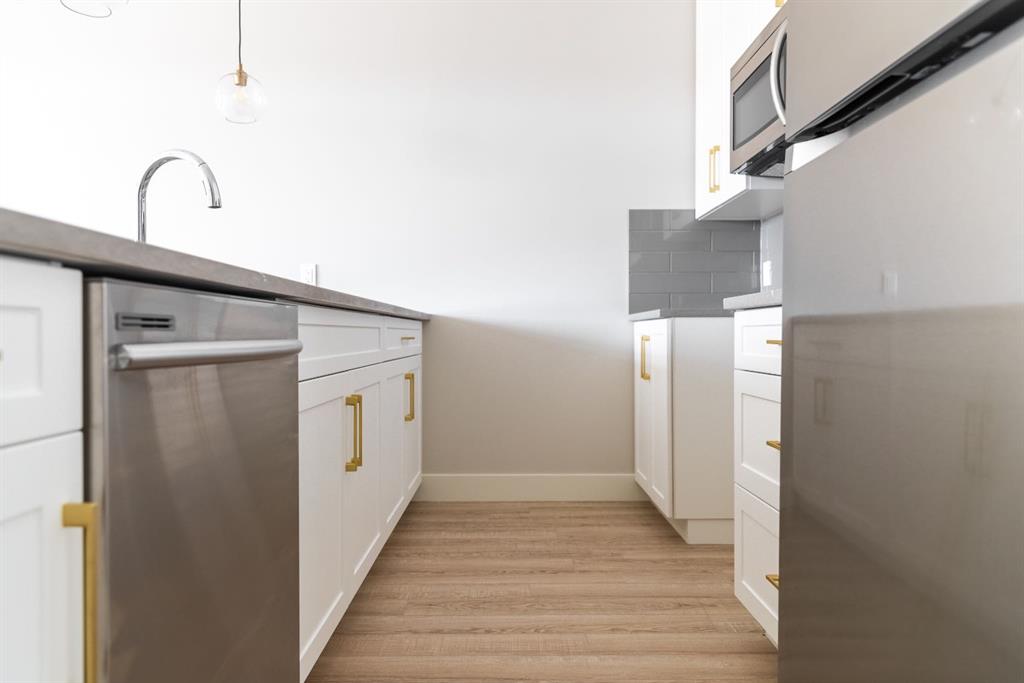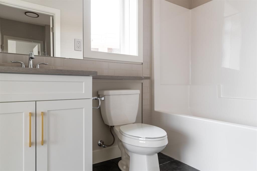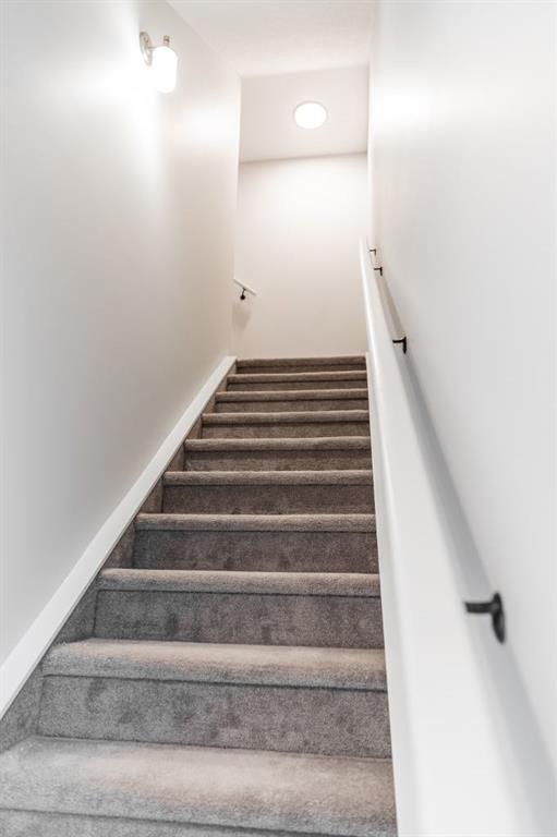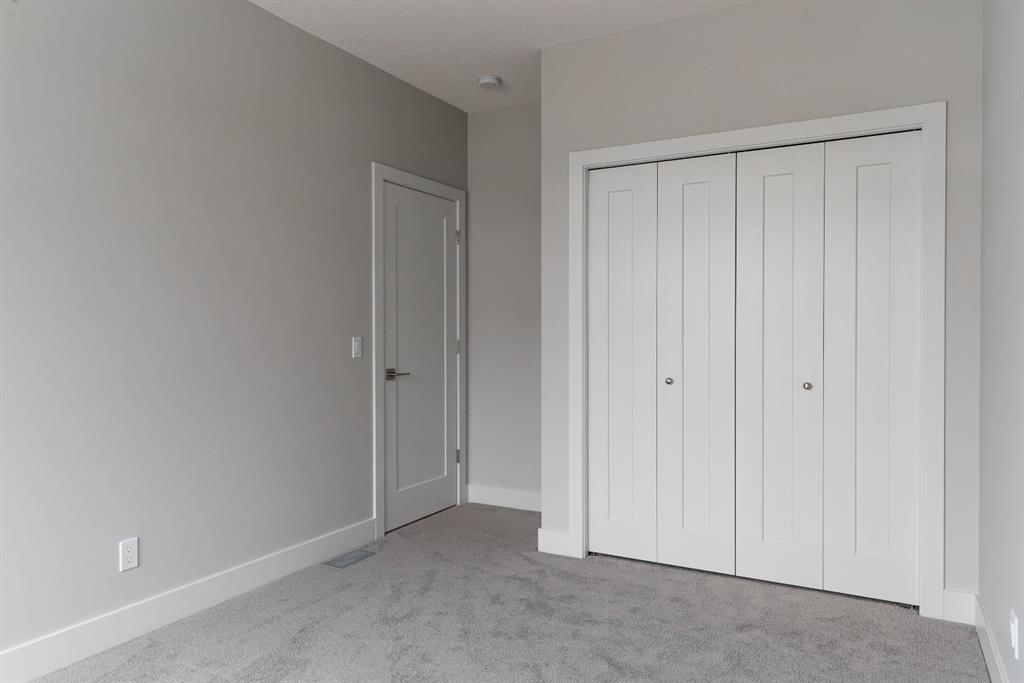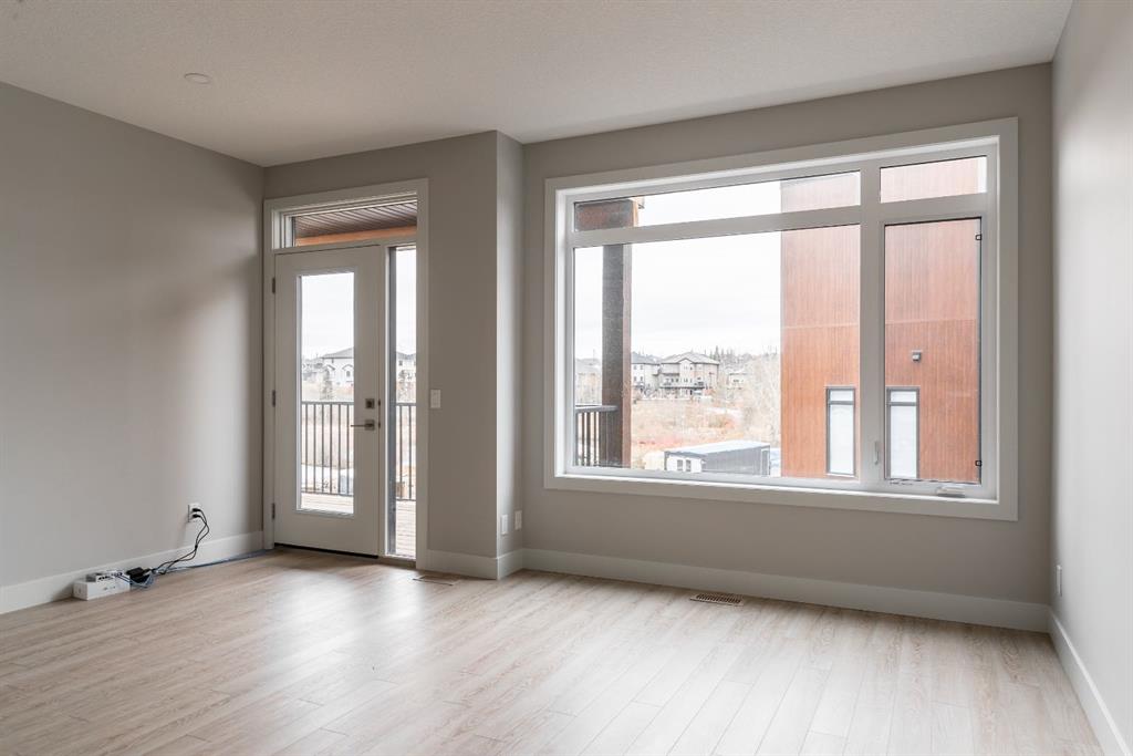 Ravines of Royal Oak by Janssen Homes offers unmatched quality & design, located on the most scenic & tranquil of sites in the mature NW community of Royal Oak. This 2BR, 1-full bath 1,233sf (1,233RMS) 24’-wide stacked townhouse with single attached garage boasts superior finishings. Open-concept-plan features a fresh, modern kitchen with full-height cabinets, soft close doors/drawers & full extension glides, quartz counters, undermount sink, plus 4 S/S appliances & convenient peninsula island opening onto both dining area with access to rear balcony & spacious living room. With over 900sf on the second living level there is ample space for a roomy master retreat, 4-pce bath with tile floor & quartz vanity, an additional bedroom which can be used as an office, & ultra-convenient laundry area. Convenient flex room on the main level along with a single attached garage with room to park an extra car on front driveway completes the package. Ravines of Royal Oak goes far beyond typical townhome offerings; special attention has been paid to utilizing high quality, maintenance free, materials to ensure long-term, worry-free living. Acrylic stucco with underlying 'Rainscreen' protection, stone, & Sagiwall vertical planks (ultra-premium European siding) ensure not only that the project will be one of the most beautiful in the city, but that it will stand the test of time with low maintenance costs. Other premium features include triple-pane, argon filled low-e, aluminum clad windows, premium grade cabinetry with quartz countertops throughout, 9' wall height on all levels, premium Torlys LV Plank flooring, 80-gal hot water tank, a fully insulated & drywalled attached garage that includes a hose bib & smart WiFi door opener, among other features. Condo fees include building insurance, exterior building maintenance & long-term reserve/replacement fund, road & driveway maint., landscaping maint., driveway & sidewalk snow removal, landscaping irrigation, street & pathway lighting, garbage/recycling/organics service. Bordered by ponds, natural ravine park, walking paths & only minutes to LRT station, K-9 schools, YMCA & 4 major shopping centres. Note - photos from a similar model in the complex.