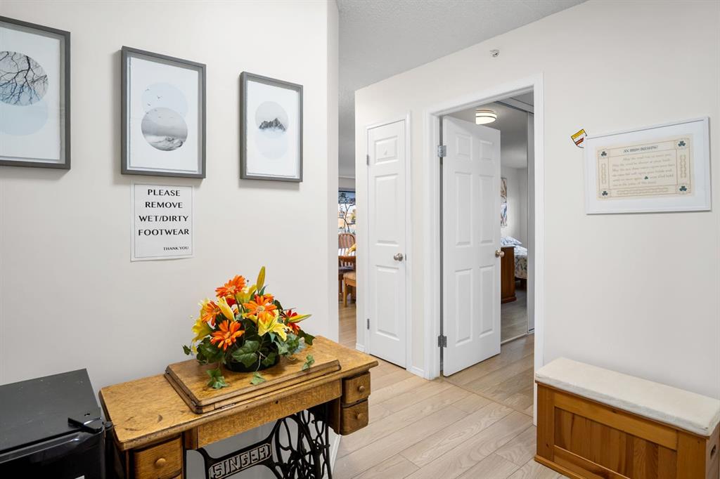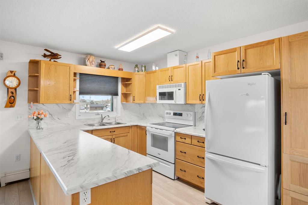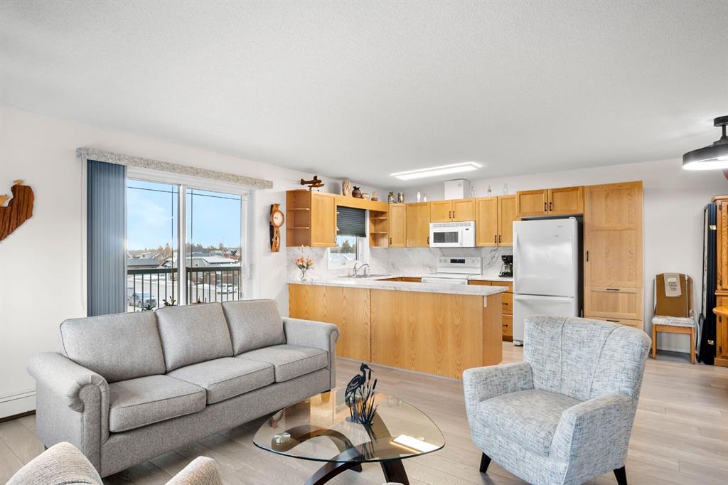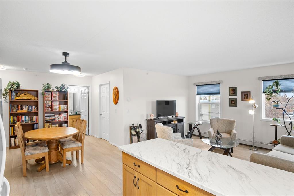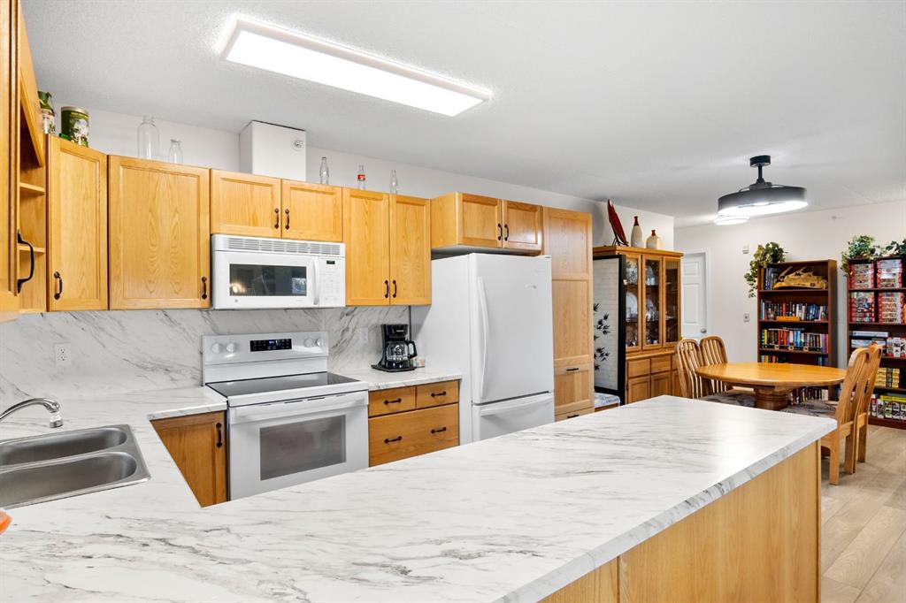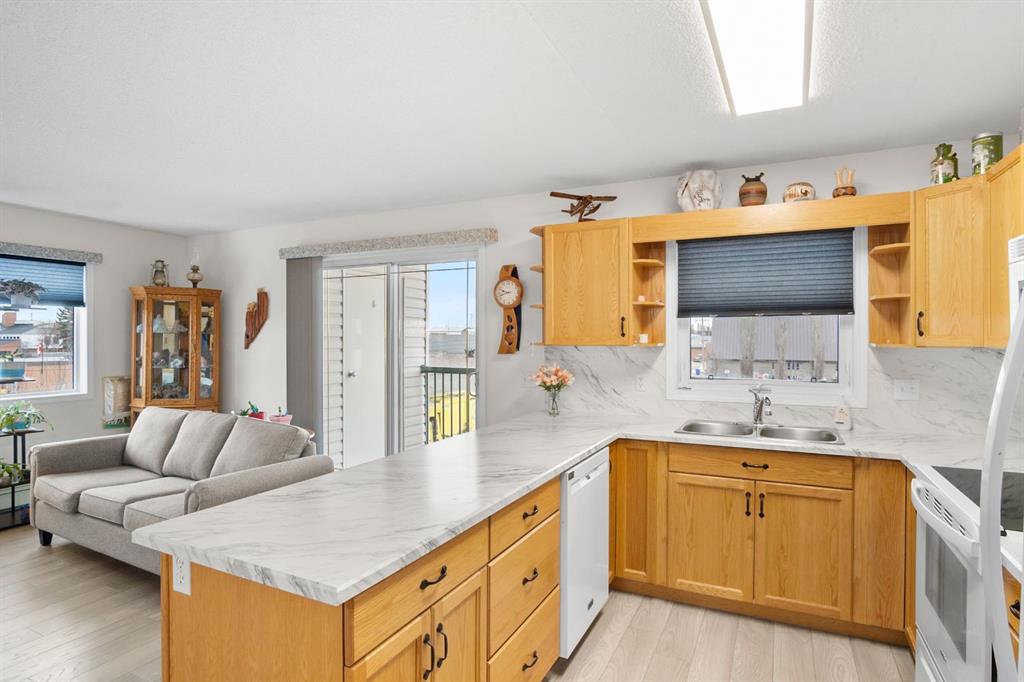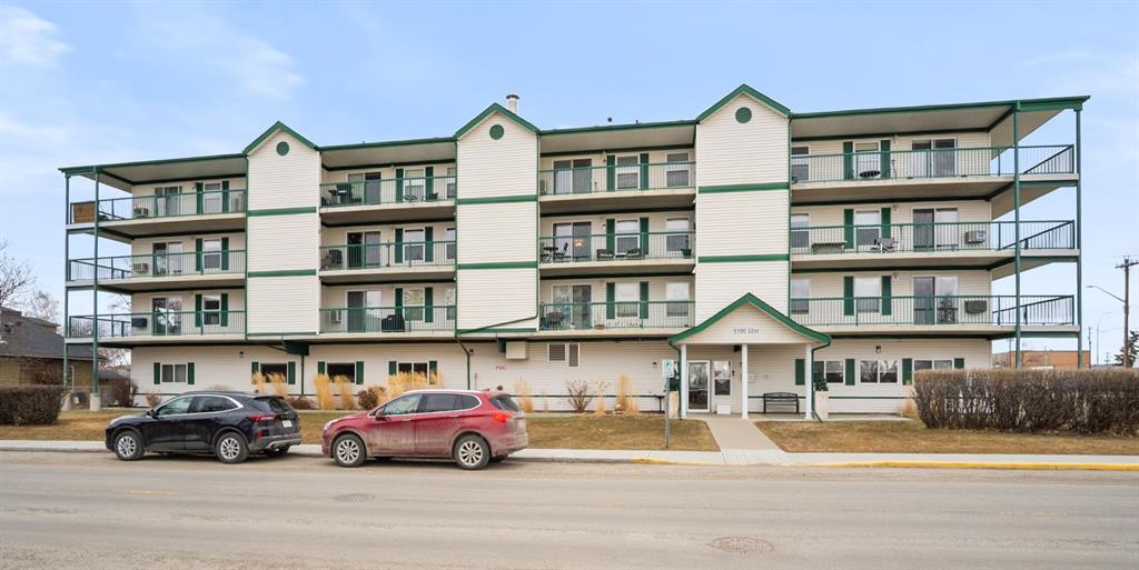 Come home to this 55+, bright, condo home located at Park Terrace in Olds. This corner unit, with a generous, open concept, 2 bdrm, 2 bath layout features numerous recent upgrades. Upgrades include some fresh paint, new lighting, new washer/dryer, dishwasher and stove, as well as a great addition of an in-kitchen pantry cupboard. Enjoy your morning coffee watching the sun rise in the East. You will appreciate the tasteful decor, the well designed kitchen featuring a sun filled window over the sink. You will also be thankful for the building design which features concrete slabs between building floors allowing for additional safety measures as well as a quieter home. This building is conveniently located across the street from the Olds Sportsplex, an easy walk to downtown restaurants and shops, and Centennial Park. Do not delay - this condo will not last!