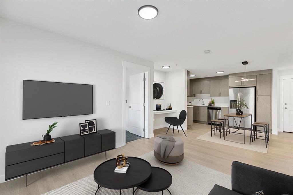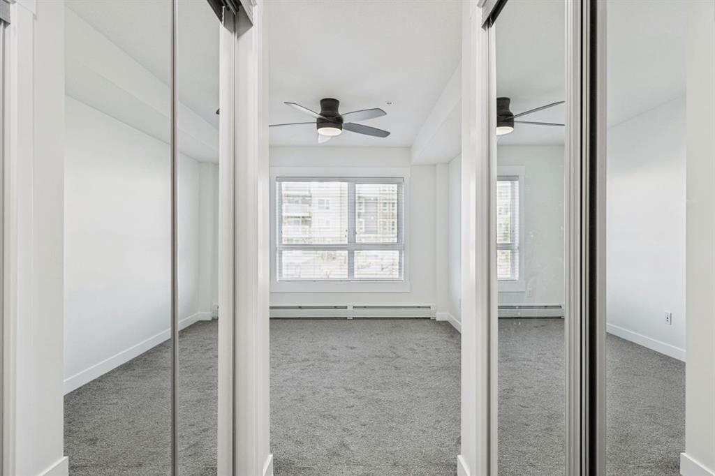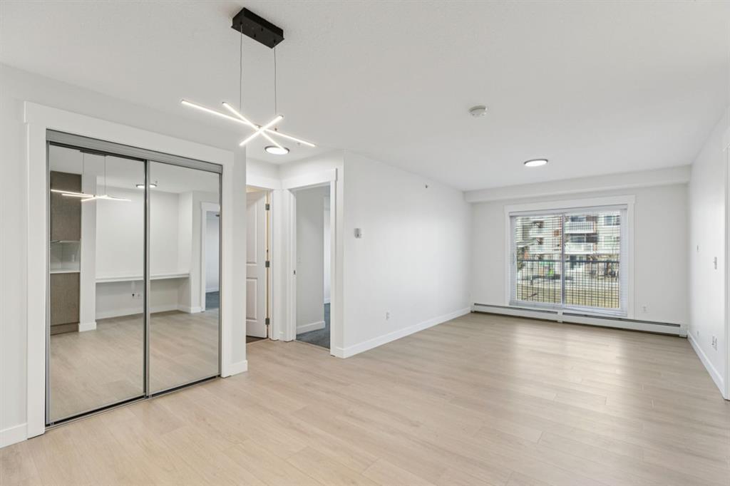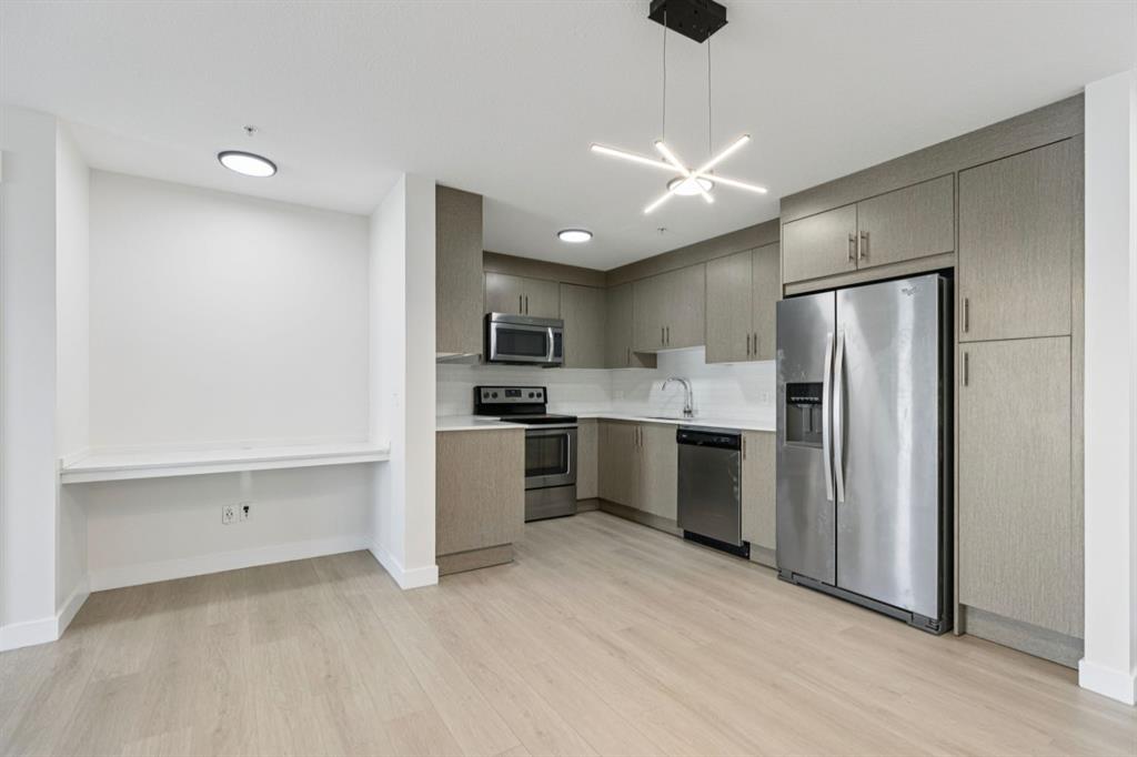 Welcome to this beautifully updated second-floor condo, where comfort meets style. This 819.10 sq ft - 2-bedroom, 2-bath unit boasts green space, park views and includes heated, secure underground parking along with additional storage. As you enter, you'll appreciate the fresh atmosphere created by BRAND new flooring and NEW White modern paint throughout. The generous balcony overlooks a green space and the park, complete with a BBQ gas line—perfect for summer gatherings. The kitchen features durable quartz countertops and stainless steel appliances, with ample storage and counter space for culinary creations. The open floor plan seamlessly connects the kitchen and living room, offering plenty of space for a dining table and ideal for entertaining. A built-in desk provides convenience for work-from-home needs or a cozy reading nook. The primary bedroom serves as a retreat, lots of natural light fills the room from the large window framing park views, while his/ her closets and 4-piece ensuite enhance privacy and comfort. The versatile second bedroom also enjoys a park view, making it perfect for children, guests or a home family room with its own large closet for added storage. Notably, this unit's location and view ensures it isn't sandwiched against another building, providing a more open and airy feel compared to many in the complex. The laundry room features a stacked front-load washer and dryer with room for extra storage making laundry day a breeze. Situated in a secure building, this condo is just minutes from shopping, schools, parks, and walking paths, with easy access to the airport and major traffic routes. Don’t miss this opportunity to make this condo your new home; schedule your showing today and experience the ease of lifestyle you’ve been hoping for!