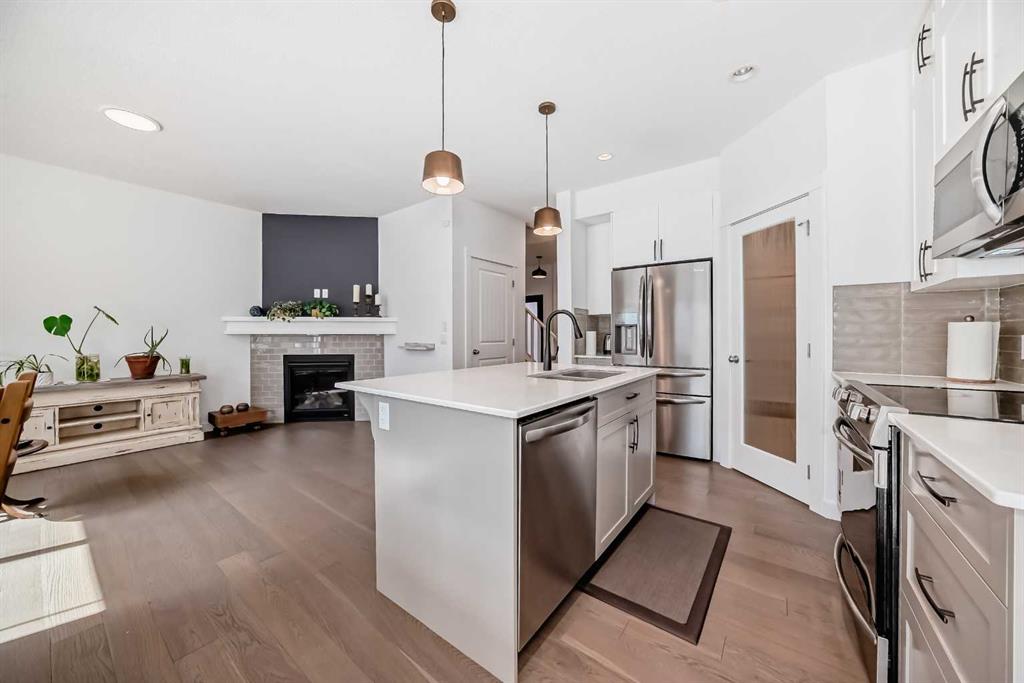 This Beautiful home is located on a child friendly street. This home features a bright open layout and you are greeted into home by Vinyl plank flooring throughout main floor. As you enter home you will notice the beautiful kitchen with quartz counters, white cabinets, island kitchen, pantry and Stainless Steel appliances. There is a spacious kitchen nook for your dining area with big picture windows overlooking backyard. The kitchen opens to the family room and the feature gas fireplace. There is a door that leads to the private south deck and fenced backyard for you to enjoy your summer evenings. There is 3 large bedrooms upstairs and the master bedroom comes with a walkin closet and ensuite. There is also a Bonus room and laundry room upstairs. NEW ROOF AND GARAGE DOOR IN 2025. This home is close to Costco, area shopping malls, schools, transit and Stoney Trail. Playground is around the corner. What a great place to call home. 357 Nolanhurst Cr NW