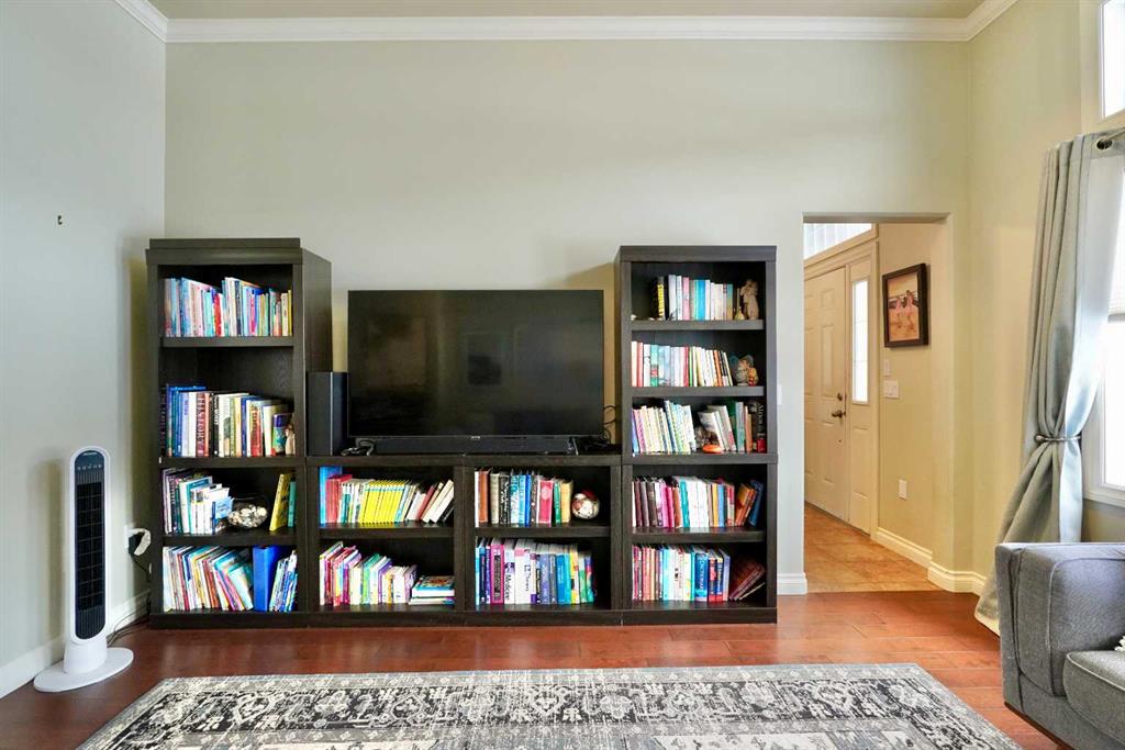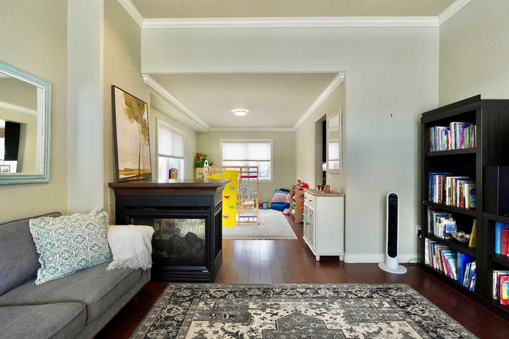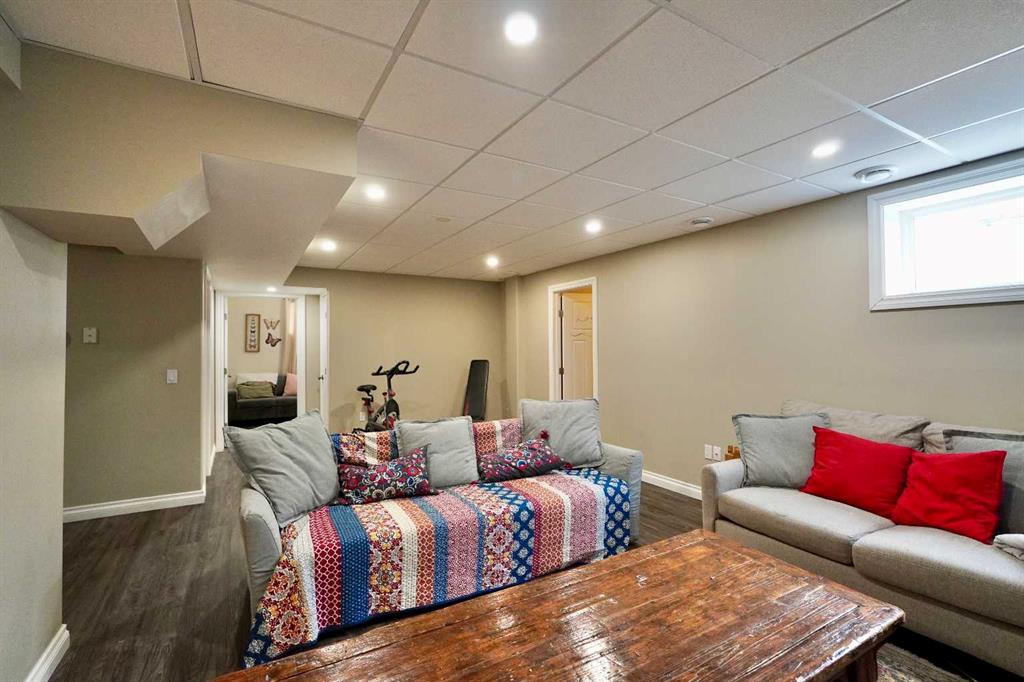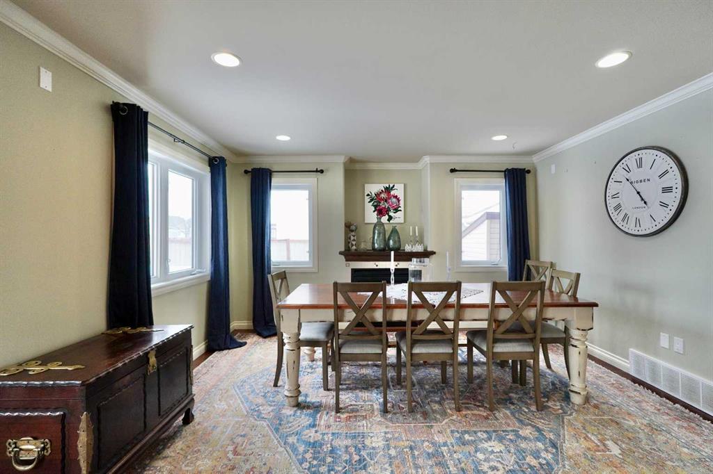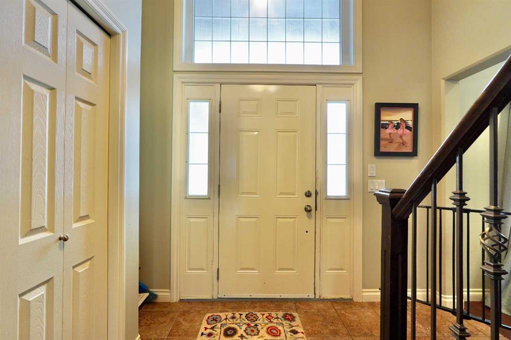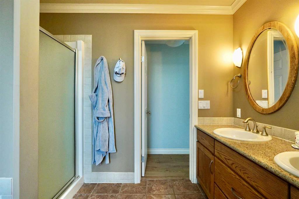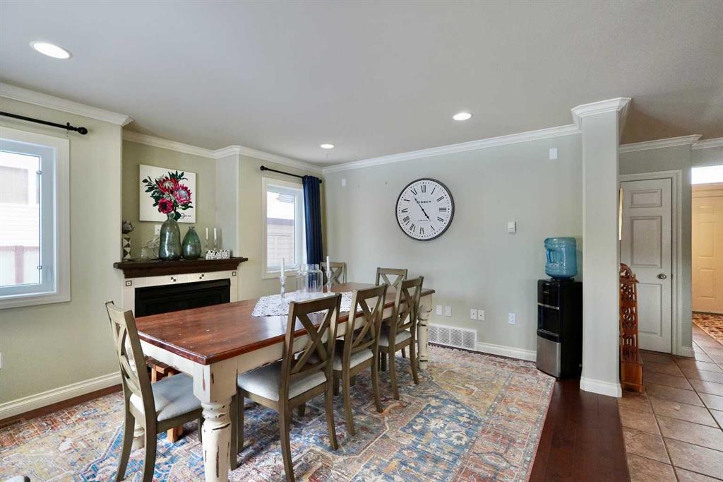 Welcome to this stunning, custom-built 1.5 story home in the highly sought-after Saddleback Ridge community—a true standout with exceptional craftsmanship, thoughtful design, and space for the whole family. Offering 5 bedrooms and 3.5 bathrooms, this property is an absolute must see. Step inside to an inviting open-concept layout centered around a gorgeous kitchen featuring rich wood cabinetry, quartz countertops, stainless steel appliances, a pantry, and an abundance of storage. The kitchen flows seamlessly into the cozy family room, complete with a gas fireplace, and an adjoining dining nook with garden doors leading to the back deck and brick patio—perfect for morning coffee or summer entertaining. On the opposite side of the kitchen, you’ll find an elegant formal living and dining area enhanced by a striking three-sided gas fireplace, creating a warm and welcoming atmosphere for gatherings. The main level also includes a convenient half bath and a well appointed laundry room with direct access to the heated double car garage. Upstairs, discover three generously sized bedrooms, including a spacious primary suite designed for relaxation. The primary retreat features a walk-in closet and a luxurious 5-piece ensuite with a large jetted tub. The additional full bathroom on this level also offers a deep soaker tub for added comfort. The finished full basement—with in-floor heating—adds even more living space. Here you’ll enjoy a large family room, two oversized bedrooms, a 3-piece bathroom, and a dedicated storage room. Outside, the beautifully landscaped and fully fenced yard is a true extension of the home. With a brick patio, retaining wall, underground sprinklers in the front and back, and a storage shed, the outdoor space is both functional and serene. Central air conditioning ensures comfort on warm summer days. This exceptional property offers incredible space, comfort, and features that cater to every member of the family. Don’t miss your chance to view this remarkable home—book your private showing today and experience all it has to offer.