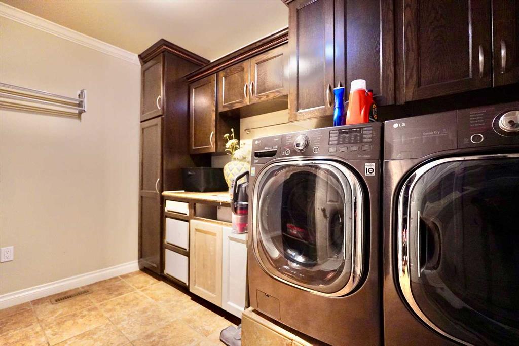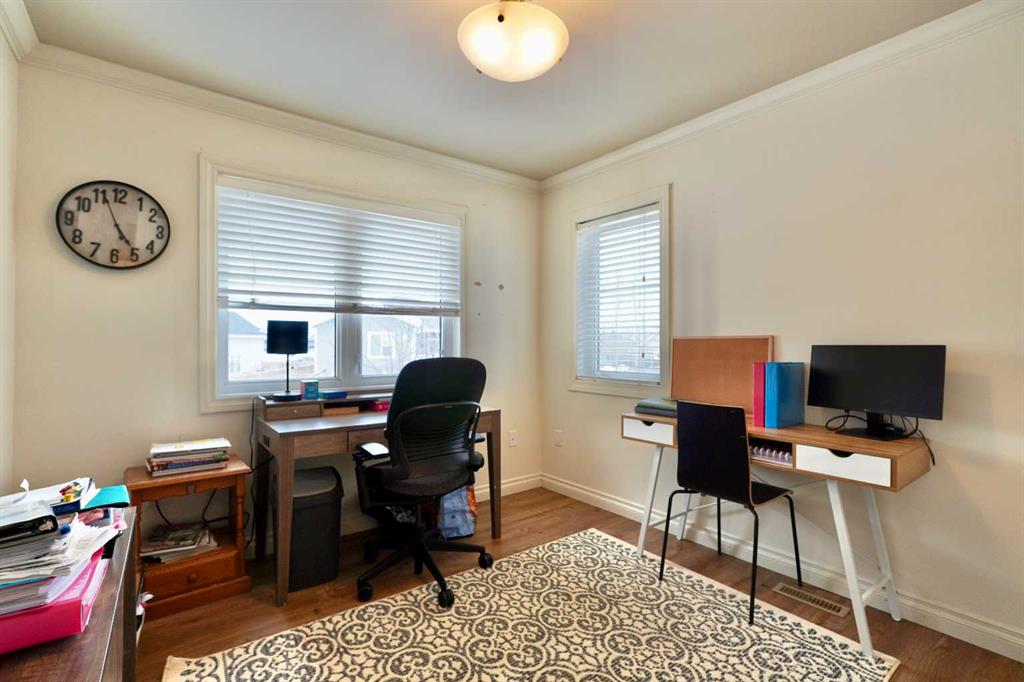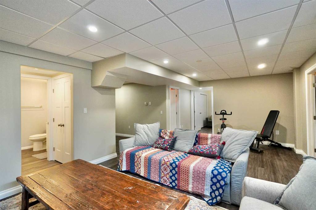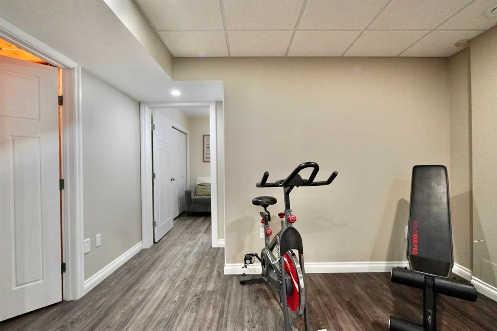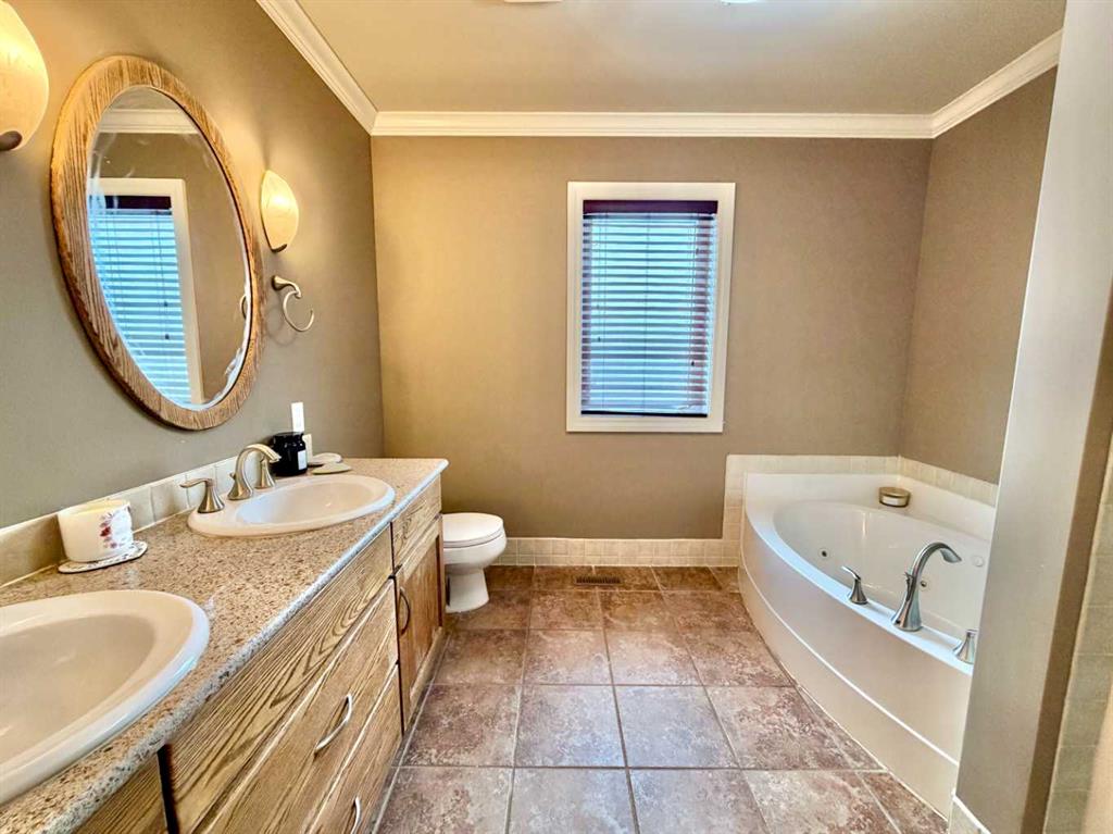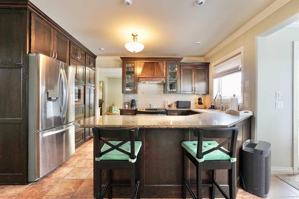 Welcome to this stunning, custom-built 1.5 story home in the highly sought-after Saddleback Ridge community—a true standout with exceptional craftsmanship, thoughtful design, and space for the whole family. Offering 5 bedrooms and 3.5 bathrooms, this property is an absolute must see. Step inside to an inviting open-concept layout centered around a gorgeous kitchen featuring rich wood cabinetry, quartz countertops, stainless steel appliances, a pantry, and an abundance of storage. The kitchen flows seamlessly into the cozy family room, complete with a gas fireplace, and an adjoining dining nook with garden doors leading to the back deck and brick patio—perfect for morning coffee or summer entertaining. On the opposite side of the kitchen, you’ll find an elegant formal living and dining area enhanced by a striking three-sided gas fireplace, creating a warm and welcoming atmosphere for gatherings. The main level also includes a convenient half bath and a well appointed laundry room with direct access to the heated double car garage. Upstairs, discover three generously sized bedrooms, including a spacious primary suite designed for relaxation. The primary retreat features a walk-in closet and a luxurious 5-piece ensuite with a large jetted tub. The additional full bathroom on this level also offers a deep soaker tub for added comfort. The finished full basement—with in-floor heating—adds even more living space. Here you’ll enjoy a large family room, two oversized bedrooms, a 3-piece bathroom, and a dedicated storage room. Outside, the beautifully landscaped and fully fenced yard is a true extension of the home. With a brick patio, retaining wall, underground sprinklers in the front and back, and a storage shed, the outdoor space is both functional and serene. Central air conditioning ensures comfort on warm summer days. This exceptional property offers incredible space, comfort, and features that cater to every member of the family. Don’t miss your chance to view this remarkable home—book your private showing today and experience all it has to offer.