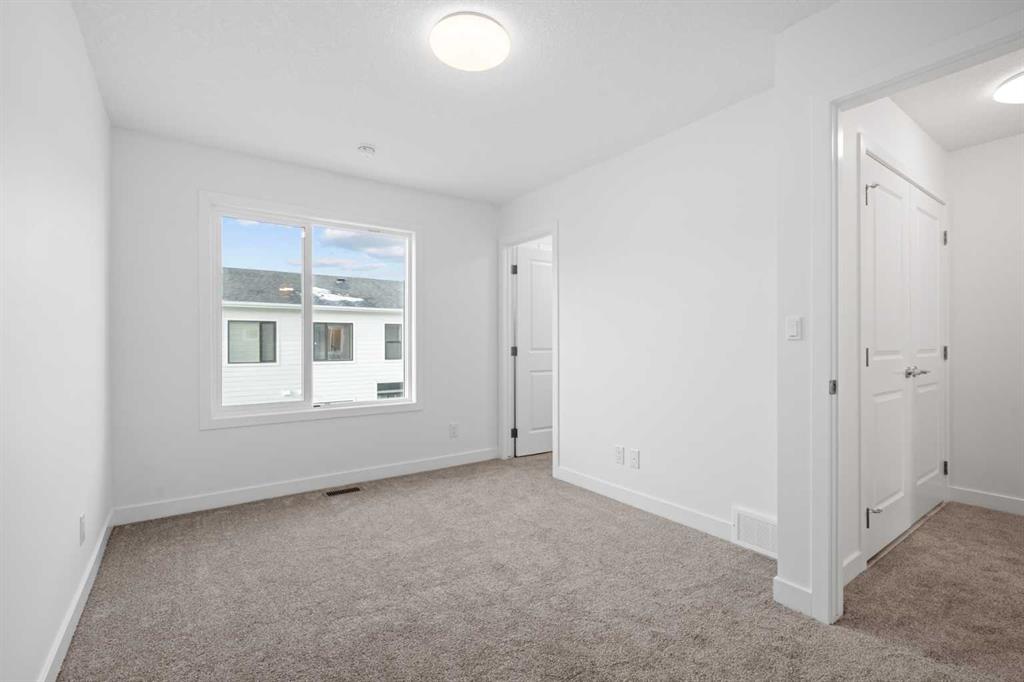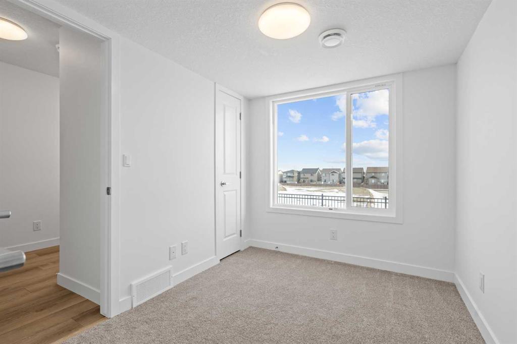 NEW BUILD TOWNHOMES | LOW CONDO FEES | 3 BED (2 UP, 1 DOWN) / 2.5 BATH / 1308 SQ FT | SINGLE ATTACHED GARAGE + DRIVEWAY | IMMEDIATE POSSESSION – Welcome to the Aspen 2 townhome by Minto Communities, an award-winning Canadian builder, located in Wildflower, proudly voted Best New Community in Canada. This vibrant, master-planned community in Airdrie is designed with lifestyle and connection in mind, offering an exciting blend of home styles in a neighbourhood built to grow with you. This thoughtfully designed townhome offers a functional, modern layout ideal for today’s homeowner. The main floor features a well-balanced design with the living room and a convenient half bath at the front of the home. The kitchen sits at the centre, complete with stainless steel appliances, a kitchen island, and ample storage, seamlessly connecting to the dining area at the rear. Just off the dining space, enjoy access to a private balcony which is perfect for morning coffee or evening relaxation. Upstairs, you’ll find a rare and highly desirable dual primary bedroom layout. The front-facing primary bedroom includes a large walk-in closet and a private 3-piece ensuite, while the rear bedroom offers its own walk-in closet and 4-piece ensuite. Upper-floor laundry is conveniently tucked away on this level, enhancing everyday functionality. The ground floor welcomes you with a spacious entryway and features a third bedroom, ideal for guests, a home office, or flex space. Mechanical systems are neatly tucked away, and this level provides direct access to the single attached garage. A full driveway allows parking for two vehicles total, offering exceptional convenience for a townhome. Residents of Wildflower enjoy exclusive access to The Hillside Hub, a standout amenity centre featuring Airdrie’s first outdoor pool, a hot tub, open-air sports court, and a variety of shared indoor and outdoor spaces designed for gathering, recreation, or quiet retreat. With nearby parks, pathways, amenities, and easy access to major routes, Wildflower delivers a truly well-rounded lifestyle. Combining award-winning community planning, modern design, and immediate possession, this is an outstanding opportunity to own a stylish townhome in one of Canada’s most celebrated new communities. Don’t miss your chance to make Wildflower home! Book your visit today!