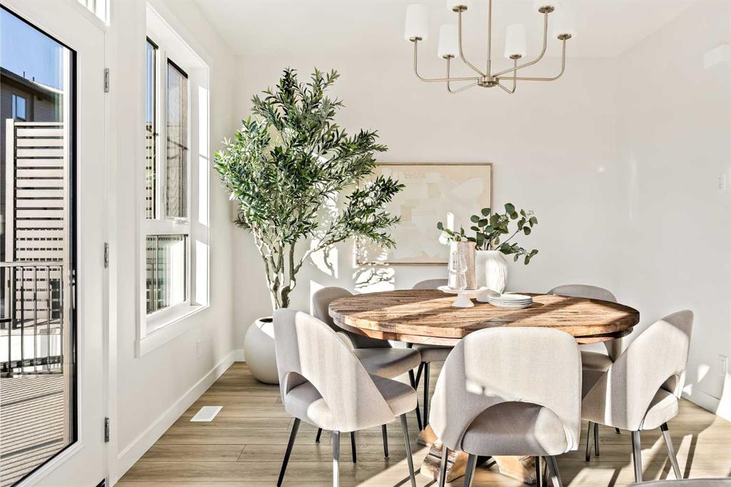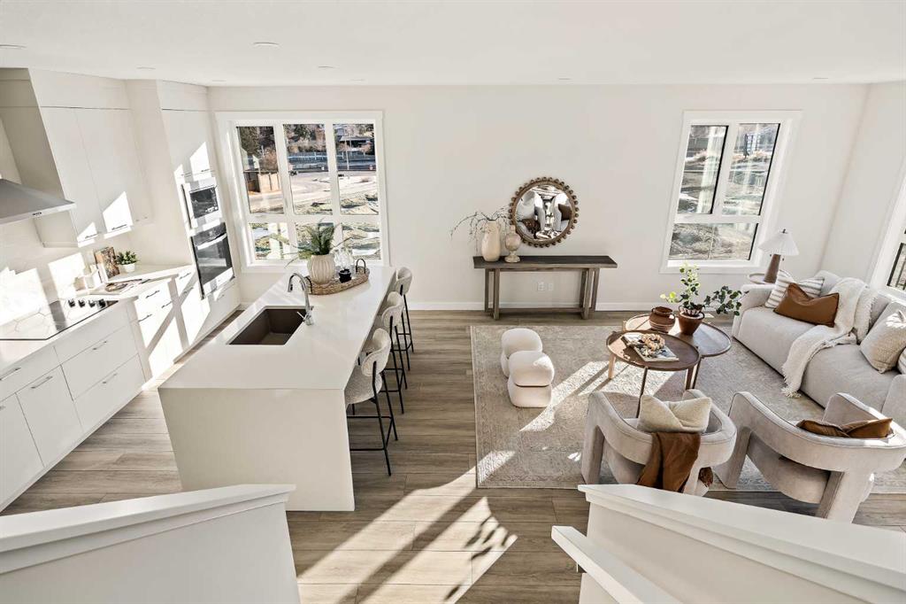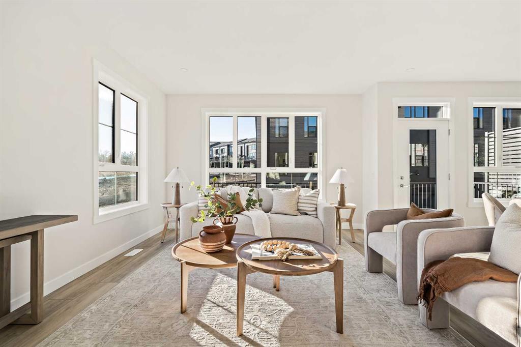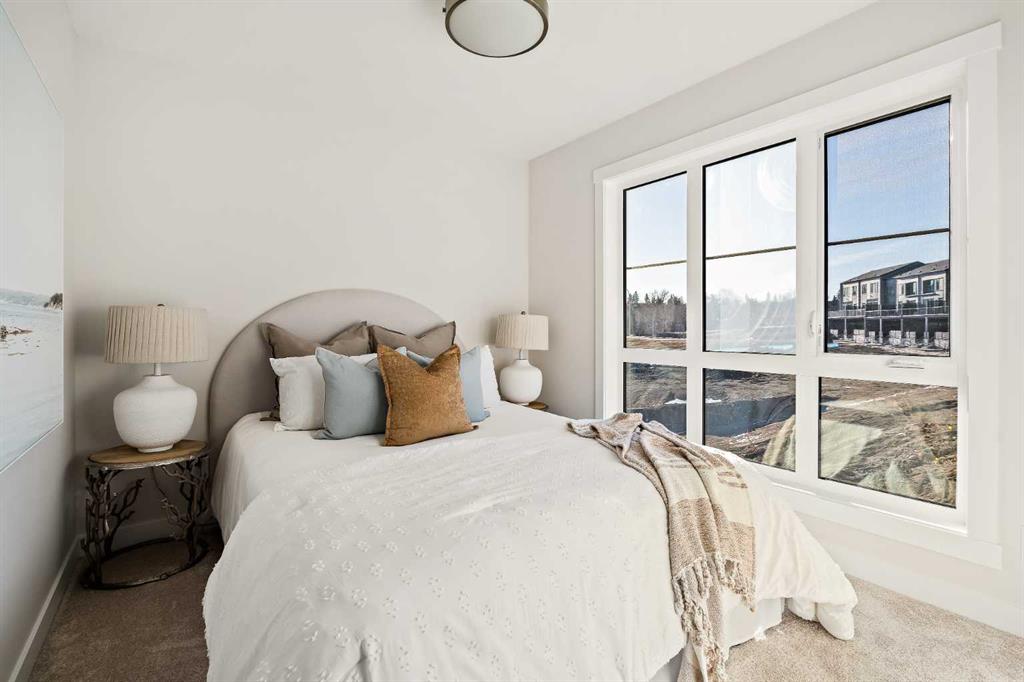 Welcome to the Torrey at Crown Park - an exceptional opportunity offering a brand-new townhouse featuring 3 bedrooms, 2.5 bathrooms, and a private double-attached garage. Offering over 1,500 ft² of thoughtfully designed living space, this end-unit townhome is one of the last remaining opportunities and is perfectly positioned within the development. Large, west-facing windows bring in natural light throughout the day, creating a bright and comfortable living environment. The bright and open main living area showcases a stunning kitchen with endless upgrades, including built-in appliances, quartz countertops, and timeless white cabinetry. Designed with entertaining in mind, the kitchen flows seamlessly into the expansive main living area, creating the perfect space for gatherings or everyday living. Large west-facing windows throughout the main level enhance the sense of space and light, creating a welcoming atmosphere year-round. The impressive great room offers ample space for virtually any furniture configuration and opens directly into the large dining area, allowing for a seamless transition between spaces. The main level is complete with a 2-piece powder room and direct access to the sprawling 26' balcony that spans the width of the home. The outdoor living space is equipped with a BBQ gas line and hose bib, adding everyday convenience and making it easy to enjoy outdoor living. The upper level has been thoughtfully designed, with the primary suite spanning the width of the home while the secondary bedrooms and main bathroom are positioned on the opposite end for added privacy. The ~12' x 12' primary bedroom easily accommodates a king bedroom suite and includes a walk-in closet and private 4-piece ensuite featuring dual sinks and a walk-in tiled shower. The upper level is completed by two additional bedrooms, a full bathroom, and convenient upper-floor laundry. The flexibility of three bedrooms makes this home ideal for families, guests, or a dedicated home office, offering excellent long-term versatility and value. The entry level provides access to the private double attached garage, which includes additional space for storage along with a large dedicated storage room, keeping everything organized and secure year-round. Located in Crown Park - one of Calgary’s last remaining inner-city developments - just minutes from downtown, this home offers exceptional convenience with major transportation routes, amenities, and green spaces all close by. Perfect for first-time buyers, investors, or those seeking a lock-and-leave lifestyle with maintenance-free living, this brand new home is backed by a comprehensive builder warranty and Alberta New Home Warranty, allowing you to purchase with confidence and peace of mind. **Please note: Photos are of a previous show unit and are not an exact representation of the property for sale.