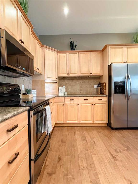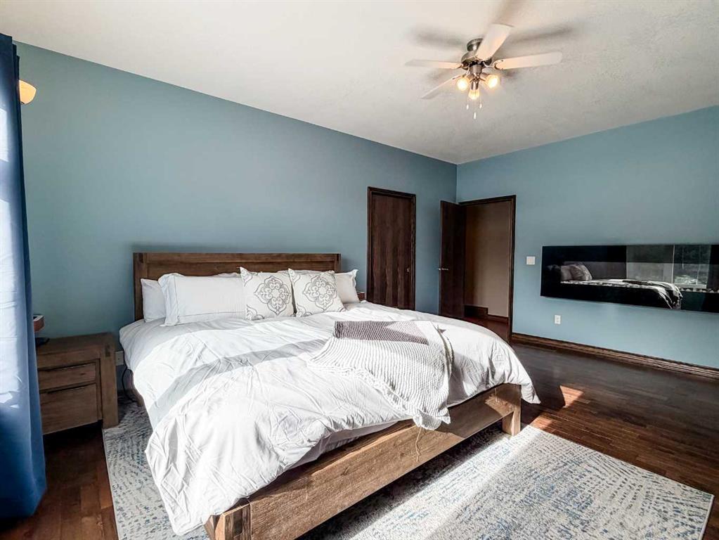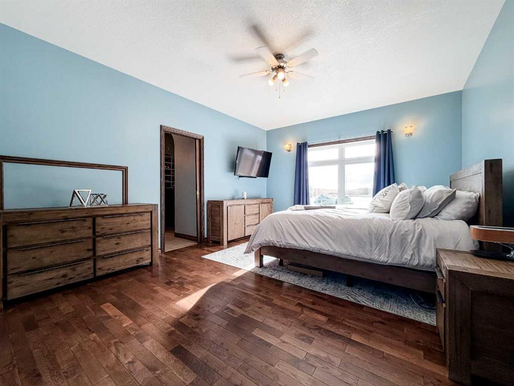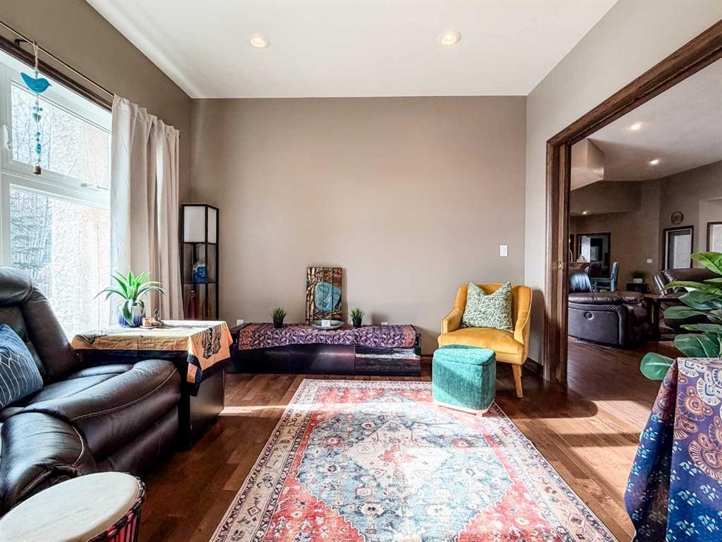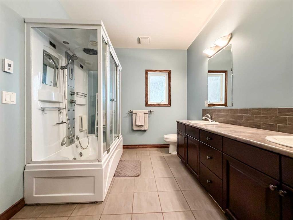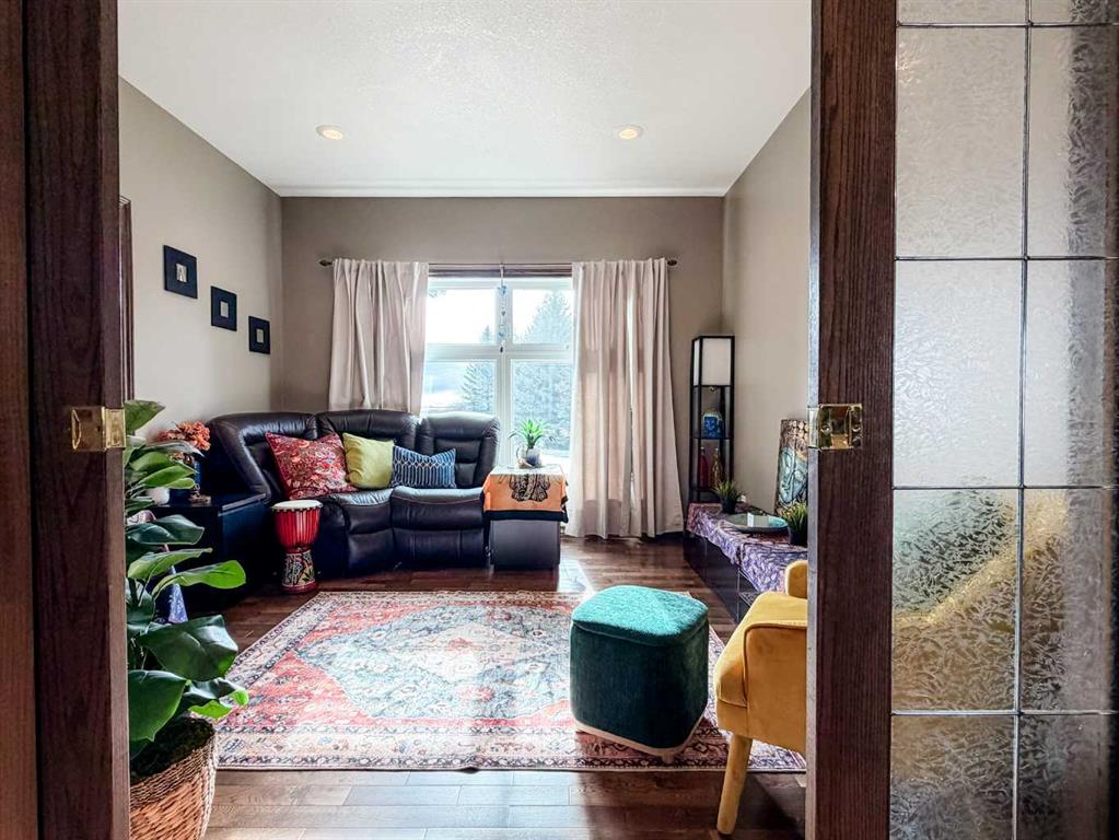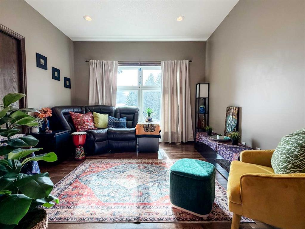 Embrace a life of luxury and convenience in this meticulously designed 3114 sq. ft. masterpiece. As you step through the threshold, you'll be captivated by the seamless flow of the open-concept living spaces, where natural light dances across gleaming hardwood floors. Featuring sleek stainless steel appliances, ample cabinetry, and a spacious island perfect for casual dining or entertaining. Unwind in the inviting living room, where large windows frame picturesque views of the surrounding landscape. The dining area provides an elegant setting for memorable family gatherings or intimate dinner parties. Retreat to the sumptuous primary bedroom, a true sanctuary, complete with an ensuite bathroom and walk in closet. Three additional bedrooms offer comfort and privacy for family or guests, while the den/home office home office provides the ideal space for remote work or pursuing your passions. Throughout the home, you'll find thoughtful touches like recessed lighting, ceiling fans, and custom window treatments that elevate the overall ambiance. The media room is set up with its own wet bar, perfect for hosting movie nights or entertaining. This single-story layout ensures easy accessibility and flow, making it perfect for those seeking a low-maintenance lifestyle without compromising on space or style. Located in the desirable Stettler County on 3.97 acres, this property offers the perfect balance of rural tranquility and modern convenience. The 34X25 attached garage gives ample room for indoor parking. If that wasn't enough, the cold storage shop 28X40 allows lots of room for toys and acreage equipment! Enjoy the summer nights with a private fire pit and seating area. Don't miss this opportunity to make your dream home a reality.