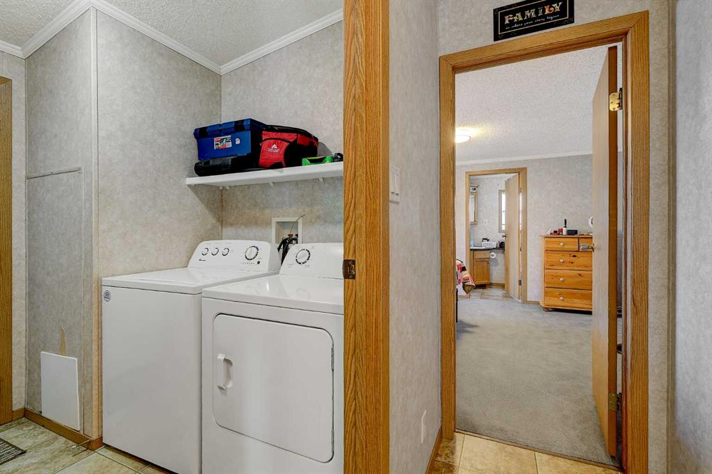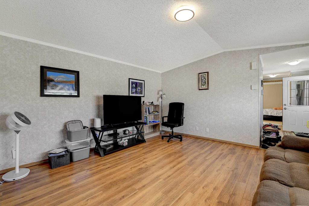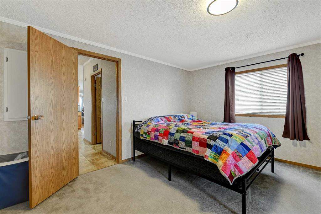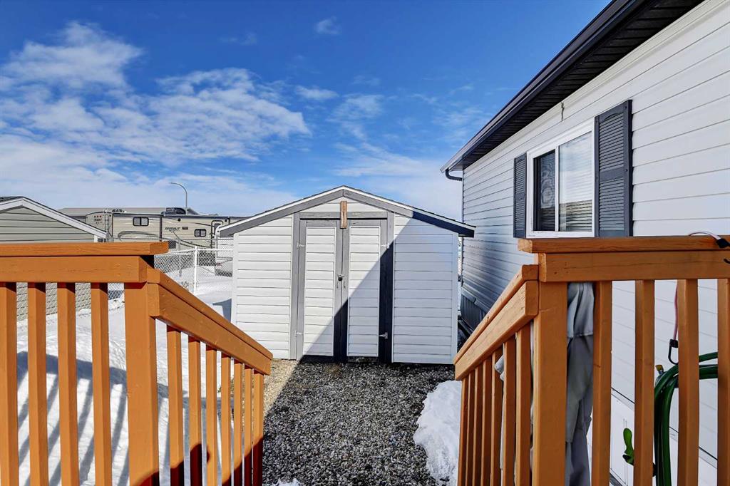 Showcasing this well-maintained home in Trumpeter Village, offering 3 bedrooms and 2 bathrooms in a bright, open-concept layout. The spacious kitchen features ample natural light, a corner pantry, and plenty of room for cooking and entertaining. The primary bedroom is privately situated and includes a walk-in closet and a 4-piece ensuite complete with a relaxing jacuzzi tub. On the opposite end, you’ll find two additional bedrooms and another full bathroom perfect for kids, guests, or a home office setup. A dedicated laundry room adds convenience, along with recent updates such as a newer hot water tank, select light fixtures, and a newer washer and dryer. Outside, enjoy the large deck, plus a storage shed for extra space. This charming home offers comfort, functionality, and great value in a family-friendly community. Book your showing today!!