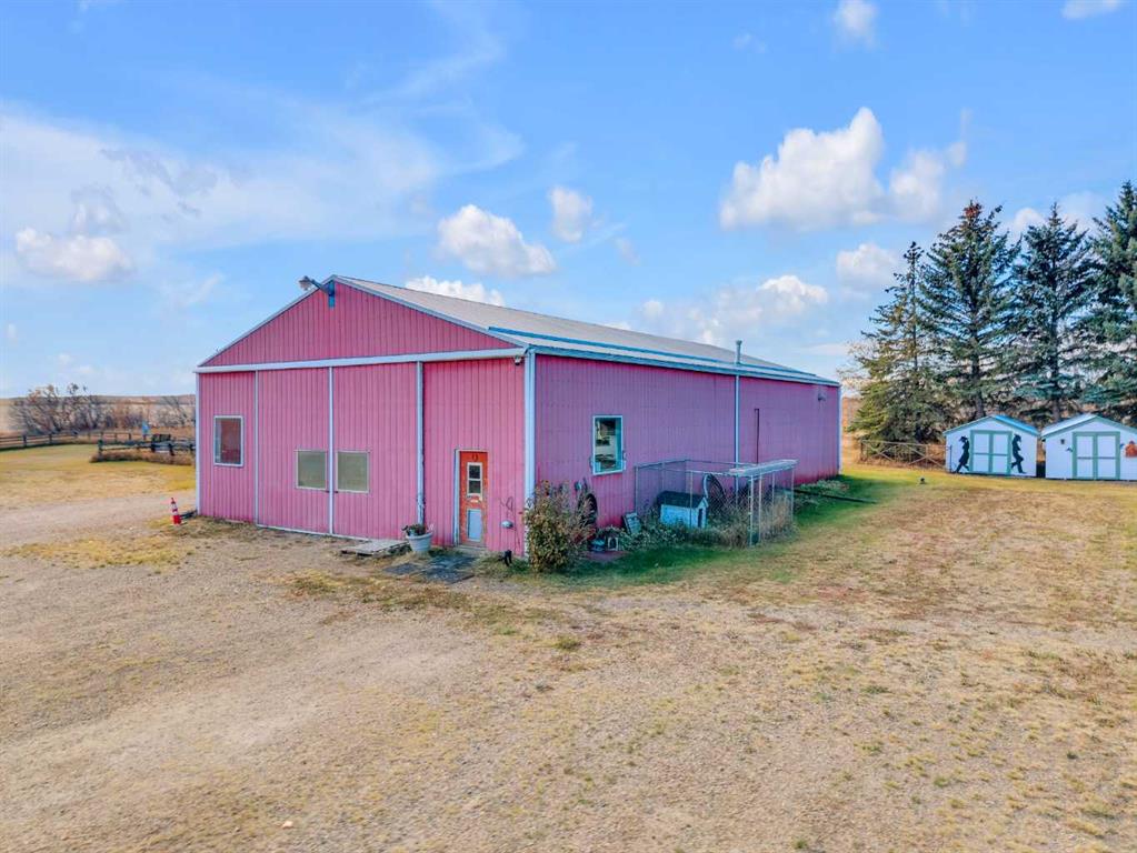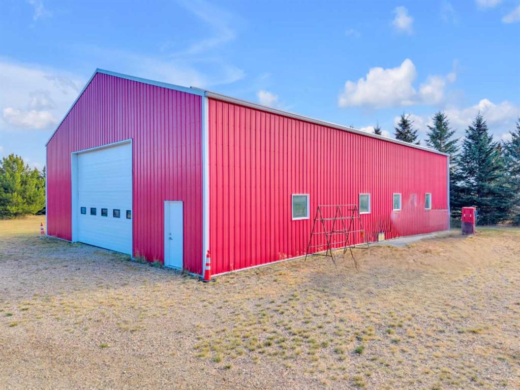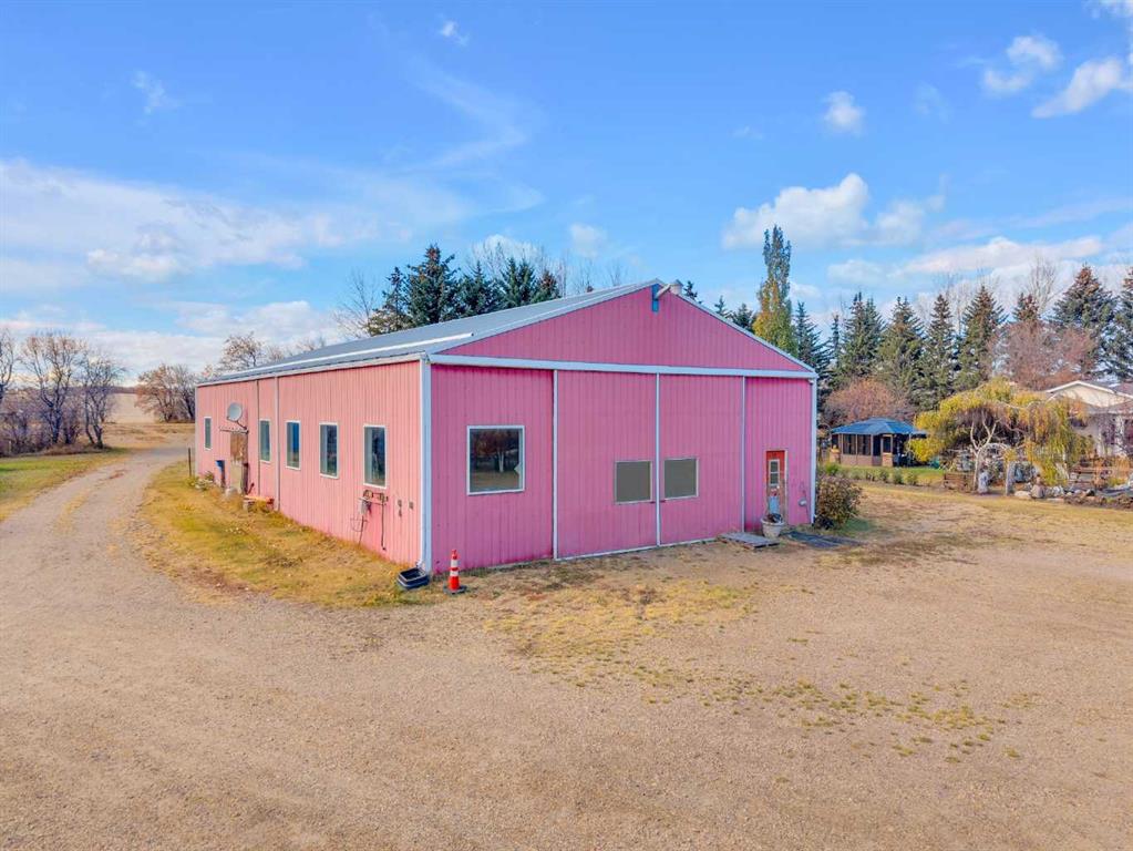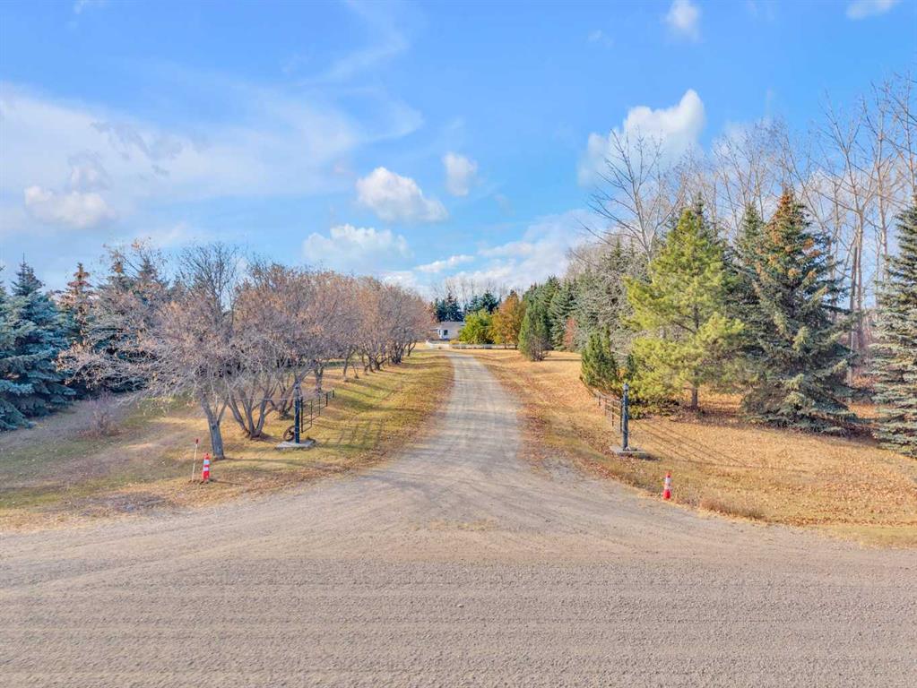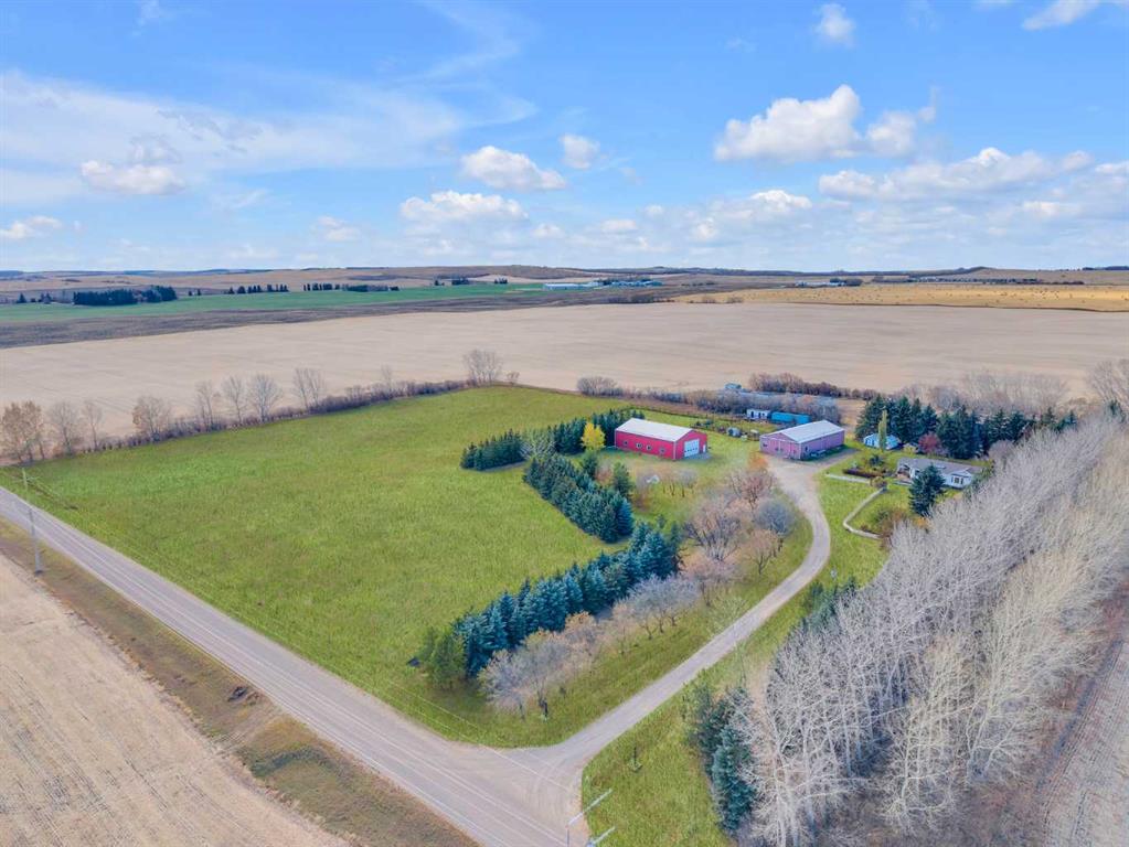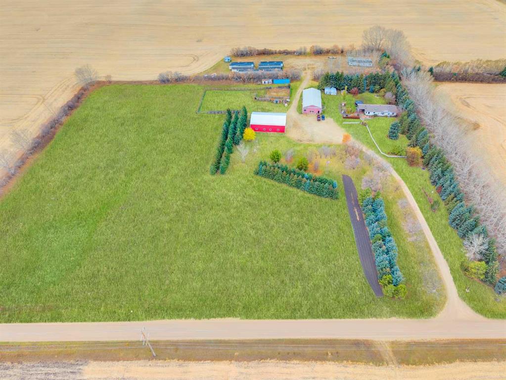 Exceptional opportunity to own 4.7 ± acres to start your county lifestyle. The parcel includes two shops, gated entrance and private setting. The home is a Triple M 2001 modular home in incredible condition on a heated 4-foot concrete foundation, offering nearly 1,885 sq ft, 3 bedrooms plus a den, 1 half bath, a 4-piece main bath, and a 3-piece ensuite. Bright bay windows, a skylight, and a wood-burning fireplace create warm, inviting living spaces, while outside features include a huge, welcoming deck, incredible landscaping, an ornamental fish pond, and a fully enclosed three-season gazebo. Infrastructure is outstanding with two shops. Shop #1 is a 40 × 80 × 14 ft lined and insulated shop with two 13.5 × 20 ft sliding doors, radiant heat, cement floor, floor drain, and fully insulated interior. Shop #2 is a 72 × 48.5 × 16 ft pole shed built in 2018 with a 14 × 20 ft overhead door, gravel floor, walk-in access, and eight windows providing natural light. The yard is reinforced for heavy oilfield traffic, offering durability and excellent access for large trucks and equipment, and additional buildings include three wooden sheds and an outhouse. Recent upgrades include the existing well being recased with new lining and a new pump in 2024, and a new septic tank and field installed in spring 2025. Located just ½ mile off pavement (Hwy 597), 1 mile from the Prentice plant, 3 miles from the NOVA Joffre plant, 13 miles from Lacombe, and 10 miles from Blackfalds.