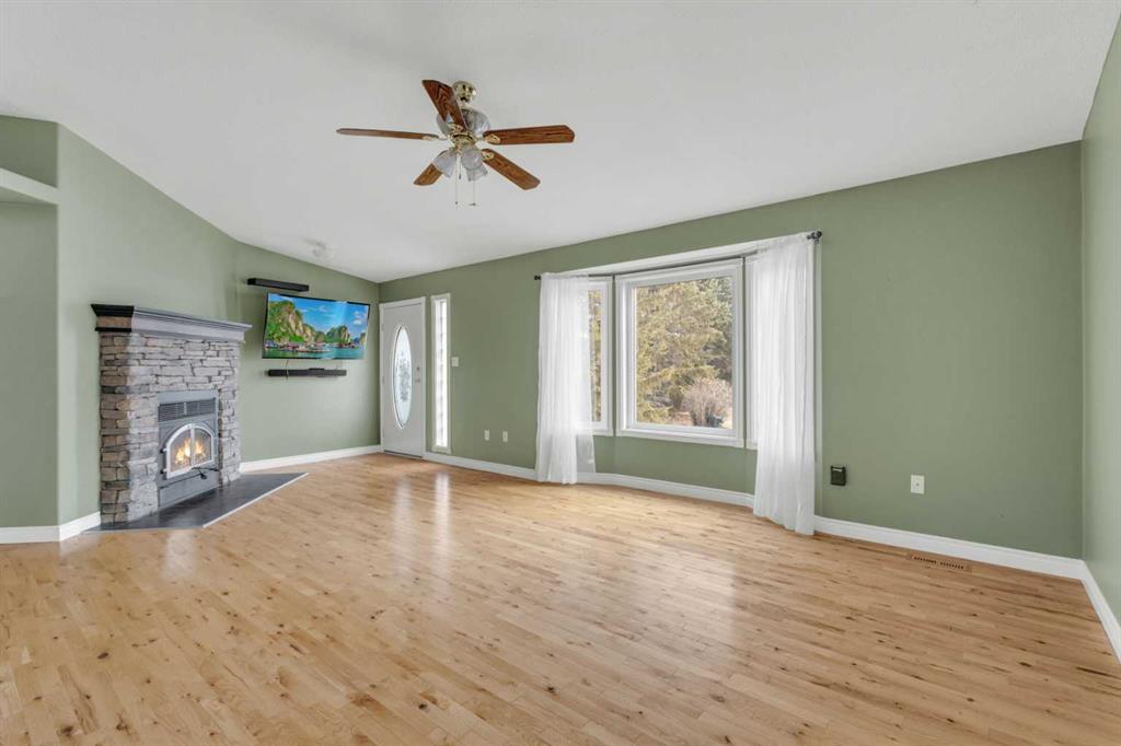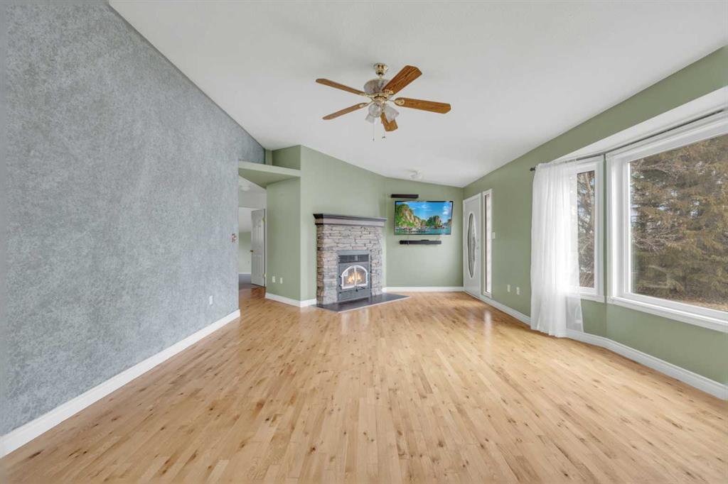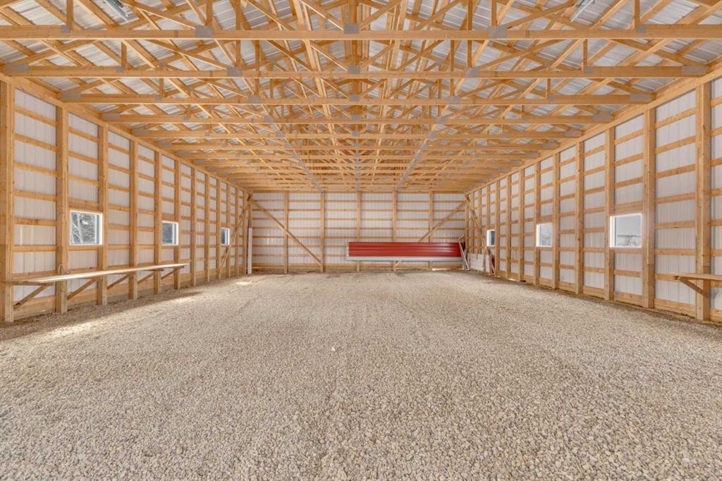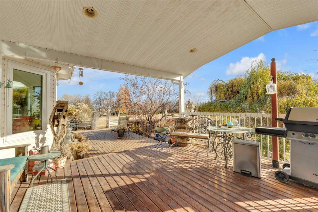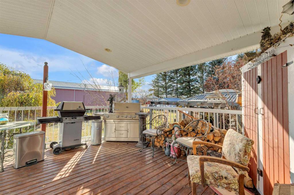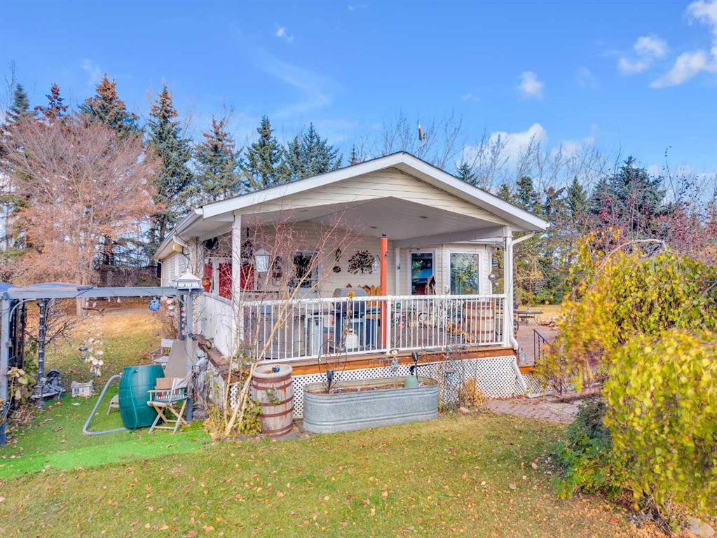 Exceptional opportunity to own 4.7 ± acres to start your county lifestyle. The parcel includes two shops, gated entrance and private setting. The home is a Triple M 2001 modular home in incredible condition on a heated 4-foot concrete foundation, offering nearly 1,885 sq ft, 3 bedrooms plus a den, 1 half bath, a 4-piece main bath, and a 3-piece ensuite. Bright bay windows, a skylight, and a wood-burning fireplace create warm, inviting living spaces, while outside features include a huge, welcoming deck, incredible landscaping, an ornamental fish pond, and a fully enclosed three-season gazebo. Infrastructure is outstanding with two shops. Shop #1 is a 40 × 80 × 14 ft lined and insulated shop with two 13.5 × 20 ft sliding doors, radiant heat, cement floor, floor drain, and fully insulated interior. Shop #2 is a 72 × 48.5 × 16 ft pole shed built in 2018 with a 14 × 20 ft overhead door, gravel floor, walk-in access, and eight windows providing natural light. The yard is reinforced for heavy oilfield traffic, offering durability and excellent access for large trucks and equipment, and additional buildings include three wooden sheds and an outhouse. Recent upgrades include the existing well being recased with new lining and a new pump in 2024, and a new septic tank and field installed in spring 2025. Located just ½ mile off pavement (Hwy 597), 1 mile from the Prentice plant, 3 miles from the NOVA Joffre plant, 13 miles from Lacombe, and 10 miles from Blackfalds.