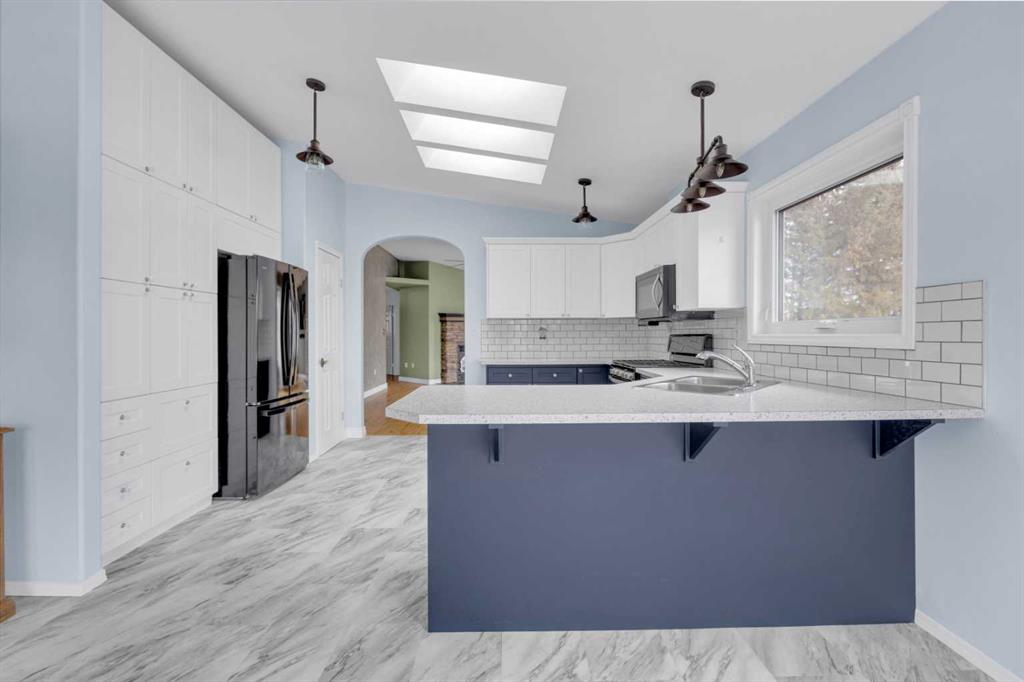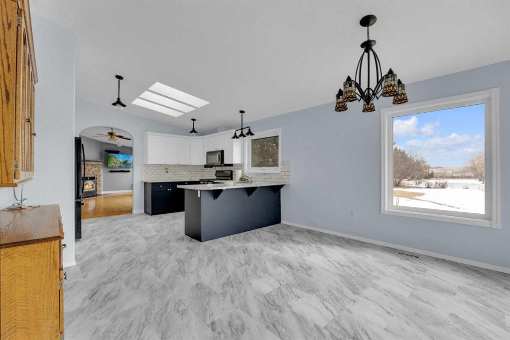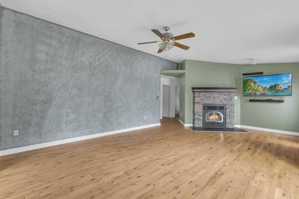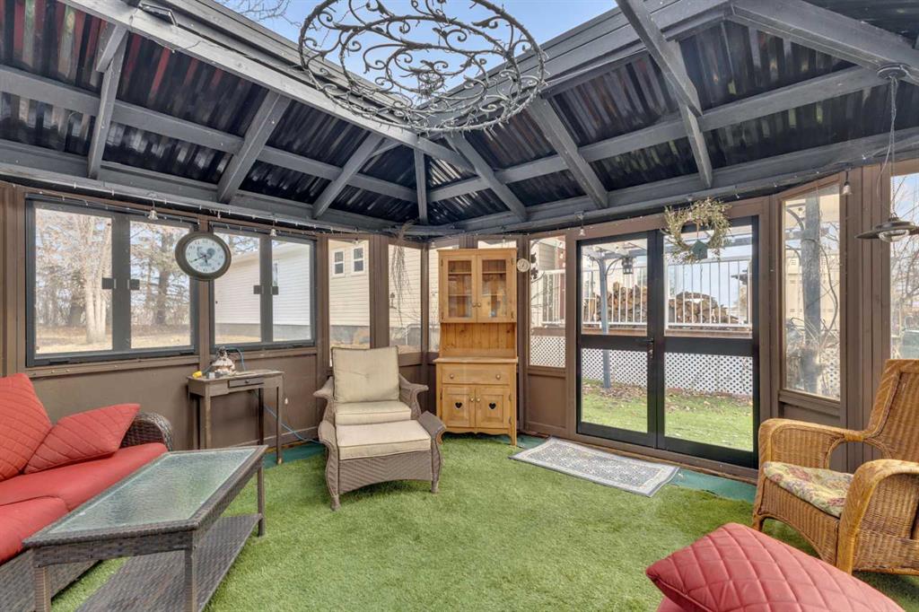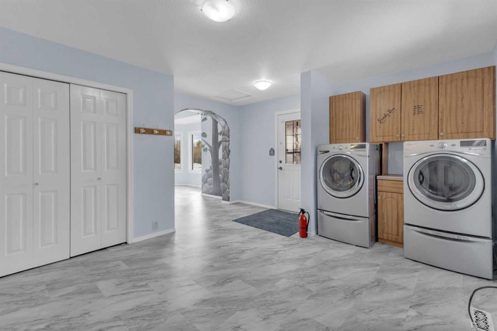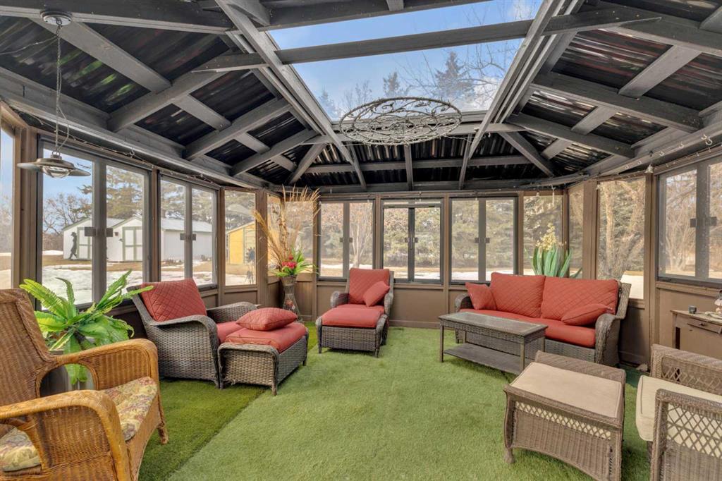 Exceptional opportunity to own 4.7 ± acres to start your county lifestyle. The parcel includes two shops, gated entrance and private setting. The home is a Triple M 2001 modular home in incredible condition on a heated 4-foot concrete foundation, offering nearly 1,885 sq ft, 3 bedrooms plus a den, 1 half bath, a 4-piece main bath, and a 3-piece ensuite. Bright bay windows, a skylight, and a wood-burning fireplace create warm, inviting living spaces, while outside features include a huge, welcoming deck, incredible landscaping, an ornamental fish pond, and a fully enclosed three-season gazebo. Infrastructure is outstanding with two shops. Shop #1 is a 40 × 80 × 14 ft lined and insulated shop with two 13.5 × 20 ft sliding doors, radiant heat, cement floor, floor drain, and fully insulated interior. Shop #2 is a 72 × 48.5 × 16 ft pole shed built in 2018 with a 14 × 20 ft overhead door, gravel floor, walk-in access, and eight windows providing natural light. The yard is reinforced for heavy oilfield traffic, offering durability and excellent access for large trucks and equipment, and additional buildings include three wooden sheds and an outhouse. Recent upgrades include the existing well being recased with new lining and a new pump in 2024, and a new septic tank and field installed in spring 2025. Located just ½ mile off pavement (Hwy 597), 1 mile from the Prentice plant, 3 miles from the NOVA Joffre plant, 13 miles from Lacombe, and 10 miles from Blackfalds.