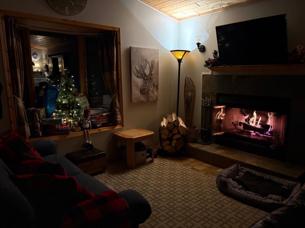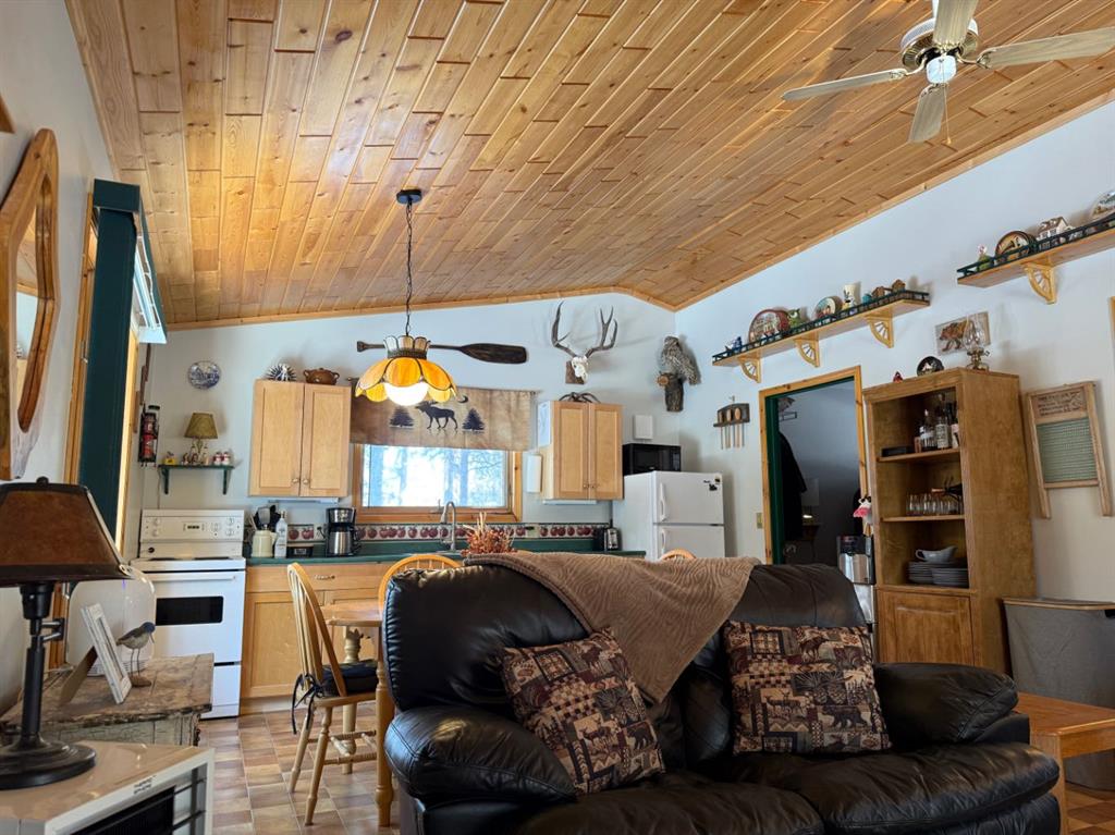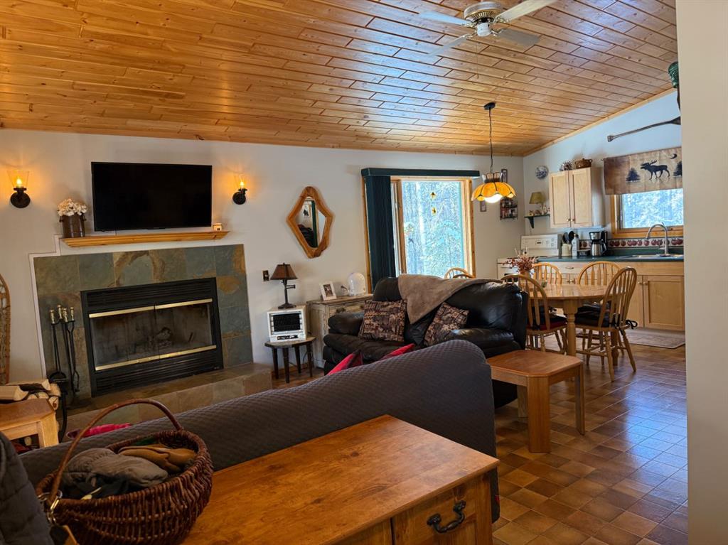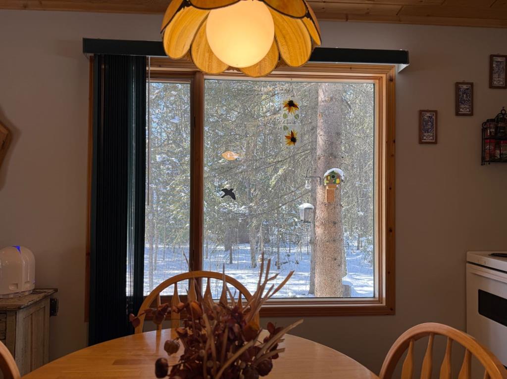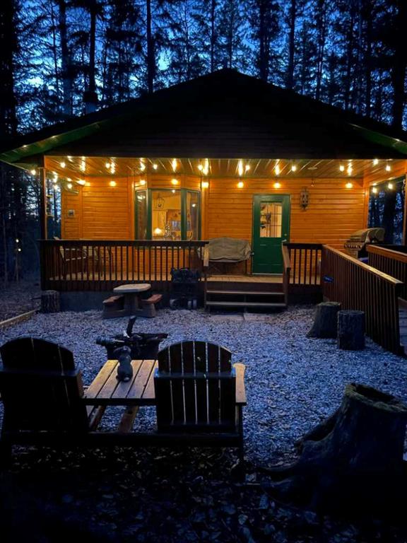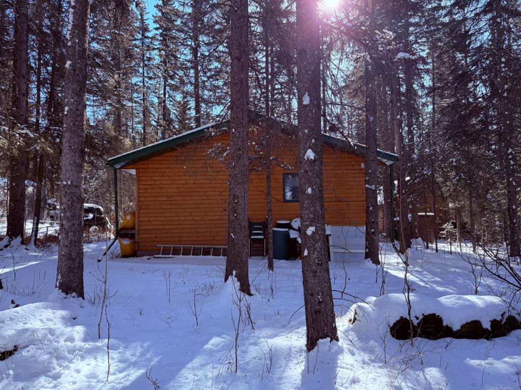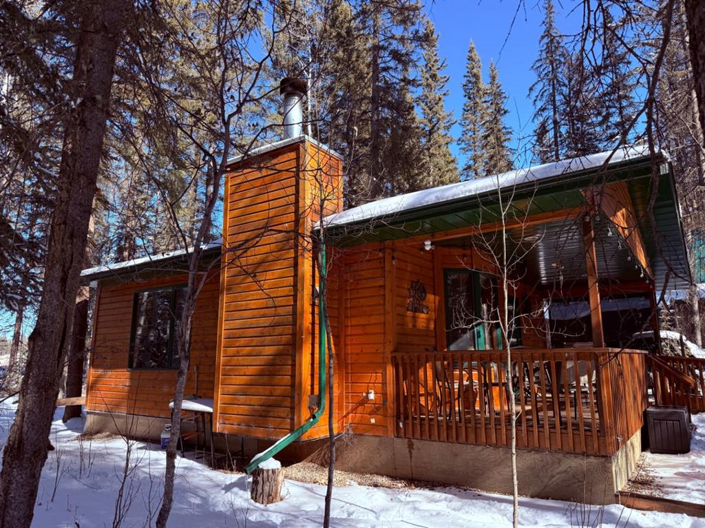Rustic, cozy, year-round accessible cabin in the woods, approx. 1 hr from both Calgary and Red Deer!! Built in 1999, this cabin is 576 sq ft with 2 bedrooms, 1 bath, and open-concept kitchen/dining/living space. Wildlife is often seen walking by through the numerous, large windows. The south-facing bay window welcomes sunshine year-round. Cozy wood-burning fireplace. Covered deck with wheelchair ramp, 36” front door, interior doors 32-24”. 3 vehicle parking capacity with space for 1 RV (one RV allowed for storage and occasional guest usage). Starlink is a reliable option for internet (not included). Cell phone booster improves modest service (included). Golf carts, quads, side by sides etc are allowed on the roads with strict rules to reduce noise and dust. Condo fees include garbage disposal and snow removal on main road as well as park maintenance. Under regular weekend use, the 500 gallon septic tank has been emptied twice per year with the use of compostable toilet (traditional flush toilet can be re-installed in exchange if preferred). Outbuildings include wood shelter, and shed/outhouse combination. Potable water from park system is plumbed into cabin and available from May to October. A simple RV style water pump is used remainder of the year. Cistern tanks are allowed if a new owner wanted to install. Water is a available year-round at nearby park building. High back planters improve privacy with neighbours. Heated by electric heaters and fireplace (current power believed to be suitable for heat pump installation). Gas is available at the property line. Bergen Springs owners enjoy the pond with shelter for bonfires and skating in the winter. Kayak, or canoe and pedalboat in the summer. Or why not try out the disc-golf course, playground, community hall, and off-leash dog park. Grassy common areas are perfect for weddings, gatherings and other community events. The Social Club hold activities throughout the year including BBQs, skating, Tai Chi, darts, bocce ball, parades and fireworks. Bergen Springs is only a 10min drive to Sundre which has grocery stores, recreation centre, pool, walking trails, laundromats, boutique shops and coffee stops. Only an hour from both Calgary and Red Deer. This property boasts about great neighbours, and relaxing natural surroundings. Escape the pavement and traffic to this rejuvenating retreat community!