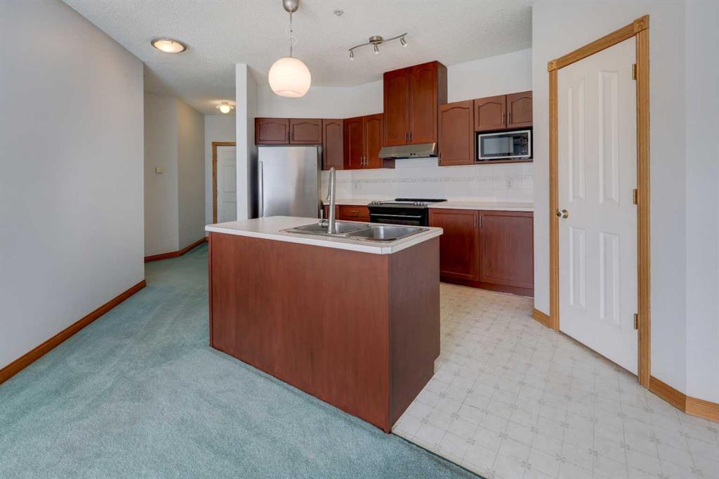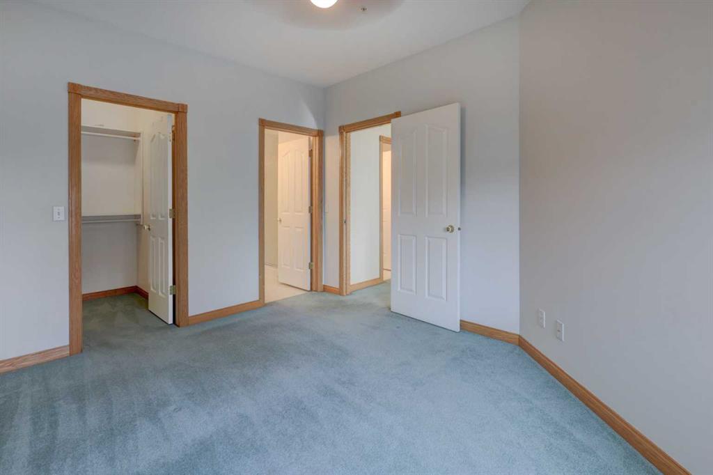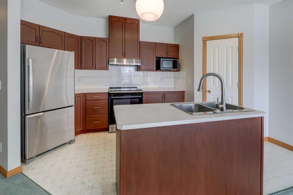 This comfortable home is ready for new owners! Bright open spacious floor plan with two bedrooms and two bathrooms. Freshly painted throughout. Kitchen is a cooks delight with center island, stainless steel fridge, stove and range hood. Plenty of cupboard and counter space and walk in pantry. Sunny living room features access to the south patio that overlooks green space. The bedrooms are privately located down the hall from the main living area. Looking for a big walk in closet the primary bedroom in this home has it! In suite laundry and underground parking complete the package. Excellent location minutes to downtown.
