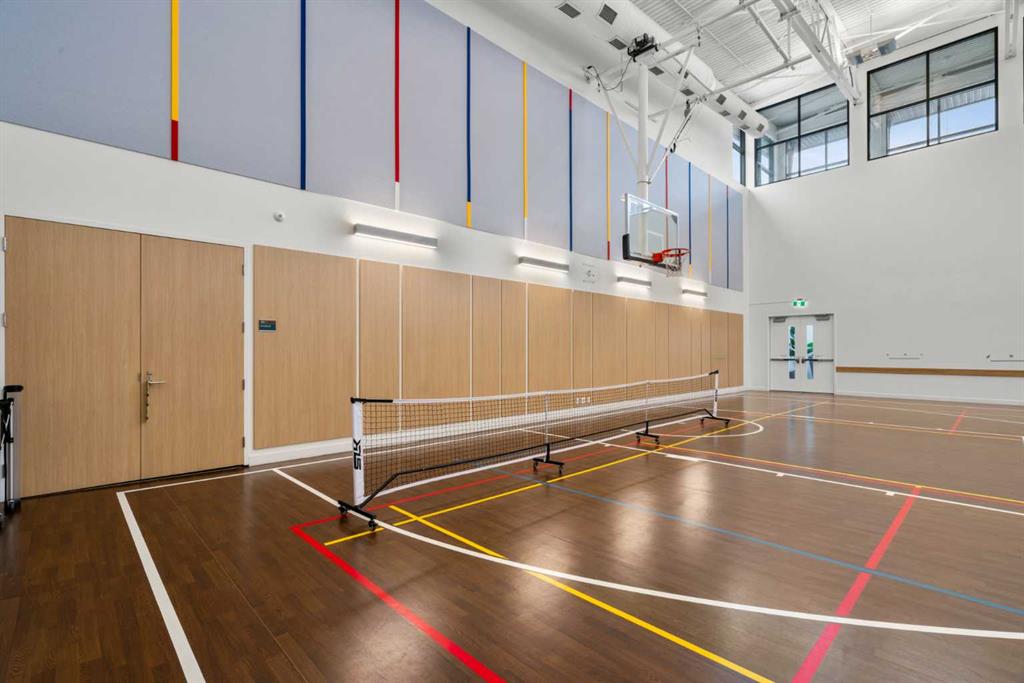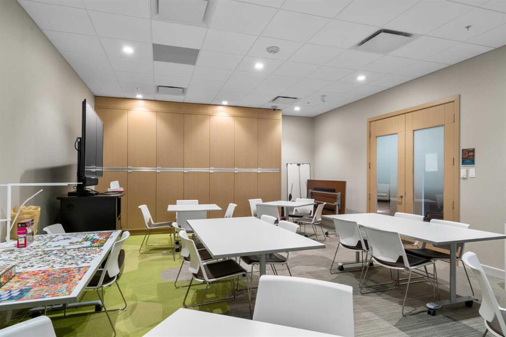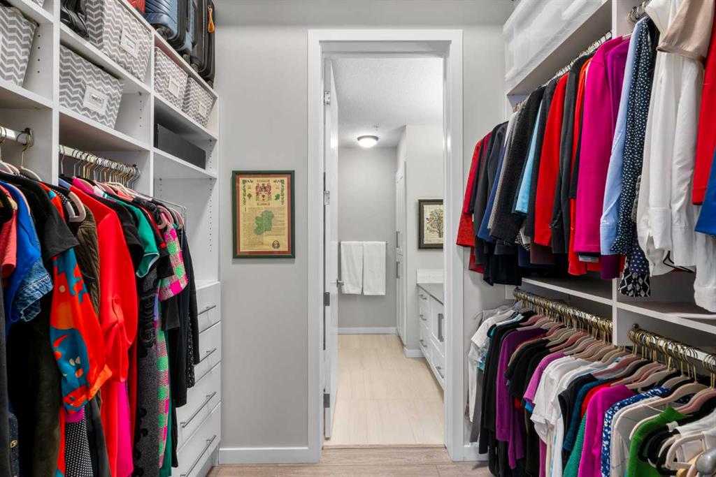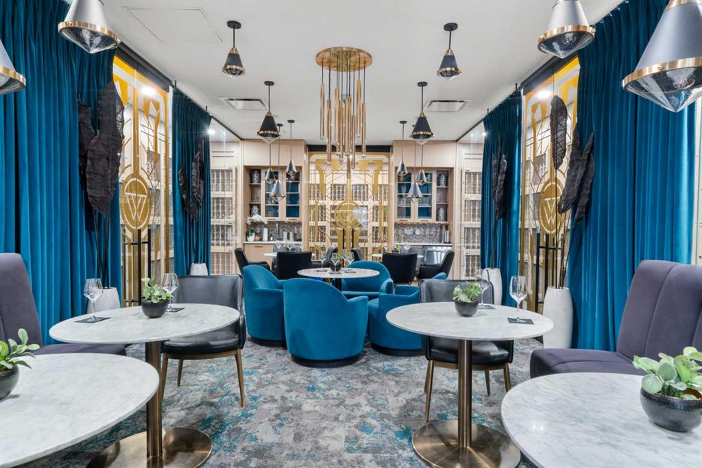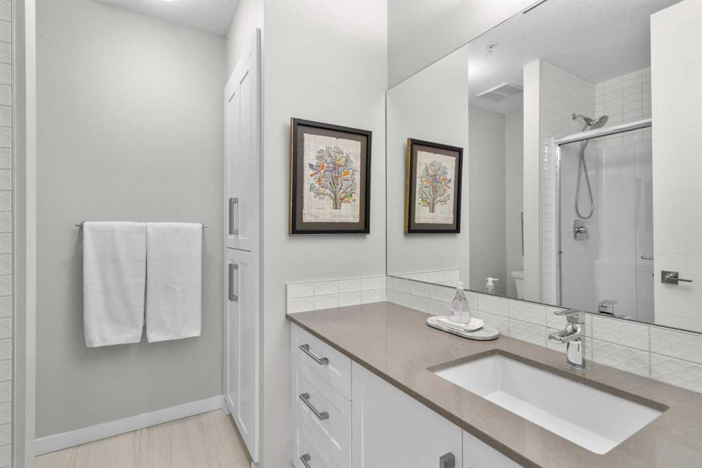 Elevated lake living meets panoramic skyline views in this rare top-floor residence at Westman Village in Mahogany. Positioned at the top of the building with soaring ceilings and expansive west exposure, this executive two-bedroom, two-bathroom luxury condo captures unobstructed mountain, lake, and downtown skyline views — a vantage point seldom available in Calgary’s condominium market. The elevated ceiling height enhances the sense of space while natural light pours through expansive windows, creating a bright and refined living environment. Top-floor positioning further enhances privacy and delivers uninterrupted sightlines that define the home’s living experience. Proudly offered by the original owner and meticulously maintained, this residence features an upgraded kitchen package with premium appliances, stone countertops, enhanced cabinetry, and a rare wrap-around U-shaped kitchen peninsula island — a highly functional layout that significantly expands prep space and creates a natural gathering area rarely found in comparable units. The open-concept design flows seamlessly through the dining and living areas and out to a private covered balcony, where sweeping sunset views stretch from the Rocky Mountains across the lake to Calgary’s skyline. The primary suite offers generous proportions, a customized walk-through closet with built-in organization, and remote-operated blackout blinds for added comfort and privacy. The ensuite is well-appointed with upgraded finishes, while the second bedroom and full bathroom provide flexibility for guests, a home office, or downsizing without compromise. Additional highlights include luxury vinyl plank flooring throughout (no carpet), a thoughtfully designed in-suite laundry space with built-in storage, central air conditioning, triple-pane windows, secure concrete construction, and two titled underground heated parking stalls. Westman Village offers one of Calgary’s most comprehensive private lifestyle environments, with full-service amenities including fitness facilities, wellness areas, social spaces, and premium features such as a wine vault, hot tubs, and steam rooms — all within the building. The complex is pet-friendly and designed for a highly connected, maintenance-free lifestyle. As a resident of Mahogany, you’ll also enjoy access to the private Mahogany Beach House, offering year-round recreational opportunities including lake access, paddleboarding, skating, fitness programming, and community events — delivering a true four-season lake lifestyle just steps from your door. This is more than a condominium — it is a top-floor, view-driven luxury residence with rare design features and double titled parking within one of Calgary’s most sought-after resort-style developments.