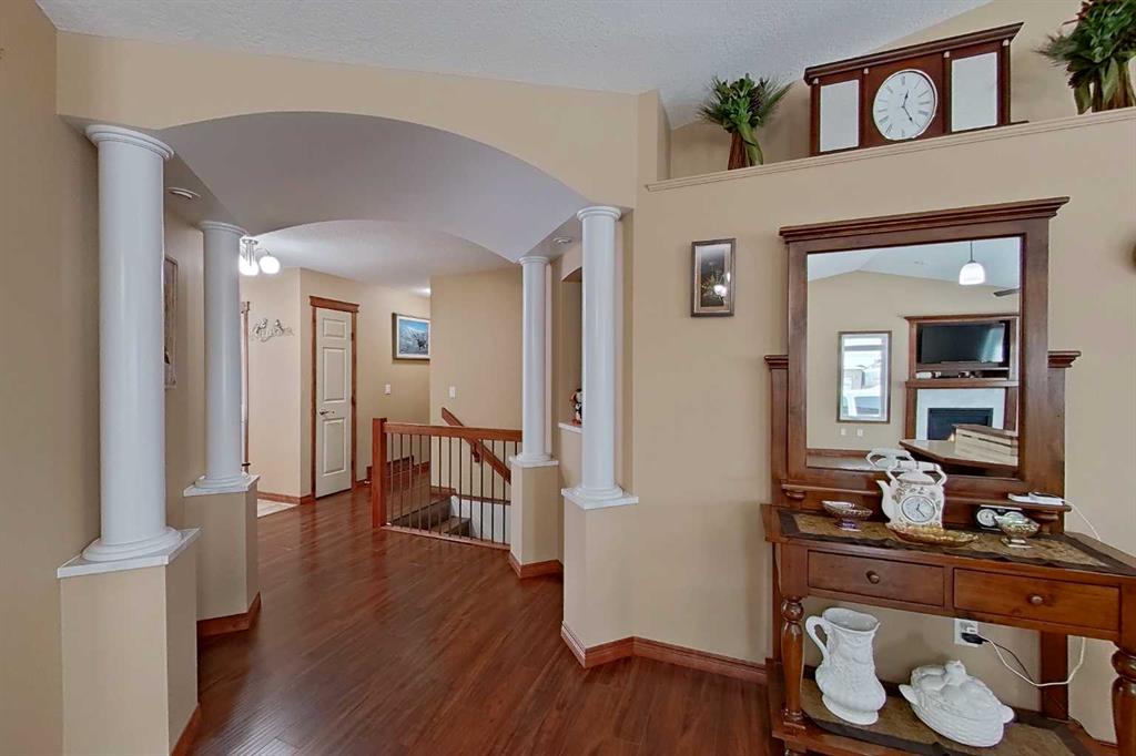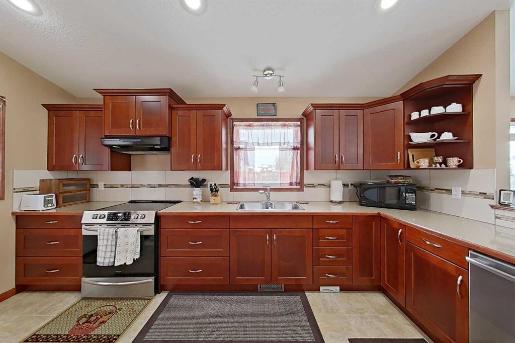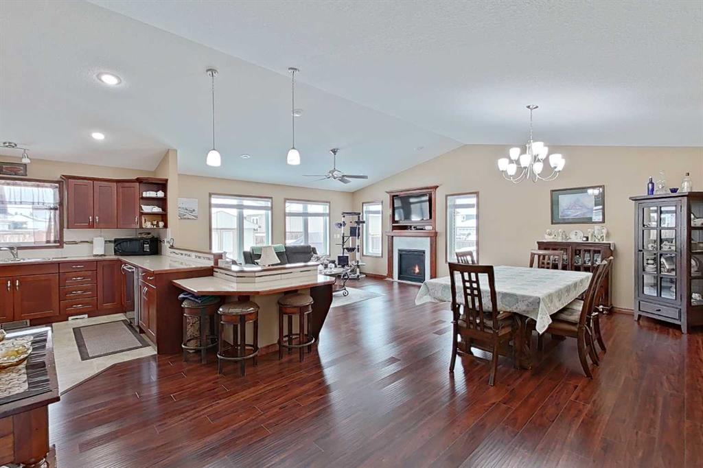Looking to be overwhelmed? Upon entering this beautiful 1765 sq ft bungalow-style home, the first thing you will notice after you pass through the arched entry with 4 sculpted pillars; is that you're about to see a very unique home. The first thing that grabs your attention is the openness, craftsmanship, and attention to detail. Open concept with cathedral ceilings, large dining and living areas, and a nice accentuated gas fireplace on the east wall. You will be impressed by the huge kitchen with the cherry-stained maple wood cupboards; all stainless appliances and a large walk-in pantry. The main level has many windows, all of which are triple-pane with UV-resistant glass. The large primary bedroom has a large ensuite with a vanity, tub and a separate shower, not to mention the impressive walk-in closet. You like being outdoors; a front covered porch is a great place to sit and drink your coffee. The back covered deck is all-weather for sitting or barbecue grilling. The back yard is immense; fruit trees, room for a garden, plenty of space to park your RV or boat. The 850 sq. ft 3-car garage is heated, very spacious and has plenty of room for vehicles, storage, and workbenches. Downstairs is a delight: 3 more bedrooms, a mini bar cupboard with a fridge and sink, large recreation room, an extra storage room, and a large mechanical room. The basement floor is in-floor heated, providing extra humidity for the home; it also has a regular forced air furnace. This unique home has many bonus features: a large 10,000 sq. ft lot, 6 bedrooms, basement in-floor heating, large 850 sq. ft 3 car garage, 3 car pad parking plus extra parking for a large RV and boat, fully fenced with a huge back yard, natural gas hook-up back deck barbeque. This home is beautiful, unique, spacious, well-maintained, and robust; well worth taking the time to view.