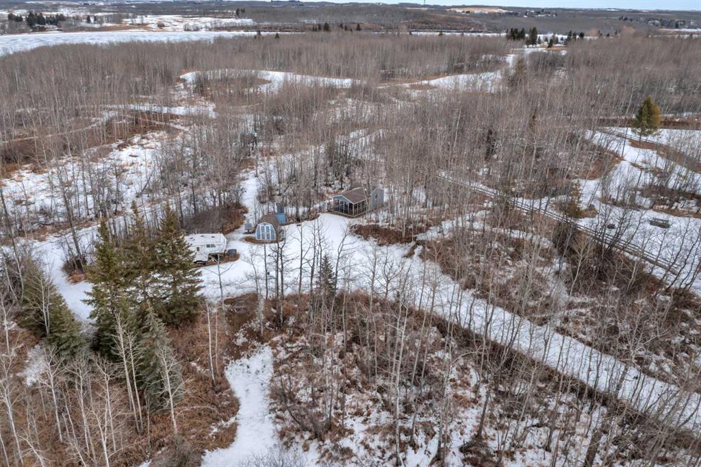 Visit REALTOR® website for additional information. Rosewood Estates — Pine Lake’s Best Kept Secret Some places aren’t meant to be busy. They’re meant to be found. Tucked away on the northwest corner of Pine Lake, Rosewood Estates is one of those rare communities—peaceful, quiet, and close enough to town for full-time living or easy weeknight escapes. It’s the kind of place people go to slow down, where the lake is just a short walk away. Private. Hidden. Convenient. Set on 1.54 acres, this well-equipped recreational property offers a strong balance of current utility and future potential, with key services already in place, including a drilled well, septic system, power with sub-panel, and natural gas nearby. Approximately half an acre is cleared and grassed, creating a usable open area or future build site, while mature trees surround the remainder of the property, providing privacy. A beautiful tree-lined driveway offers both access and separation from the road. Functional improvements include a 12x12 bunkie/cook shack, 8x10 storage shed, and a small shelter with utility trailer. Maintenance equipment is also included: riding mower, push mower, whipper snipper, and garden tools. The property features planted evergreens, along with saskatoon bushes and raspberries, and offers ample space for RV, boat, and trailer storage. Community amenities include walking trails, multiple picnic areas (including both lakeview and lakeside locations), a beach, and dock, all supported by a minimal HOA fee (historically around $50/year). Whispering Pines Golf & Country Club is just minutes away, and the property offers convenient access to SE Red Deer and Penhold (25 minutes), Innisfail (30 minutes), and Calgary or Edmonton (approximately 1.5 hours). A 22 ft Vanguard 5th wheel trailer (connected to septic and sleeping up to 6) is negotiable.