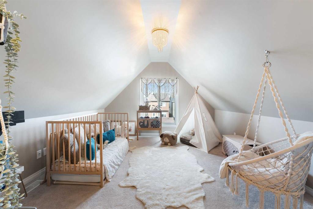 Welcome to a home that delivers space, style, and versatility across all three beautifully finished levels. Offering five bedrooms plus a loft and a fully developed basement, this Built Green certified property is designed to meet the needs of growing families and those who love to entertain. Step inside to a welcoming front foyer with a generous closet and a functional flow that immediately feels like home. The living room is anchored by a tile-faced fireplace, creating a warm and inviting focal point, while the central dining area comfortably accommodates a full-size table for everyday living or hosting. At the back, the kitchen is both spacious and practical, featuring granite countertops, ample cabinetry, a pantry, and upgraded appliances including a gas range, built-in hood fan, dishwasher, and refrigerator (2024). It overlooks the thoughtfully designed backyard, making it perfect for keeping an eye on kids or guests. A 2-piece bath and a mudroom with built-in storage complete the main level. Upstairs, the layout is ideal for privacy and function. The primary suite is set apart with a large walk-in closet and a well-appointed 4-piece ensuite, while two additional bedrooms are positioned on the opposite end. A central 4-piece bath and convenient upper laundry round out this level. The fully developed third floor expands your options with a fourth bedroom, another full bath, and a versatile loft—perfect for a home office, media space, or retreat. The fully finished basement adds an additional 511 sq ft of living space, complete with a fifth bedroom, full bathroom, a large recreation area, and ample storage. Altogether, including the 3rd story loft level, this home offers exceptional usable space rarely found in similar properties. Outside, both the front and back yards have been professionally landscaped with low-maintenance design in mind. Enjoy perennial gardens, decorative grasses, paver stone features, and artificial turf in the backyard. The deck has been expanded to 10x18, offering a great outdoor living space for summer evenings. Additional highlights include granite throughout all bathrooms, sliding glass shower enclosures, a pedestal sink in the powder room, and a 20x20 garage with space-saver trusses for extra storage. Major updates provide peace of mind, including a new roof (2025), new siding (2025), and a new garage door (2026). This is a rare opportunity to own a meticulously maintained, thoughtfully upgraded home with room to grow in every direction.