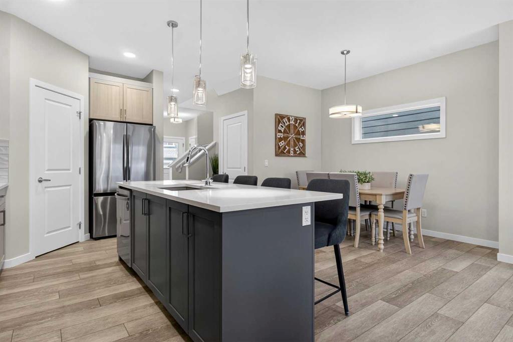 *** OPEN HOUSE SUN APRIL 12TH- 1:00-3:00PM***Located in the sought-after lake community of Mahogany, this upgraded and move-in ready home offers over 2,600 sq ft of developed living space, with 5 bedrooms, 3.5 bathrooms, and over $50,000 in thoughtful upgrades throughout. The main floor delivers both function and flow, with 9-foot ceilings and a bright, open-concept layout. A versatile front flex room adapts easily as a home office, sitting area, or playroom. The kitchen anchors the space with upgraded quartz countertops, extended cabinetry, upgraded appliances, and refined lighting and plumbing fixtures. An oversized 8-foot island provides additional seating and workspace, seamlessly connecting the kitchen, dining, and living areas. Upstairs features three well-sized bedrooms, a large bonus room, and the convenience of upper-floor laundry. The primary suite offers a walk-in closet and a well-appointed ensuite, creating a comfortable and private retreat. The professionally developed basement, completed by the builder, offers 9-foot ceilings, fire-rated separation, two additional bedrooms, a full bathroom, and a spacious recreation area. A separate side entrance and rough-ins for a future kitchen provide added flexibility for extended family or future legal suite potential (subject to City of Calgary approval). The exterior is equally well considered, with a fully fenced yard, a large rear deck, and a poured concrete pad ready for a future hot tub. The double detached garage is finished with durable Hardie board siding to match the home. All improvements have been completed with permits, and a compliant RPR is available. Mahogany is one of Calgary’s premier lake communities, offering year-round access to the lake, beaches, parks, pathways, playgrounds, schools, and the shops and restaurants of Westman Village just minutes away.With its size, level of finish, fully developed basement, and overall functionality, this property is competitively positioned within the Mahogany market—offering a level of space and upgrades that is increasingly difficult to find at this price point.