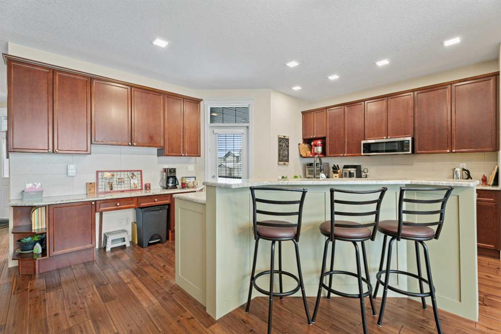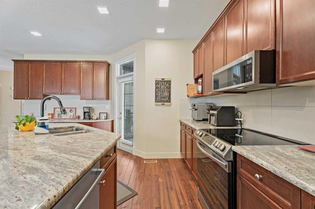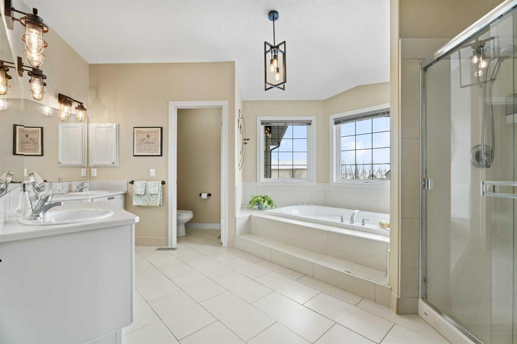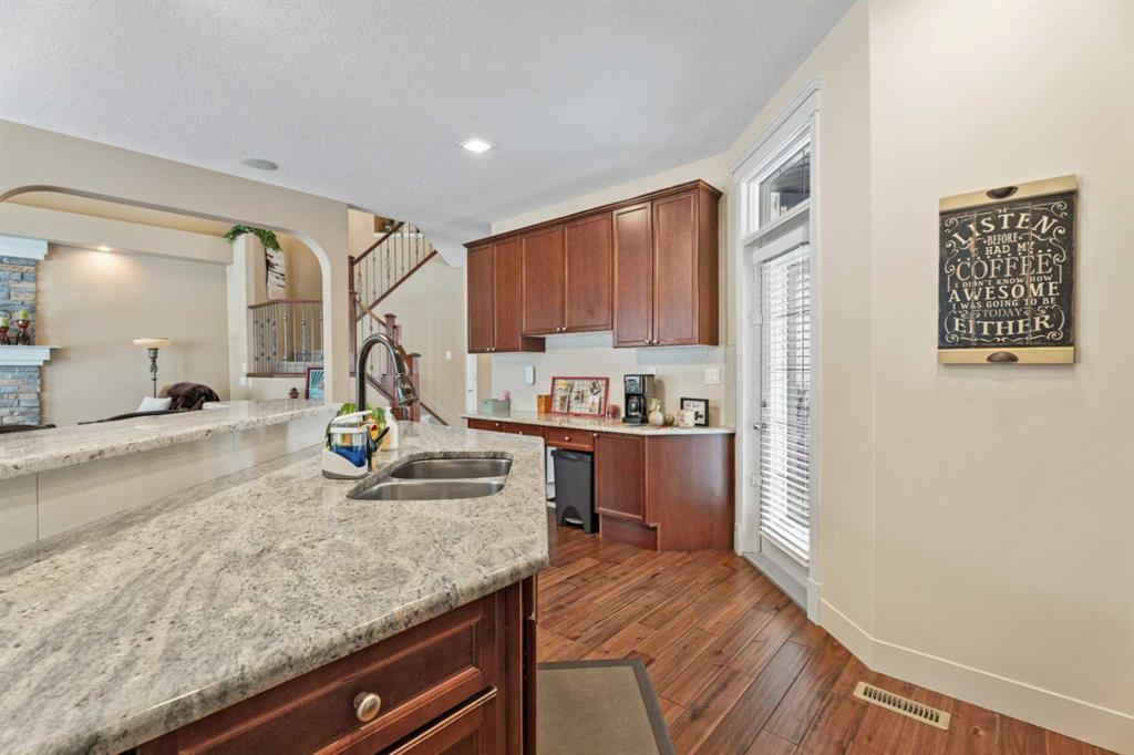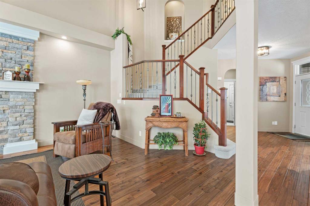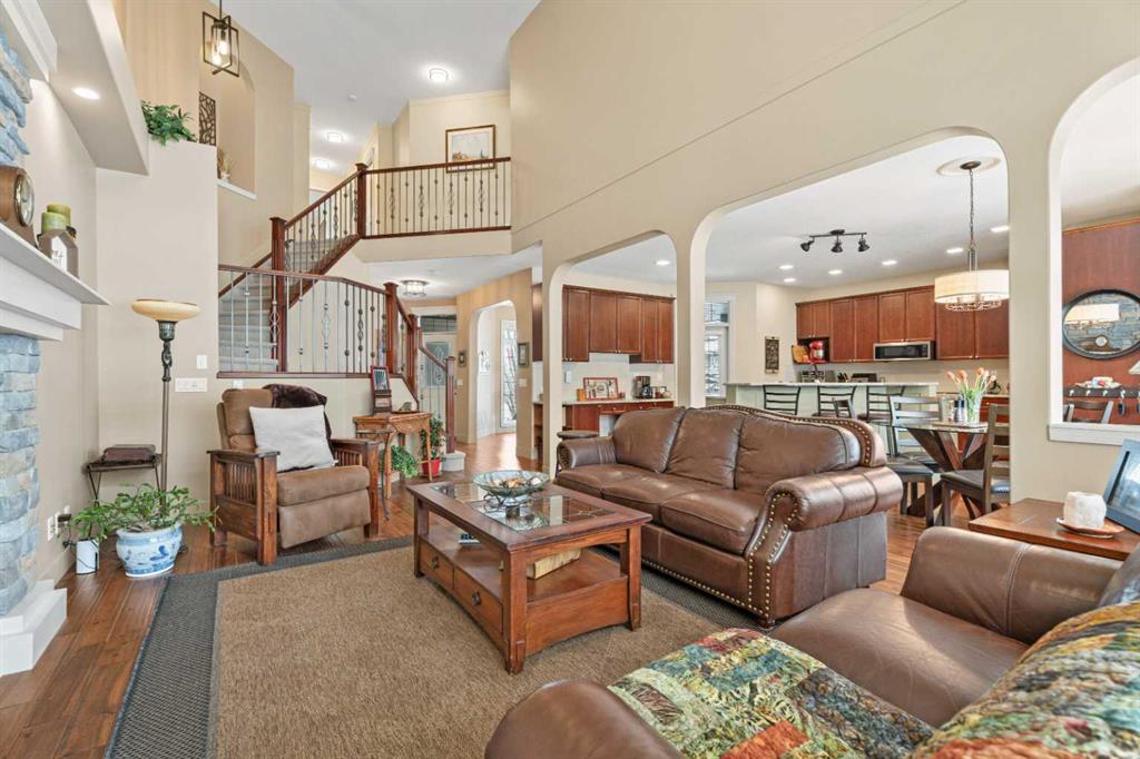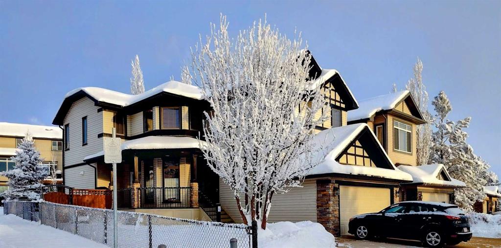 Welcome to this extensively renovated 2-storey former Sterling Showhome offering 3,179 sq ft of refined living space on all 3 levels, ideally positioned on a private corner lot siding and backing onto pathways and greenspace. With no detail overlooked, this is a true turnkey home where quality craftsmanship and thoughtful upgrades are evident throughout. From the moment you arrive, the wraparound front porch and mature, newly refreshed landscaping create standout curb appeal. Inside, you’re greeted by a grand staircase, soaring ceilings, and expansive windows that flood the home with natural light. Rich acacia hardwood flooring, tile and carpet, and a striking stone fireplace anchor the open-concept main floor. The fully upgraded kitchen is both functional and impressive, featuring granite countertops, extensive cabinetry, roll-out storage, a large pantry, and a generous island designed for everyday living and entertaining. Your choice: Kitchen gourmet eating or Family Dining in a Formal setting in the Dining room. Upstairs, the spacious primary retreat offers a spa-inspired ensuite and walk-in closet, complemented by two additional well-sized bedrooms and a full bath. The fully renovated basement (2025) expands your living space with a large family room, additional bedroom, full bathroom, and excellent storage options. The heated, fully finished garage is a rare bonus, complete with cabinetry, upgraded lighting, hot & cold water, new door springs (2026), and a hoist system for a lightweight folding trailer. Enjoy parking for up to 5 vehicles and the added convenience of winter snow removal on the street. Perfectly located just steps to parks, pathways, schools, and within walking distance to shopping and restaurants, this home offers a lifestyle that is as functional as it is beautiful. This home has been comprehensively updated for peace of mind and modern comfort, including: New hot water tank (2025), Full interior repaint (2025), New lighting throughout, Rebuilt decks, new fencing with deer barrier & gate, New landscaping with grass and perennial gardens, Central air conditioning & water softener, Central vacuum system