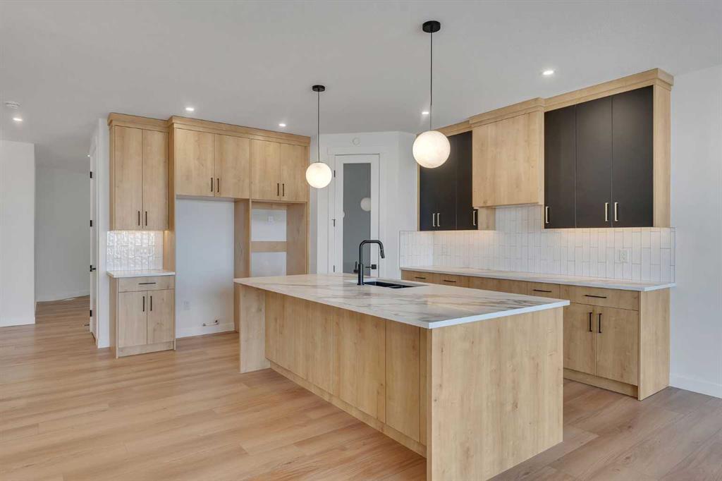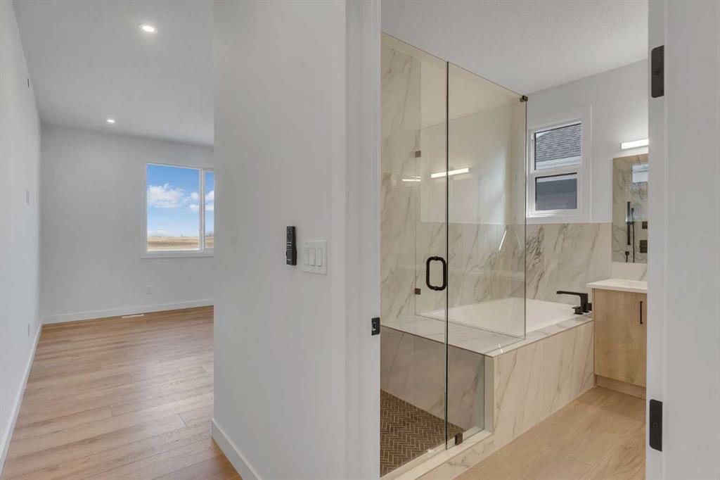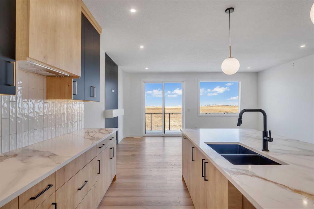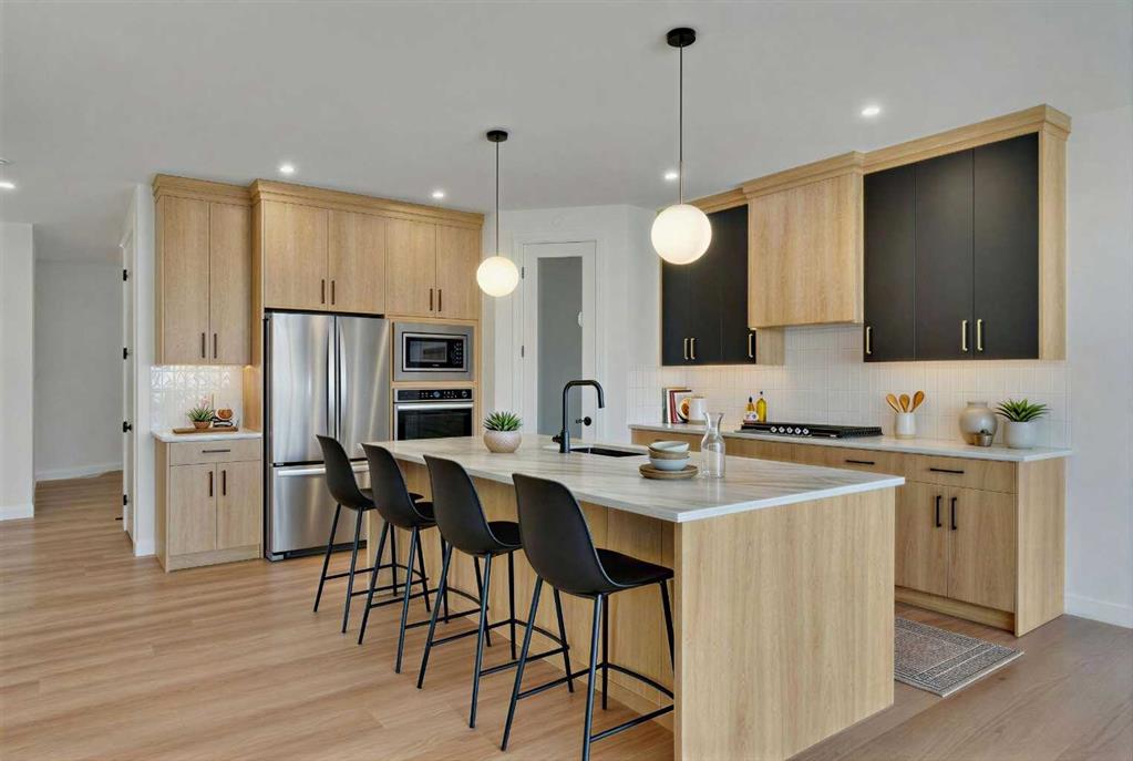 *** OPEN HOUSE SATURDAY APRIL 4, 1 -3 pm *** LARGE TRIPLE CAR GARAGE – BACKING ONTO THE CANAL – WALK-OUT BASEMENT . Welcome to 194 Muirfield Boulevard in the friendly community of the Lakes of Muirfield. This fully finished bungalow offers high end finishes with over 3,200 sq. ft. of living space on a large 53.5 x 129 lot, backing directly onto the canal with no rear neighbors. This same house in other areas can cost upwards of $200,000 to $400,000 more so the value is hard to ignore here. Some images are VIRTUALLY STAGED and may not 100% represent what is there. For this bungalow, the mainfloor and basement both offer 9 feet ceilings, knockdown ceilings and 8 foot doors on the Mainfloor. There are 2 bedrooms on the main floor and an additional third room that can be either an office or a bedroom when you add a closet or a wardrobe. The kitchen offers quartz countertops, a corner pantry, large island, and comes with an appliance allowance to choose your own appliances. The kitchen comes with a GAS COOKTOP or an induction cooktop. Adjacent to the kitchen is a bright dining area and a living room with an electric fireplace, all opening onto an extra-wide (FULL HOME WIDTH) private balcony with beautiful fairway views, perfect for relaxing or entertaining. The primary bedroom features a 5-piece ensuite with double sinks, soaker tub, separate glass upgraded shower (10 mm glass, seating area + massive tiles to the ceiling), and a walk-in closet. The finished basement includes 2 large bedrooms, a 5-piece bathroom, a huge rec room, a wet bar, and lots of storage/utility space—perfect for entertaining or extended family. The triple front-attached garage (nearly 29' 1" x 26' 5") is drywalled and insulated, with lots of room for vehicles, even your large trucks and tools. The wide driveway provides even more parking. The exterior is high quality stucco, exposed aggregate concrete driveway and steps. All premium features that are usually big upgrades in other communities. The other nice thing about this location is that you’re not going to be surrounded by more construction and can enjoy your home more peacefully. A rare chance to own a new, move-in-ready bungalow surrounded by the golf course in a quiet, secure community. Book your showing today!