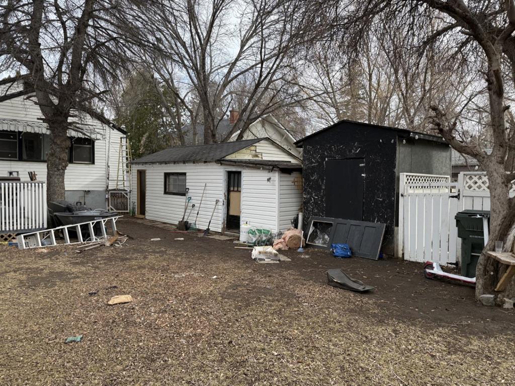 Excellent Location Near Central Park and Alexandria Middle School! This bungalow sits on a generous 6,500 sq. ft. lot; located in a mature, tree-lined neighbourhood offering backyard privacy and shade. The basement presents an opportunity for a basement suite as there is a kitchen space already developed with a side entrance that allows direct access to the basement. The main floor has 2 bedrooms, 1 Bath, Living room, Eat in Kitchen and a cool Sunroom space that allows you to take in the view of the large back yard. A large back deck, fire pit area, fully fenced back yard and cute white picket fence up front, compliment the value of the property. Off street parking/ RV parking available on the long drive. The single detached garage with attached workshop space offers flexibility for storage, projects, or hobby use. This property is a fixer-upper and will require cleanup and updating, making it an ideal option for renovators, investors, or buyers looking to add value through improvements. With the right vision, this home has the potential to be transformed into a warm and inviting space. Near parks, schools, Safeway, downtown and everyday amenities, this property presents a solid opportunity for buyers who aren’t afraid of some work and want to build equity in a desirable location.