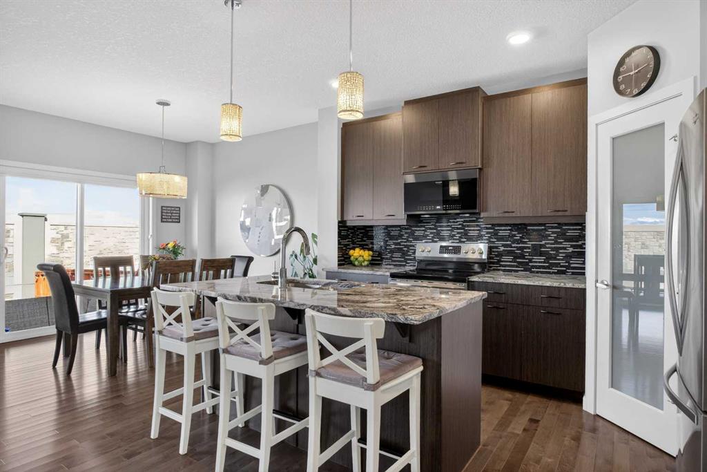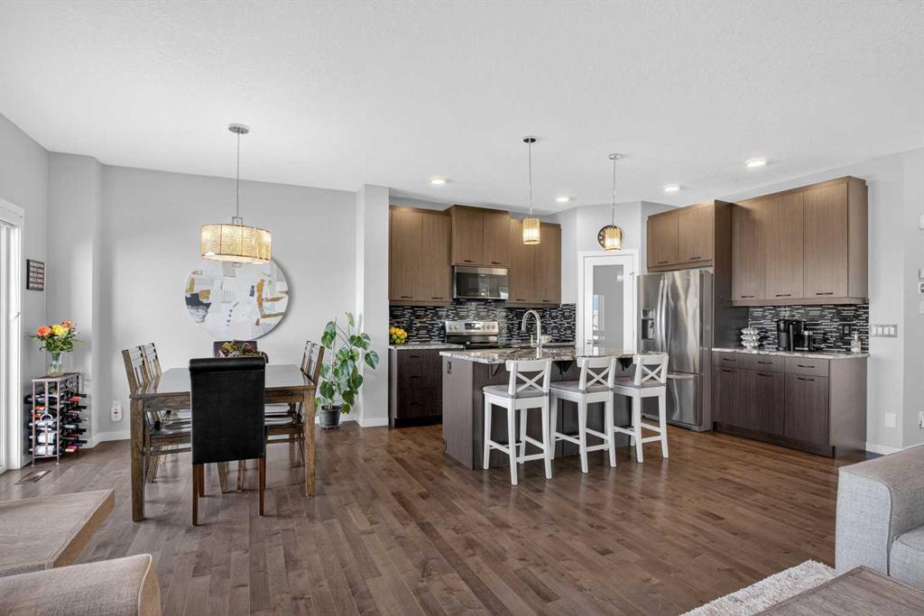 Exceptional care and thoughtful UPGRADES come together in this EXTREMELY WELL-MAINTAINED HOME offering a fully finished layout and a large backyard with NO REAR NEIGHBOURS for added privacy. A bright and functional main level unfolds with HARDWOOD FLOORING and a seamless flow tailored to everyday living and easy entertaining. Anchoring the space, the kitchen features GRANITE COUNTERTOPS, stainless steel appliances, a center island with eating bar and a corner pantry that keeps storage organized and within reach. Sliding doors open from the dining area to a full-width deck, creating an effortless indoor-outdoor connection throughout the warmer months. Comfort and relaxation take shape in the living room where a gas fireplace framed by floor-to-ceiling stone tile establishes a warm focal point, while a tucked-away powder room near the garage simplifies daily routines. NATURAL LIGHT pours into the upper level where a front-facing BONUS ROOM with corner windows introduces a flexible setting for everyone to gather and unwind. Daily organization becomes easier with a dedicated laundry room featuring built-in shelving, while 2 additional bedrooms are positioned alongside a stylish 4-piece bathroom. Rest and recharge in the spacious primary bedroom showcasing a feature wall, a large walk-in closet and a luxurious 5-PIECE ENSUITE with dual vanity, a deep soaker tub and stand-up shower that balances comfort and function. A fully FINISHED SUNSHINE BASEMENT broadens the living space with a large rec room ready to adapt to movies, games, fitness or hobbies, complemented by a 3-piece bathroom and ample storage that keeps everything neatly tucked away. Durable LVP flooring carries through the upper and basement levels, delivering a cohesive look with no carpet throughout the home. Outdoor living feels private and inviting in the backyard with NO NEIGHBOURS BEHIND, a FULL-WIDTH DECK and a dedicated vegetable garden area for those who enjoy growing their own produce. Exterior materials combine vinyl, stone and smart board for a clean, modern appearance, while recent updates including NEW SHINGLES in 2025 and a 2024 water tank add long-term confidence in ownership. CENTRAL AIR CONDITIONING (on assumable lease) enhances comfort through warmer months, and central vacuum introduces everyday convenience. Parking and storage are well accommodated by an insulated double attached garage complete with shelving and hooks, along with an extended driveway that provides additional space. Located in EVANSTON within WALKING DISTANCE TO OUR LADY OF GRACE SCHOOL and just minutes to Evanston Towne Centre, this home is surrounded by pathways, parks and amenities that encourage a connected and walkable lifestyle. Offering privacy, functionality and thoughtful updates in a well-connected NW community, this home delivers a balanced lifestyle designed for modern living.
