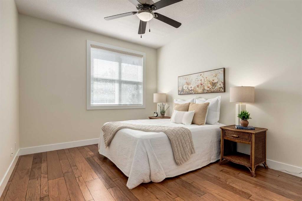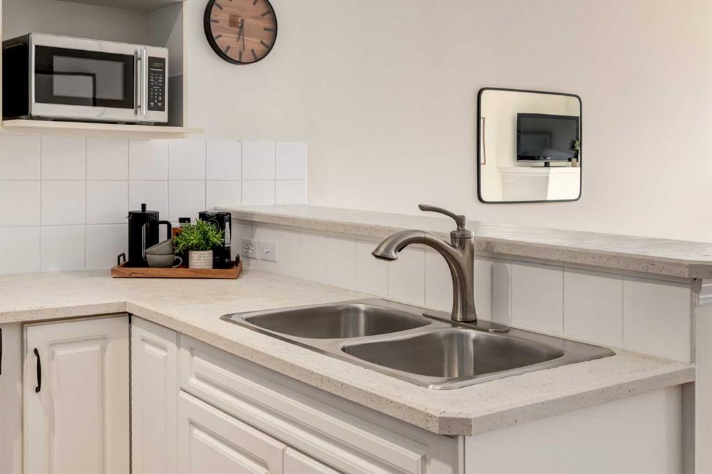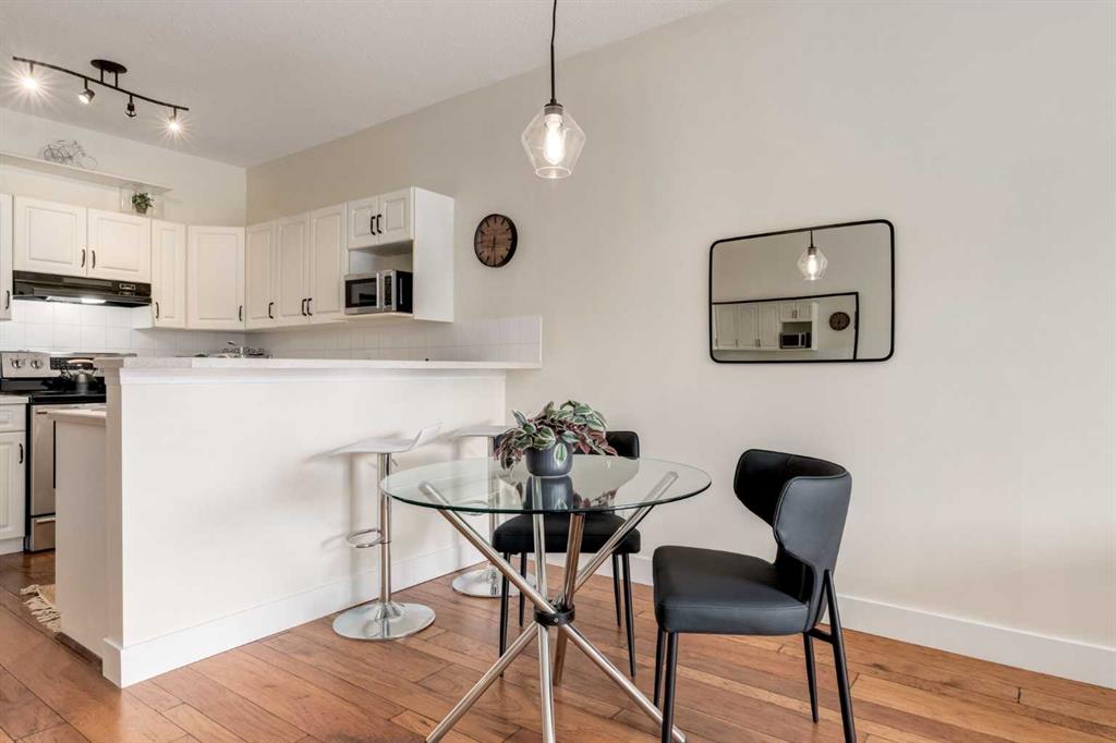 Renovated main floor condo has plenty of natural light and is move in ready! The well appointed kitchen has plenty of cabinets, granite counters with raised breakfast bar and overlooks your large living and dining rooms, perfect for entertaining. Patio doors off the living room lead to your private south facing patio. The primary bedroom has a walk through closet and 4 piece ensuite. The 2nd bedroom/den is adjacent to the 3 piece bath, great for roommates or guests. The insuite laundry room can accommodate a washer and dryer and still have storage space. You also have an assigned storage and a titled parking stall in the heated underground parkade which also has a car wash bay for the residents to use. This well maintained complex has a great location close to many great amenities of Kensington, schools, transit and an easy commute to downtown, SAIT, U of C, and the Foothills and Children's Hospitals. Don't miss out!
