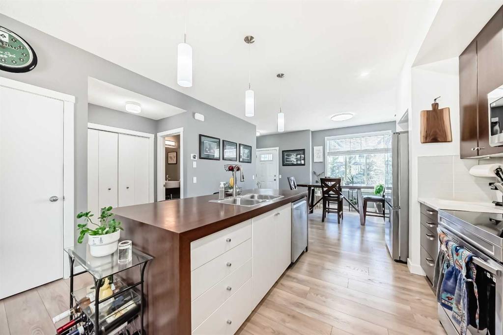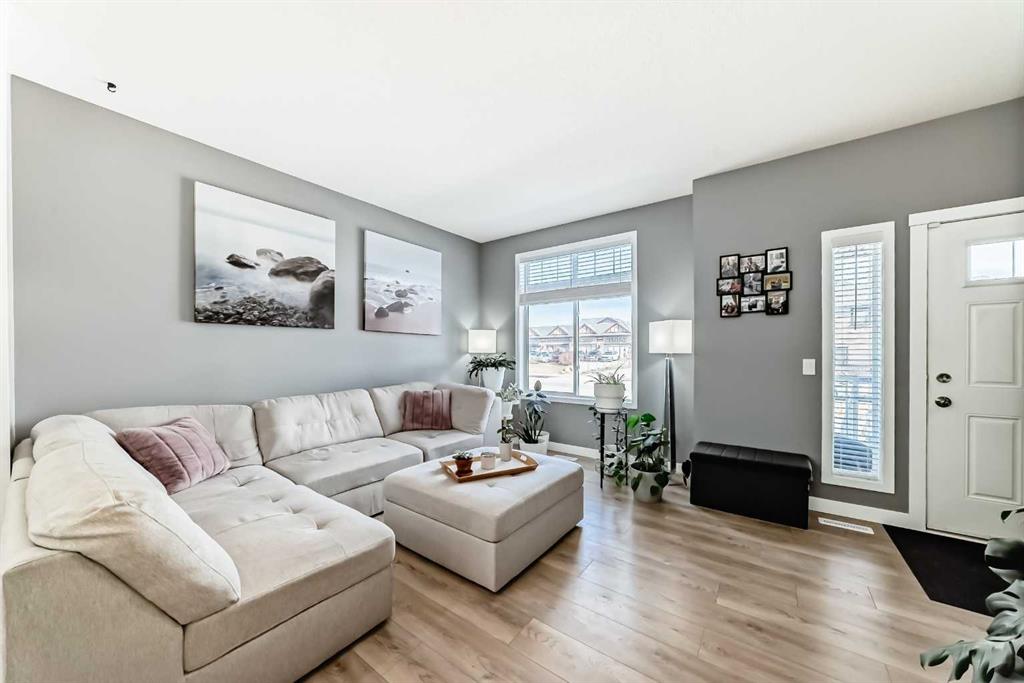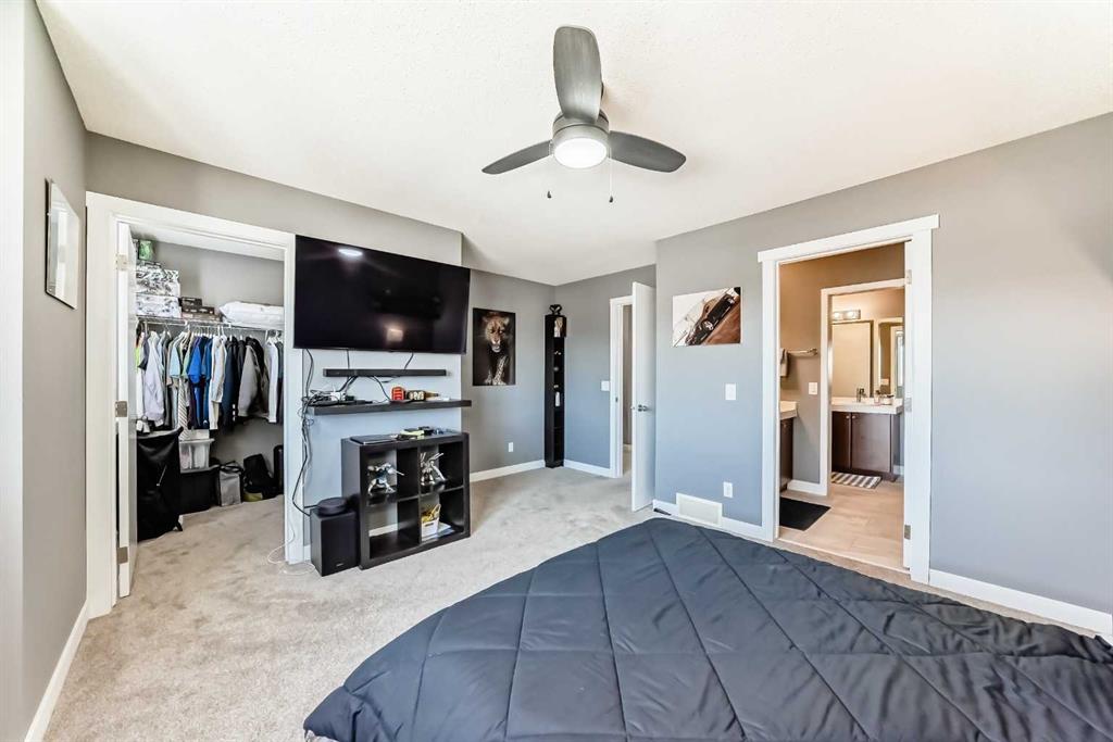 Welcome to this incredible, RENOVATED END UNIT, steps from the pond in beautiful Copperfield. This very spacious 2 storey has an open floorplan with 9 foot ceilings on the main, two enourmous primary bedrooms, each with their own walk in closet on the second floor as well as a full laundry room and unique 'double' 5 piece bathroom. The basement has lots of storage space and a flex room with window. Best of all, there is an almost 19x19 DOUBLE GARAGE, drywalled and insulated, with large parking pad. No need to shuffle cars like a tandem garage! Additional street parking right in front is also available. The extensive renovations include, flooring, paint, baseboards, Decora light switches, appliances and more. Literally nothing left to do, just move in. You will also have full access included to the amenities of the Copperfield Community Association and be steps from the park, playground, courts and pond. Please see photos for additional information. A rare opportunity awaits!