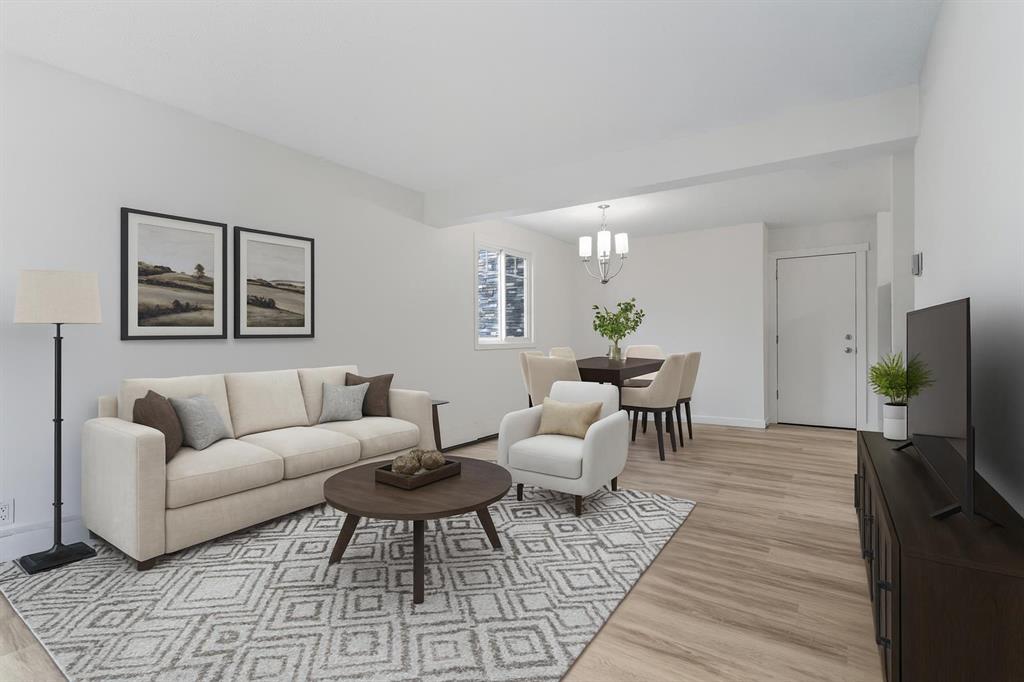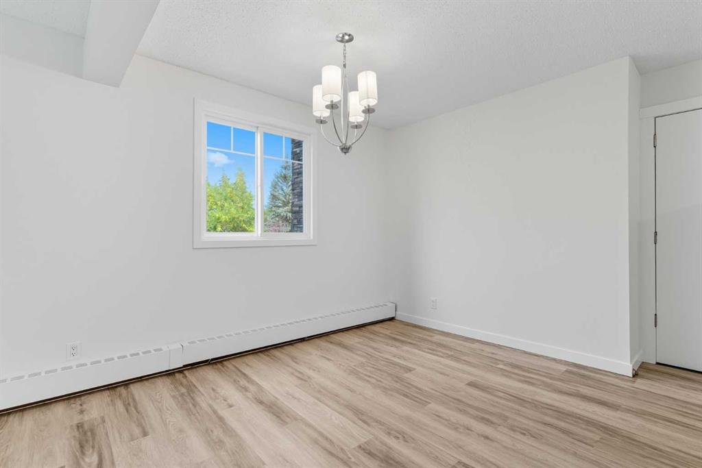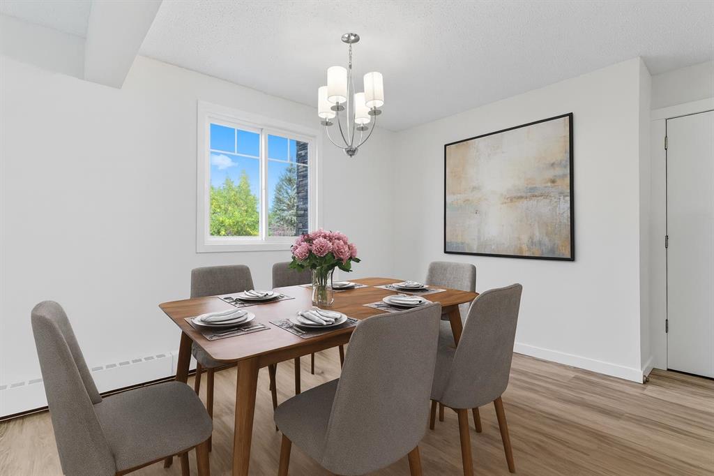 Step inside this beautifully updated corner unit condo and experience a home that balances style, function, and warmth. The open concept living and dining area sets the tone, with bright natural light pouring in through large windows and neutral tones that create a fresh, welcoming atmosphere. The kitchen is a true highlight, showcasing white cabinetry with elegant glass inserts that combine timeless style with everyday functionality. The bathroom has also been upgraded with a new vanity and a stylish tile surround, bringing a fresh, modern feel to this private retreat. The living room is spacious and inviting, perfect for relaxing or entertaining. The dining space sits under a contemporary chandelier, giving the area a polished, modern touch. This condo features two generously sized bedrooms, each designed with comfort in mind. Large windows fill the spaces with natural light, providing calming views of the treed courtyard. Whether you need restful retreats, guest accommodations, or a dedicated home office, these rooms offer the flexibility you need. Recent upgrades throughout include new flooring, lighting, and modern finishes, making this condo truly move-in ready. Prime location close to schools, shopping, dining & transit. Perfect for first-time buyers, downsizers, or investors. This is your chance to own a home that combines modern comfort with everyday convenience. Don’t wait, book your private showing today and see for yourself!