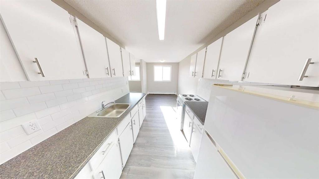 2 bed unit in Maray Apartments! Conveniently located 2 bed 1 bath apartment. Unit features entry closet, storage room/pantry, and newer vinyl plank floors. Large living room, 2 good sized rooms and 4 piece bathroom. The building features keyless fob entry, door buzzer, security cameras and security patrols. Onsite coin laundry. Rent includes water and heat. Above ground parking available for $10/mo. Cat friendly with $50/mo pet fee. Enjoy the perks of living in this central location. Close to Muskoseepi Park and walking distance to the public library. Close to four schools and public transportation. Renter will enjoy the convenience of a central location with restaurants and local shopping close by. Powered above ground parking stall available for $10/mo.