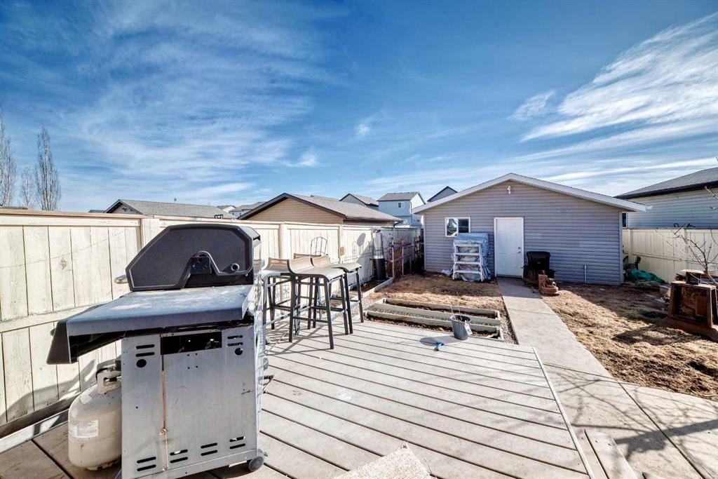 Hello, Gorgeous! Welcome to this charming two-storey home located in the family-friendly community of Morningside, Airdrie. Situated on a quiet street directly across from a greenspace and playground, this home offers a functional layout and convenient access to nearby schools, shopping, and pathways. The main floor features hardwood flooring, an open-concept living and dining area, and a kitchen with granite countertops, a central island, and stainless steel appliances. A 2-piece bathroom completes the main level. Upstairs includes three bedrooms and two full bathrooms, including a primary bedroom with a walk-in closet and 4-piece ensuite. The basement is partially finished with framing in place for two additional bedrooms and a bathroom. The backyard includes a variety of fruit trees and garden space, along with a double detached garage. This home is within walking distance to schools, parks, and amenities, with easy access to Deerfoot Trail for commuting.