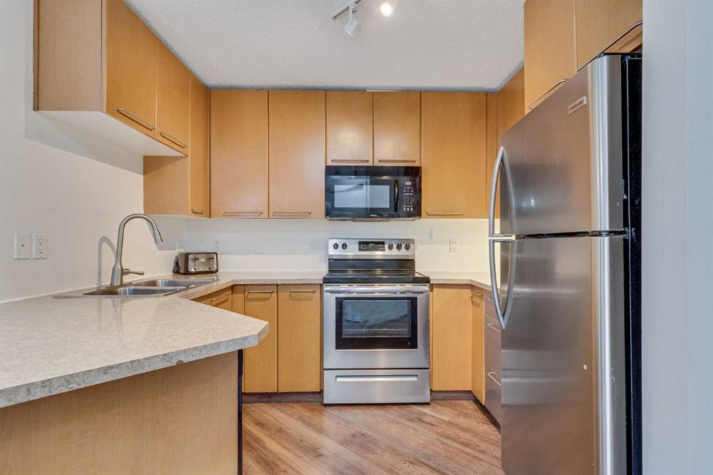 Say hello to Unit #113 in Morgan House — a bright and well-designed 2 bedroom + den, 2 bathroom corner unit offering space, style, and unbeatable walkability. Whether you’re buying your first home, heading to Mount Royal University, investing, or downsizing, this unit hits the mark with an airy, open-concept layout and durable luxury vinyl plank flooring that’s waterproof, pet-proof, and scratch-resistant. Thoughtfully laid out with privacy in mind, the two bedrooms are separated on opposite sides of the condo. The primary suite includes a walk-through closet leading into a private 4-piece ensuite, while the second bedroom gets plenty of sunshine thanks to corner windows. Need a work-from-home setup? The den is ideal as a home office, study, or creative space. The kitchen offers loads of cabinetry and counter space, opening up seamlessly into the dining and living areas — perfect for hosting. A gas fireplace adds warmth and ambiance, while the ground-level walk-out patio gives you easy outdoor access, complete with a gas line for year-round grilling and a great spot to let your pet out or catch the afternoon sun. Additional features include in-suite laundry, titled underground parking (#097), assigned storage locker (#007), and heated visitor parking. Residents enjoy access to fantastic building amenities like a fitness room, guest suite, bike storage, courtyard, and a fully-equipped party room with owner’s lounge. This is a pet-friendly building (with board approval), and quick possession is available. With easy access to major routes like Stoney, Glenmore, and Crowchild, and just minutes from Marda Loop, public transit, and MRU, it’s easy to see why Morgan House is such a sought-after spot.