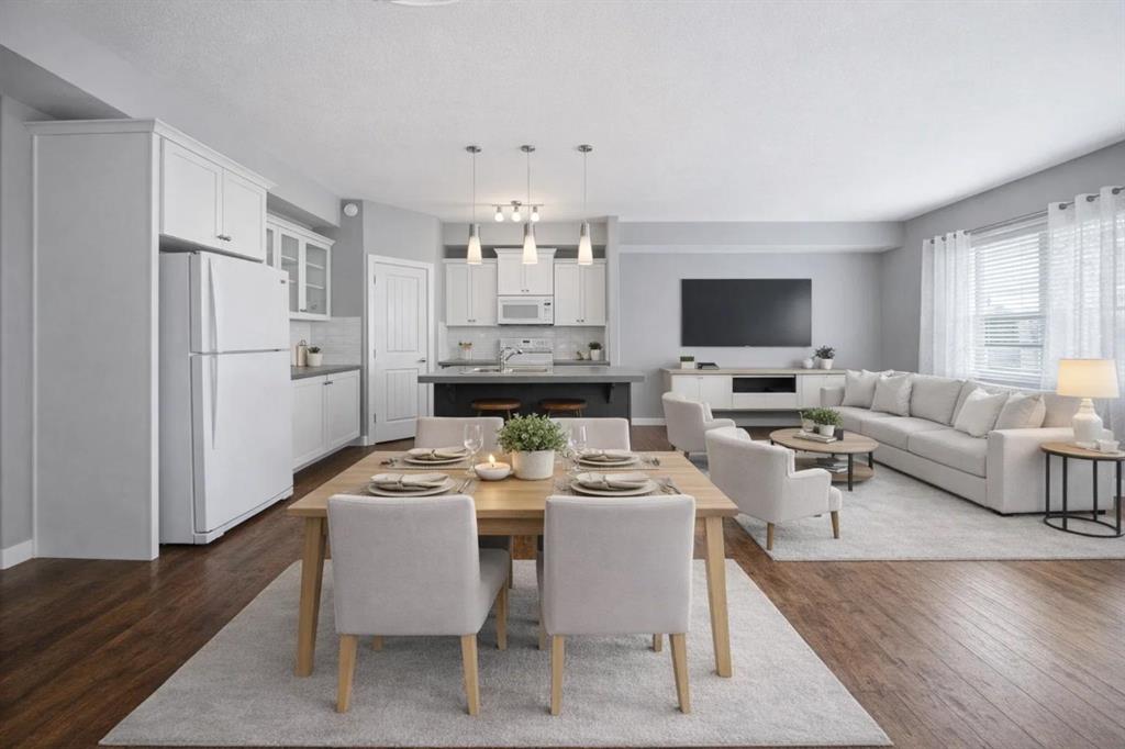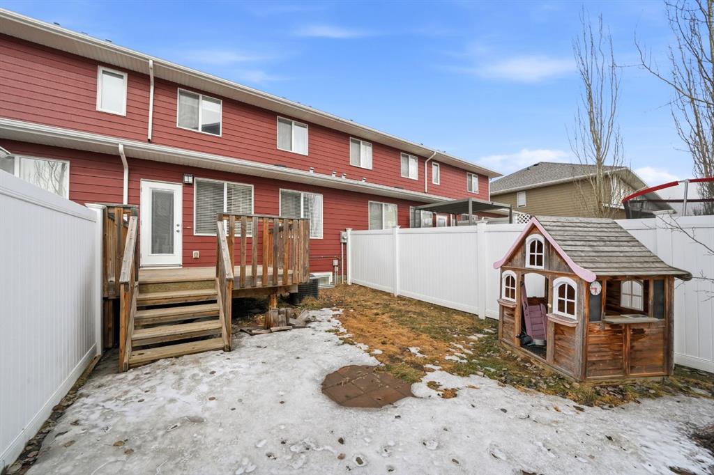 Beautiful Townhouse With NO Condo Fees ~ Upgraded Finishings ~ Single Attached Garage ~ Central A/C. This stylish 2-storey located in the family-friendly neighbourhood of Timberstone is ready for immediate possession. You’re welcomed by a spacious entryway featuring a built-in bench, leading into the bright open-concept main floor with South facing windows. The beautiful kitchen was upgraded at the time of development and offers crisp white cabinetry, charming white appliances, a corner pantry, and a large island with an eating bar—perfect for everyday living and entertaining. The layout flows seamlessly into the cozy living room and dining area, providing plenty of space to host friends and family. From the living room, step outside to the fully fenced (vinyl) backyard, complete with a deck and lower patio—ideal for relaxing or summer evenings. Upstairs showcases the ultimate family layout with 3 bedrooms, including the lovely primary suite featuring a walk-in closet and a 3-piece ensuite. Two additional bedrooms are both generously sized and conveniently located near the 4-piece main bathroom—perfect for younger children. An added bonus is the upper floor laundry for everyday convenience. The developed basement offers excellent additional space with a theatre area, 4th bedroom, play area, 4pc bathroom and a versatile workspace that could easily be converted into a large closet.