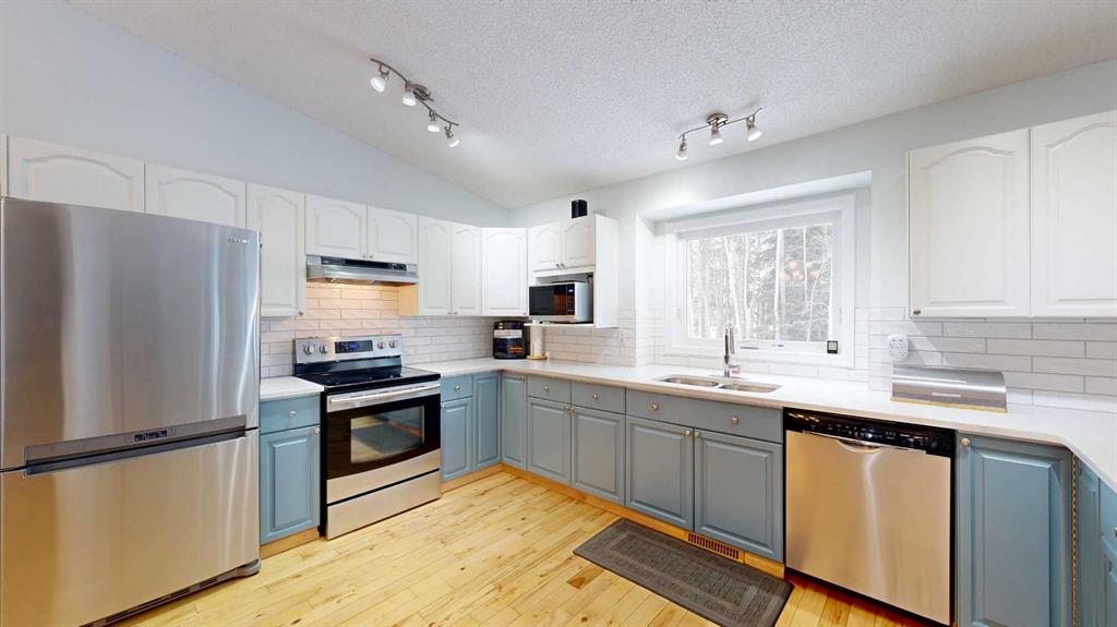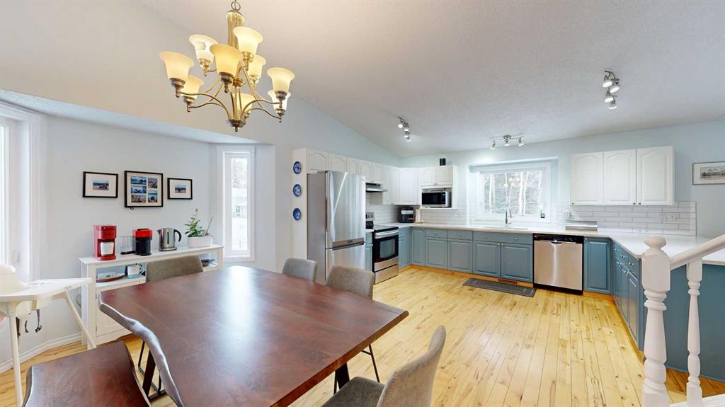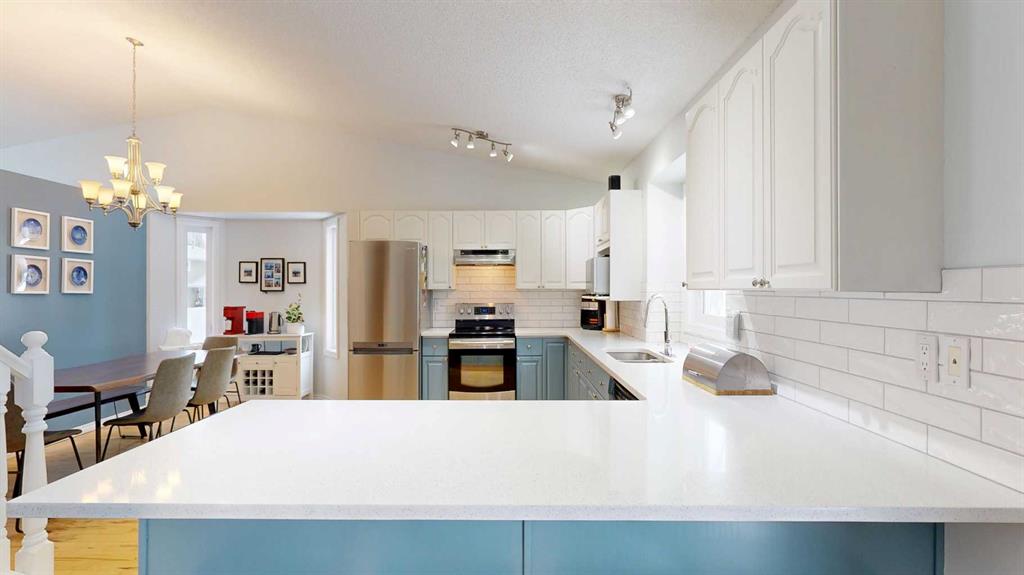 Spacious and versatile home offering excellent flexibility for growing families! Currently configured as a 3-bedroom property for MLS purposes, this 1.5-storey home also features additional basement rooms that can function as bedrooms, office space, or hobby rooms—providing potential for up to 5 sleeping areas. The main floor showcases a unique and functional layout with vaulted ceilings, a large kitchen, and an open-concept dining and living area at the back of the home—perfect for everyday living and entertaining. A second, more private front living room near the entry offers a great space to relax or host guests. You’ll also appreciate the convenience of main floor laundry and a 2-piece bathroom located just off the garage. Upstairs features three bedrooms, including a spacious primary with its own 4-piece ensuite, plus an additional 4-piece bathroom for family or guests. Enjoy peace of mind with new triple-pane windows and updated plumbing, along with a large lot and RV parking. Ideally located in an excellent area close to amenities, this home offers both space and flexibility to suit your needs.