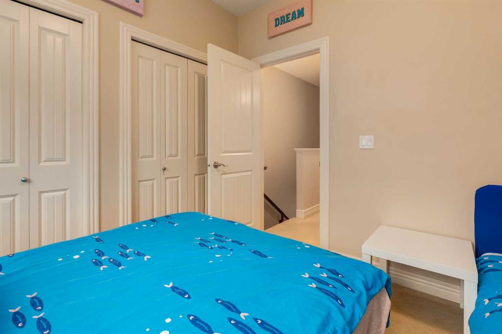 Exceptional value with low condo fees in the highly sought after community of Rocky Ridge, offering west facing mountain views and a quiet, private location in the complex. The entry level welcomes you with a spacious foyer, additional storage and direct access to the single attached heated garage, complete with an EV charging station. The main floor features 9’ ceilings, rich cherry hardwood flooring and a bright open concept design ideal for everyday living. The kitchen connects to the dining and living areas, while large windows flood the space with natural light. Just off the living room, a patio door opens to a spacious deck; perfect for relaxing or entertaining. Upstairs, enjoy the convenience of upper level laundry. The primary bedroom captures beautiful mountain views and includes a 3 piece ensuite, while a second bedroom and full 4 piece bathroom offer flexibility for family, guests or an additional space for a home office. Recent updates include; Furnace (2021), Epoxy flooring in garage (2024), Hot water tank (2025) and Humidifier (2025). The complex itself includes a spacious fitness centre, ample visitor parking, gazebo area and included in the condo fees is access to the Rocky Ridge Community Center. The community provides easy access to parks, playgrounds, walking paths, shopping & schools. Just 15 minutes from the University of Calgary, Foothills Hospital, Calgary Children’s Hospital, Market Mall, Bowness Park, Canada Olympic Park & more!