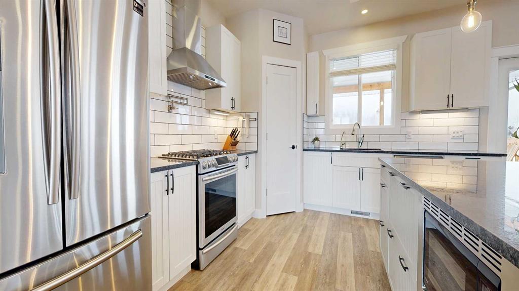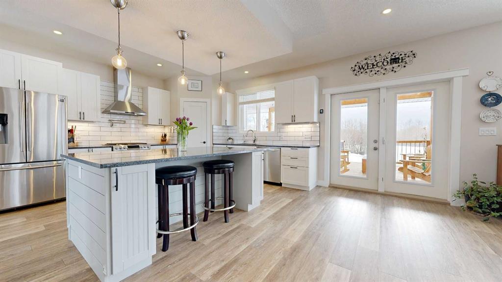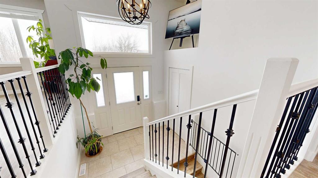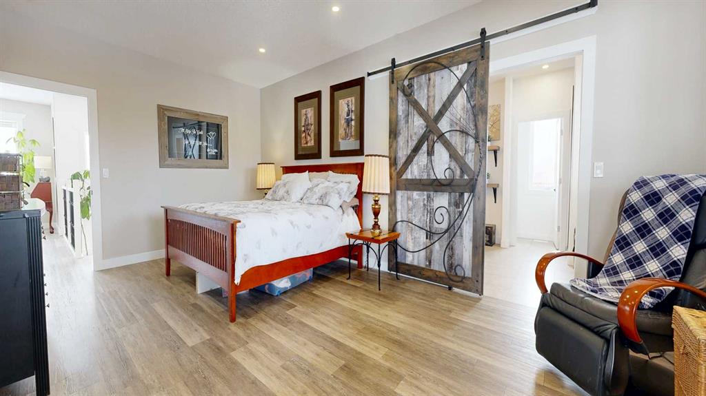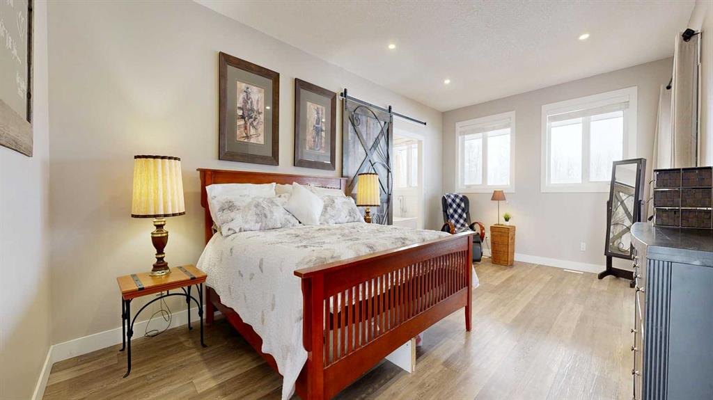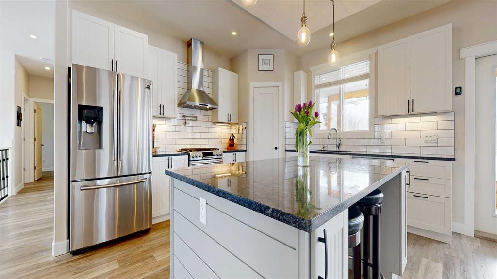 Luxury meets practicality in this one-owner, custom built 2018 home, designed with intention, flow, and everyday comfort in mind. Pulling into your oversized 27x30’ attached garage, you’re welcomed into a spacious entryway, your main floor laundry, and a convenient 3-piece bathroom, keeping everything functional and within reach. Down the hall, you’ll find your primary retreat. The attention to detail stands out immediately with a custom sliding barn door that ties seamlessly into the design of the adjoining rooms. The bedroom itself offers direct access to your covered, south-facing deck (also accessible from the main living area), creating a perfect indoor-outdoor connection. Your 5-piece ensuite features dual sinks, a soaker tub, and a walk-in shower, leading into a thoughtfully designed walk-through closet that loops back to the garage entry. Beyond the primary suite, the home opens into a formal dining space and a beautifully finished kitchen. Granite countertops, carried throughout the entire home, highlight the space, along with a massive island with sit-up seating, a dedicated coffee bar, dual-tone cabinetry, and a corner pantry offering plenty of storage. The kitchen flows effortlessly into the main living room, where a gas fireplace and large south-facing windows fill the space with natural light. Also on the main level are two additional bedrooms and a 4-piece bathroom, offering space for family or guests. Heading toward the front entry, the stairwell leads you to the fully developed lower level. Downstairs, you’ll find three more spacious bedrooms, in-floor heating for year-round comfort, two large living areas that can be utilized to your liking, and another 4-piece bathroom. There’s also plumbing in place for a future wet bar, adding even more potential to the space. Additional features in the home include tankless hot water, reverse osmosis servicing both the kitchen sink and fridge, and central A/C. Step outside to enjoy your private yard, complete with a graveled fire pit area, perfect for relaxing or entertaining. Another amazing feature is the impressive 40x60’ detached shop with a 16x60’ covered lean-to and a fully self-contained 1580 sq.ft. two-storey suite. The shop is built to perform, featuring 200 amp service with a welding plug, in-floor heat, a sump pit, and an overhead door leading directly into the covered lean-to. The mezzanine level is equally well-equipped with both in-floor and radiant heat. For the suite, you’ll find a functional layout starting with a laundry and storage area that leads into a comfortable living space. The main level includes a 3-piece bathroom and a living room that offers plenty of space to unwind, while upstairs you’ll find a large primary bedroom complete with a gas fireplace and a private balcony. The suite also features in-floor heat and its own reverse osmosis. A rare combination of high-end finishings, thoughtful design, and fantastic versatility make for an incredible home. Book your showing today!