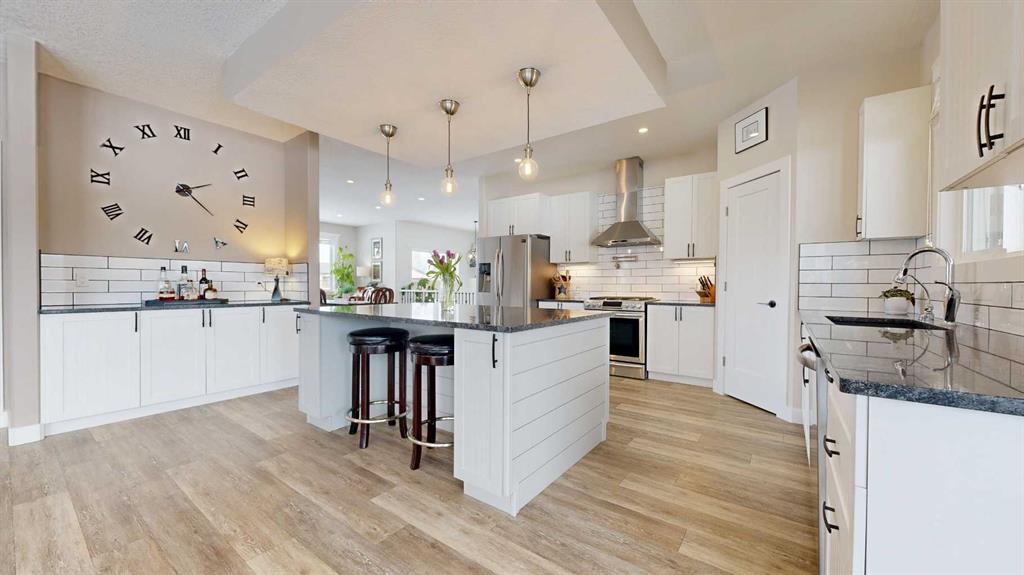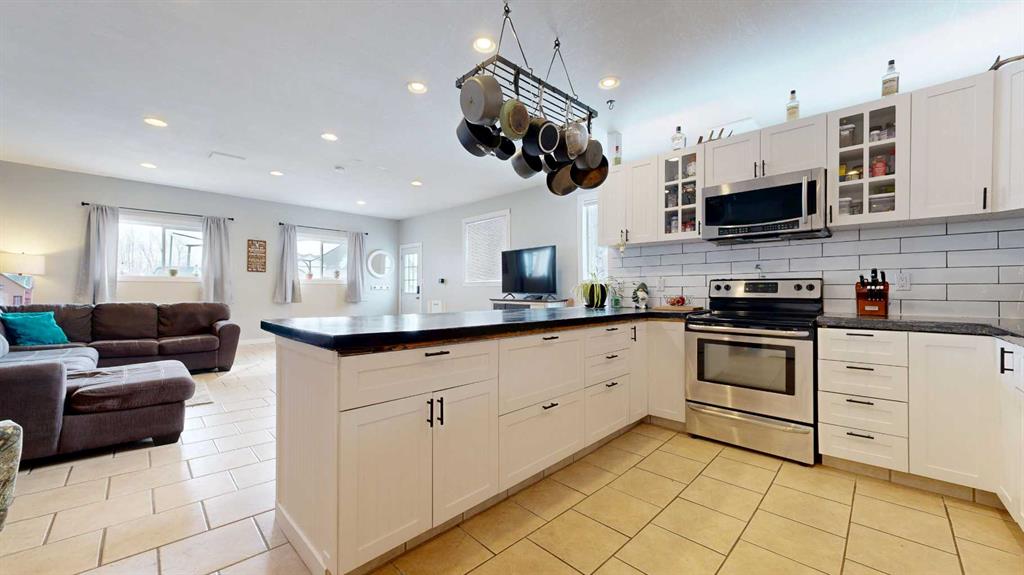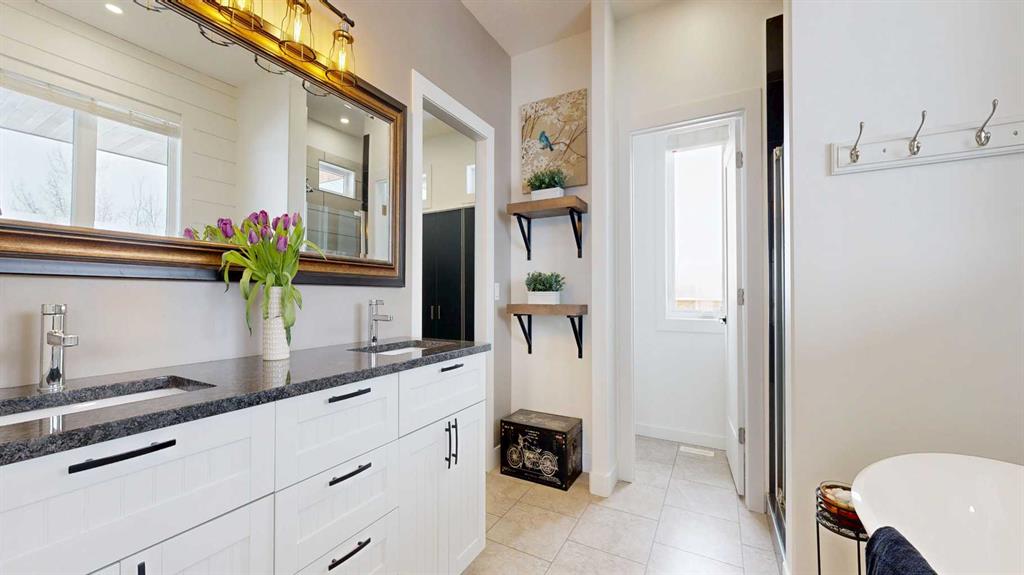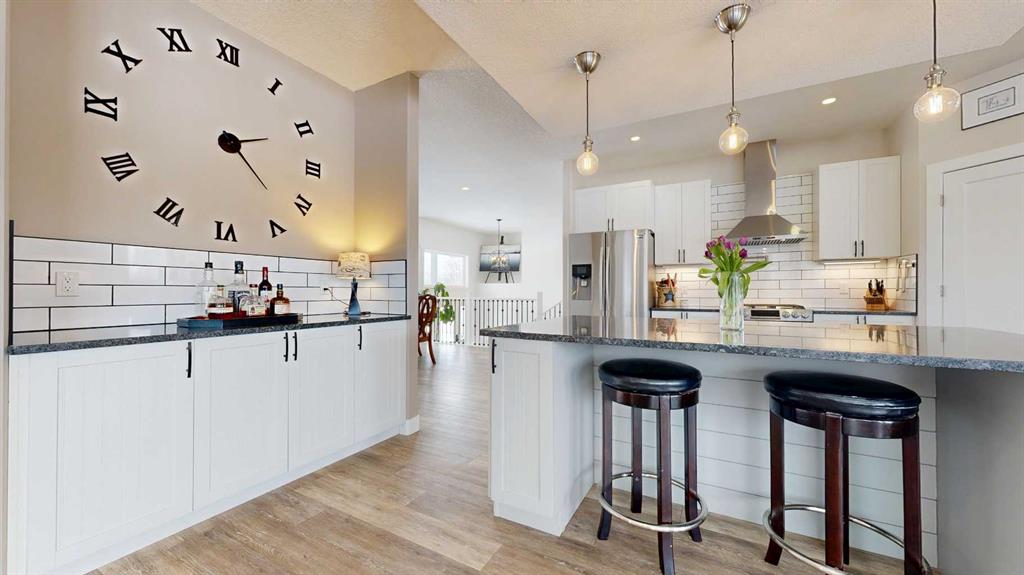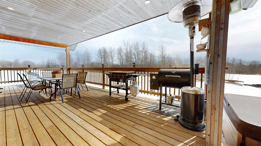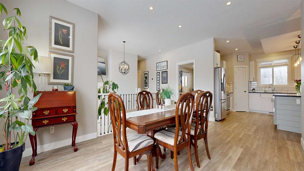 Luxury meets practicality in this one-owner, custom built 2018 home, designed with intention, flow, and everyday comfort in mind. Pulling into your oversized 27x30’ attached garage, you’re welcomed into a spacious entryway, your main floor laundry, and a convenient 3-piece bathroom, keeping everything functional and within reach. Down the hall, you’ll find your primary retreat. The attention to detail stands out immediately with a custom sliding barn door that ties seamlessly into the design of the adjoining rooms. The bedroom itself offers direct access to your covered, south-facing deck (also accessible from the main living area), creating a perfect indoor-outdoor connection. Your 5-piece ensuite features dual sinks, a soaker tub, and a walk-in shower, leading into a thoughtfully designed walk-through closet that loops back to the garage entry. Beyond the primary suite, the home opens into a formal dining space and a beautifully finished kitchen. Granite countertops, carried throughout the entire home, highlight the space, along with a massive island with sit-up seating, a dedicated coffee bar, dual-tone cabinetry, and a corner pantry offering plenty of storage. The kitchen flows effortlessly into the main living room, where a gas fireplace and large south-facing windows fill the space with natural light. Also on the main level are two additional bedrooms and a 4-piece bathroom, offering space for family or guests. Heading toward the front entry, the stairwell leads you to the fully developed lower level. Downstairs, you’ll find three more spacious bedrooms, in-floor heating for year-round comfort, two large living areas that can be utilized to your liking, and another 4-piece bathroom. There’s also plumbing in place for a future wet bar, adding even more potential to the space. Additional features in the home include tankless hot water, reverse osmosis servicing both the kitchen sink and fridge, and central A/C. Step outside to enjoy your private yard, complete with a graveled fire pit area, perfect for relaxing or entertaining. Another amazing feature is the impressive 40x60’ detached shop with a 16x60’ covered lean-to and a fully self-contained 1580 sq.ft. two-storey suite. The shop is built to perform, featuring 200 amp service with a welding plug, in-floor heat, a sump pit, and an overhead door leading directly into the covered lean-to. The mezzanine level is equally well-equipped with both in-floor and radiant heat. For the suite, you’ll find a functional layout starting with a laundry and storage area that leads into a comfortable living space. The main level includes a 3-piece bathroom and a living room that offers plenty of space to unwind, while upstairs you’ll find a large primary bedroom complete with a gas fireplace and a private balcony. The suite also features in-floor heat and its own reverse osmosis. A rare combination of high-end finishings, thoughtful design, and fantastic versatility make for an incredible home. Book your showing today!