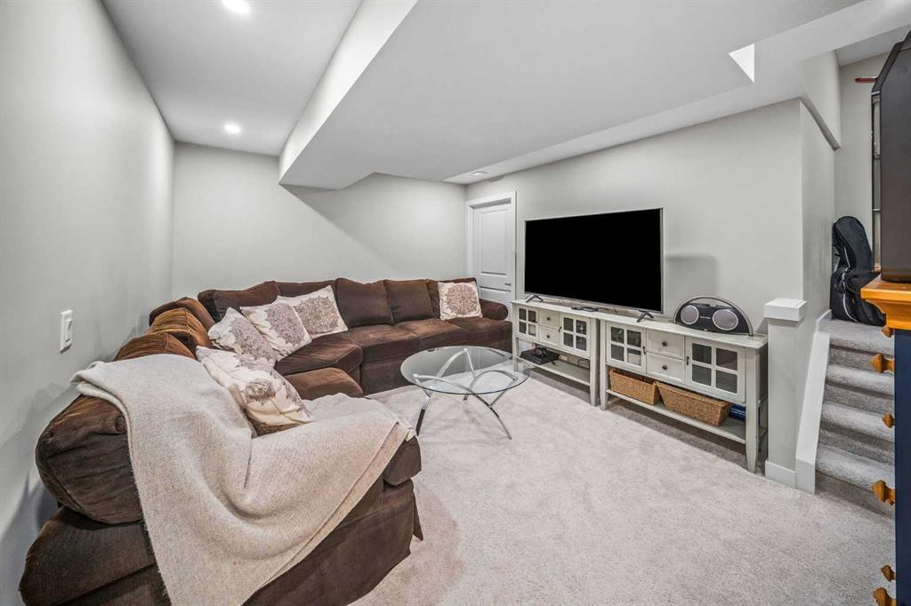 Discover elevated living in the prestigious & established community of Crestmont. Perfectly positioned in the heart of the complex, your private retreat overlooks a tranquil garden courtyard—the ideal backdrop for a morning coffee on the bench. This exceptional two-storey townhome perfectly blends a low-maintenance lifestyle with 10-foot ceilings and larger windows. Boasting 4 spacious bedrooms and 3.5 bathrooms, this home is thoughtfully designed with a fully finished basement and the comfort of A/C. Complete with a finished double attached garage, it offers the space of a detached house with the ease of condo living . Boasting 2,023 sq. ft. of thoughtfully designed living space, this beauty welcomes you with an inviting foyer, and an open-concept main floor that is ideal for both entertaining and everyday living, seamlessly connecting the living and dining areas to create a warm and functional gathering space. The well-appointed kitchen showcases a large quartz island and countertops, soft-close cabinetry with abundant storage, a built-in microwave, Bosch dishwasher, fridge with waterline and an electric stove (there is a gas line for a future upgrade to gas stove)—perfect for both casual meals and hosting guests. A gas line for BBQ is also located just outside the front door. A conveniently located half bath and direct access to the double attached garage along with a utility closet and shoe closet complete the main level. Upstairs, a bright and versatile nook for a home office or sitting area complements the wide hallways. The spacious primary bedroom comfortably accommodates a king-sized bed and features a private covered balcony with mountain views, a walk-in closet, and a 4 piece ensuite with dual quartz vanities. This level also includes a dedicated laundry room, a full 4-piece bathroom, and two additional bedrooms, each offering walk-in closets and large windows that fill the space with natural light. The fully developed lower level is ideal for a growing family or accommodating guests, offering a large recreation area with ample storage, a spacious fourth bedroom with built-in features in the walk-in closet, and a 4-piece bathroom with in-floor heating. Residents of Crestmont enjoy convenient access to an array of amenities, including nearby shopping at the Calgary Farmers' Market West, Calgary Climbing Centre, COP, Valley Ridge Golf course, outdoor recreation along the Bow River pathways, and proximity to destinations such as Canmore and Banff. The community itself offers a variety of exclusive amenities, including parks, playgrounds, walking and biking paths, a spray park, and Crestmont Hall.
