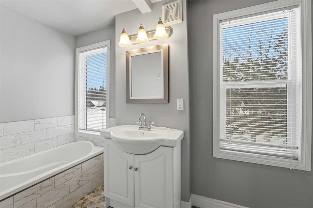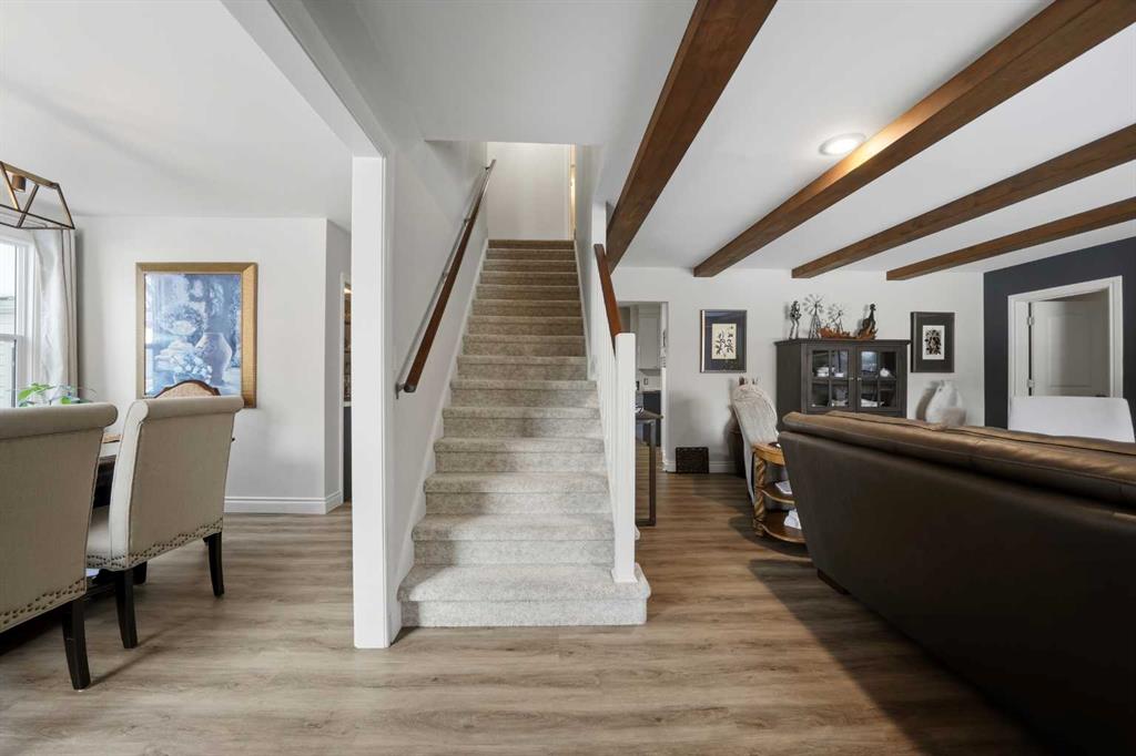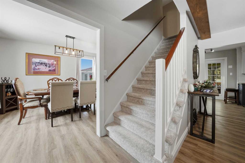 Step into a rare blend of ~TIMELESS CHARACTER and MODERN LUXURY~ in this beautifully renovated 1950s home. Featuring three spacious bedrooms and 2.5 stylish bathrooms, this residence has been thoughtfully updated while preserving the WARMTH and CHARM that make mid century homes so special. The attached garage adds everyday convenience, while the expansive WEST-FACING backyard is truly a standout-soaking in golden afternoon light and offering exceptional space for RV parking, children's playhouses, outdoor entertaining, or future possibilities limited only by your imagination. This is where old time charm meets contemporary beauty, perfectly situated in one of the city's most desirable and picturesque locations! The upstairs features 2 spacious bedrooms and a spa like stylish 4-piece bathroom. The incredible main floor boasts beamed ceilings in the living room, electric fireplace with NEW MANTLE and feature wall, a built-in coffee/bar station, a large formal dining room, 2-piece powder room, laundry room, and a beautiful farmhouse kitchen. One of the standout features of this home is the EXCEPTIONALLY LARGE THREE-SEASON ROOM, bathed in abundant natural light. With its cozy heated space it’s the perfect year-round retreat, with warmth and comfort of an indoor room while still letting you enjoy the beauty of the out doors, seamlessly extending from the kitchen, it creates a natural flow into the backyard, allowing for easy indoor-outdoor living. Weather hosting family gatherings, enjoying a quiet meal or curling up with a good book, this space offers functionality and serenity. Also on the main floor is a luxurious spacious primary bedroom, with his/her closet space, and a beautiful 4-piece bath, featuring a SOAKER TUB! The favorite space of all, is the large flex room/family room that features a stand-alone gas stove fireplace, an incredible room for the entire family to enjoy. This spacious retreat provides exceptional VERSATILITY, whether you choose to use it as a family room, home office, entertainment area (or a FOURTH BEDROOM) Its generous size ensures it comfortably accommodates the needs of everyone in the family, enhancing the overall space and flow of the home. Other features include: 3-year-old HWT, ALL newer flooring, carpet and luxury vinyl plank, LED lighting, painted, RI plumbing for future basement bath. Garage is heated, insulated, and includes a 30-amp breaker. The basement is undeveloped and awaiting your personal ideas and imagination.