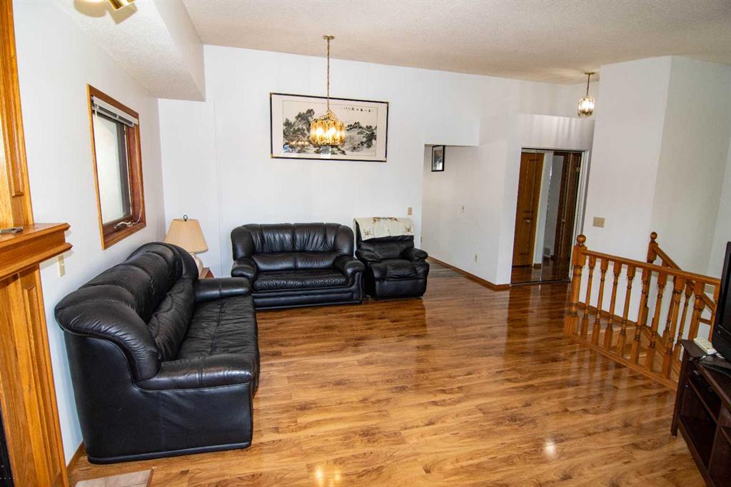 Nestled in the heart of the desirable Sandstone area, this well-maintained bi-level home boasts a warm and inviting layout perfect for the family . The cozy family room features a wood burning fireplace, that's sure to become a favorite gathering spot. The spacious kitchen is equipped with oak cabinets and offer direct access to the private deck, where you can enjoy the afternoon sun. The south facing backyard is a lovely spot to relax, The upstairs level features three generous bedrooms, including a bright master bedroom with an ensuite and a full bedroom, additional features include a front drive double garage, and recent upgardes such as a new furnace ( 2016), water tank (2020), roof (2025), and luxury vinyl plank flooring in the kitchen and front foyer ( 2026). The enire house has been freshly painted (2026). All Poly -B has been removed from the property ( 2026). The lower level offers laundry facilities and an unfinished area provides outstanding flexibility , develop it later to suit your needs. This home is conveniently located within walking distance to Public and Catholic elementary schools, tennis courts, and an outdoor skating rink, with easy access to major routes, shopping, and amentities.