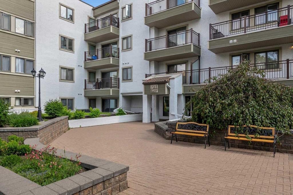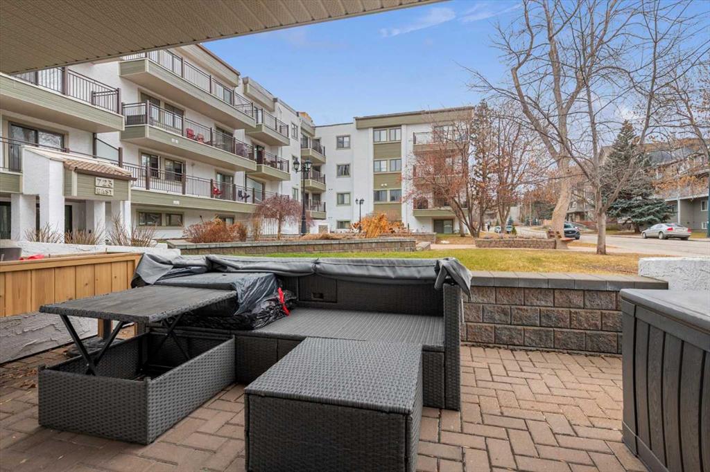 Well-maintained and thoughtfully updated Adult living 40+ building, this main floor 2-bedroom unit in Windsor Park offers comfortable living in a highly convenient location. The home features updated flooring and lighting, along with a refreshed kitchen complete with stainless steel appliances. The bathroom has also been updated with modern fixtures and includes a relaxing jacuzzi tub. Over the years, additional improvements include interior doors, trim, and electrical updates. The unit offers the added convenience of in-suite laundry and extra storage. As an end unit with no neighbours on either side, it offers added privacy along with a side window off the dining area that creates a natural cross-breeze—helping keep the space comfortable during warmer months. The covered exposure over the patio provides some welcome shade for those hot summer days. An assigned parking stall is included. Ideally located just steps to transit with quick access to downtown, and close to Chinook Centre, the LRT, grocery stores, and everyday amenities, this is a highly walkable and accessible location. The building has undergone ongoing exterior improvements and shows pride of ownership throughout, with a strong reserve fund in place. A great opportunity for those seeking value in an established central community. Quiet building. Non-smoking home. No pets permitted. Below grade on main level, vacant and easy to show. Flexible possession.