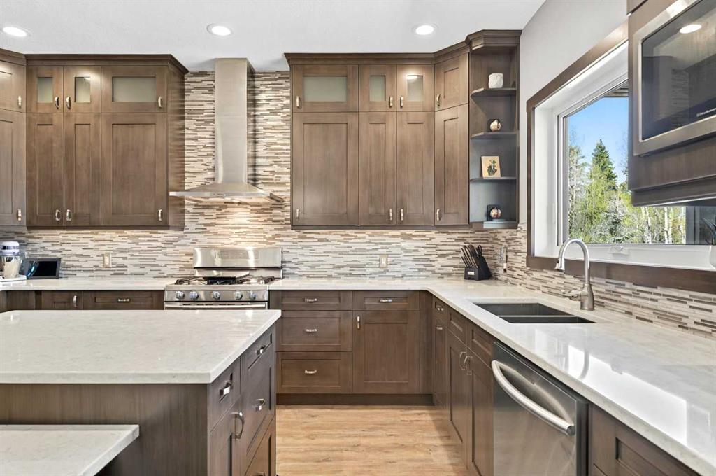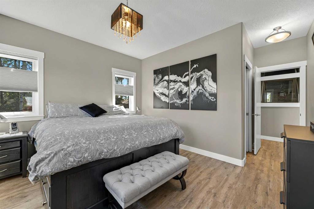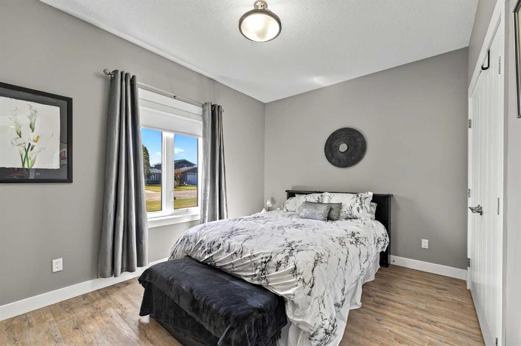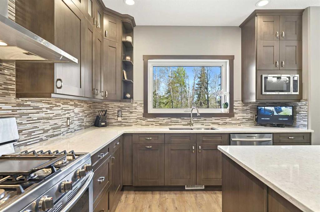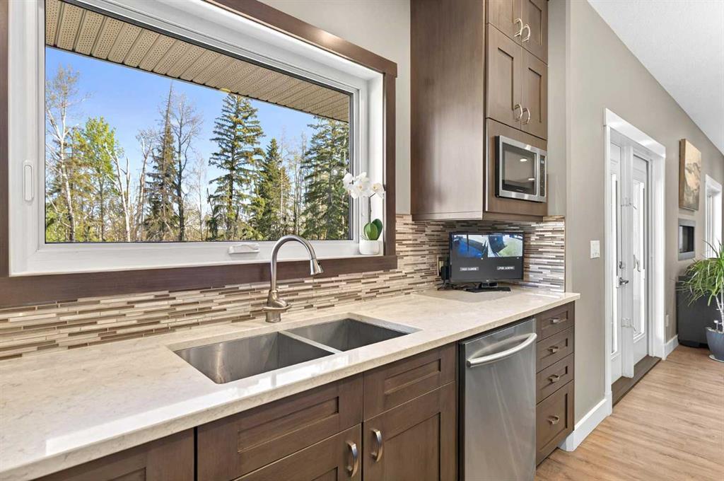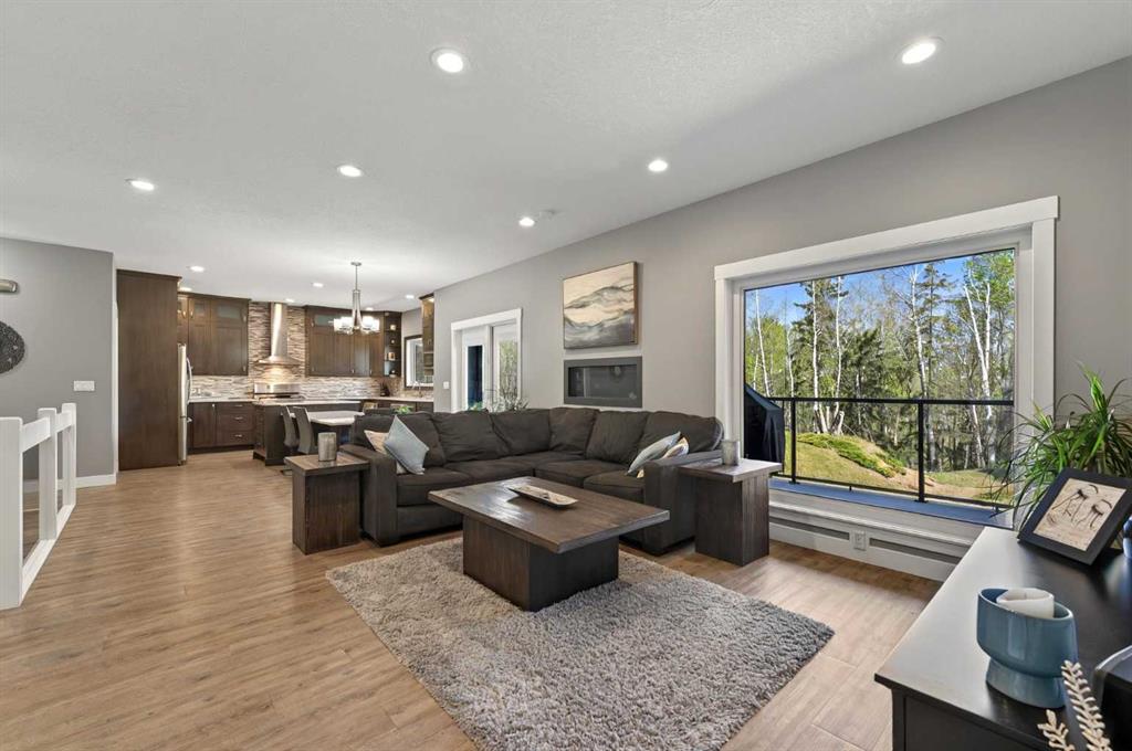 This home is an exquisite custom built 2015 1.5 storey home with walk out basement will drop your jaw to the floor! Located in the beautiful area of Sakwatamau drive, you have an acreage like feel with your .49 acre park lot. The exterior has a modern vibe with high end features that make it stand out above the rest. Built with ICF block form which keeps it cool in the summer, warm in the winter & matched with the triple pane windows, your utilities affordable. You are welcomed by a beautiful exposed driveway, matched to the retaining walls in the backyard. There is a stamped concrete porch attached, with a custom 8ft stunning front door. Walking in, you have a beautiful landscape of your living room, and eat-in kitchen with a view to your covered low maintenance deck and treed yard. The kitchen is beautiful with gas range, extra cabinetry, additional plugs in the island and a stunning built in quartz countertop as a dining table and the large pantry that provides so much extra storage. The primary suite is one of the most functional around. You have a door to the covered deck to enjoy your morning coffee, the ensuite has 2 separate areas to get ready for your day, and also a grand tiled shower with glass doors. The ensuite walks through to the walk-in closet of your dreams-WOW.. and follows through directly into your laundry room and again through to your mudroom! The flow is natural and so worth it! This home provides a loft or 1/2 storey upstairs that is the perfect bedroom for a teenage/ or rec space (663 total sq ft up there). It is sound proofed and has a walk-in closet, and 3-pc bath. The basement is fully finished with infloor heat and provides an incredible space for entertaining and guests! You are greeted by a grand wet bar, music room that is sound proofed that can also double as a huge bedroom, living space and the eye catching double sided fireplace that goes inside and outside. The hot tub on the lower level also stays and has wiring complete for a TV to watch the game while you relax! One more bedroom , & large 3pc bathroom completes the basement. There is built-in surround sound and 4 different sonos speakers in this home which means you can play 4 different genres of music (exterior, garage, primary bedroom and upstairs 3-pc bathroom). The triple car garage is 31X32 and offers a garage door out to the back yard, such a neat feature! If that wasn't enough, please make sure to check out the full feature sheet with your realtor with all the custom extras, including hot/cold taps,"hide a hose 50ft Vaccuum", hot water on demand, AC, triple pane windows.. the list goes on!