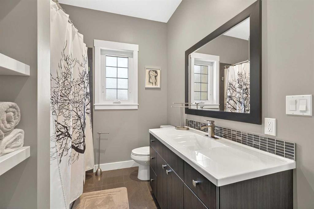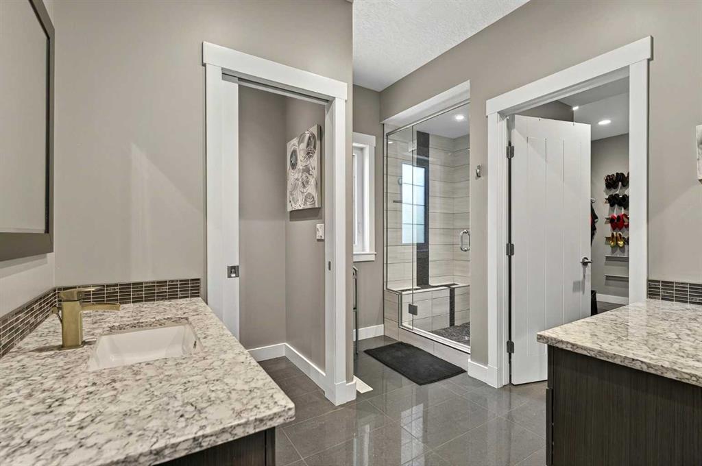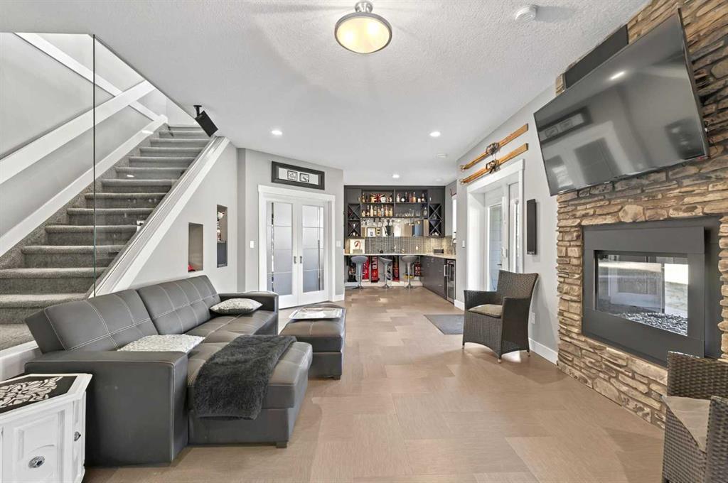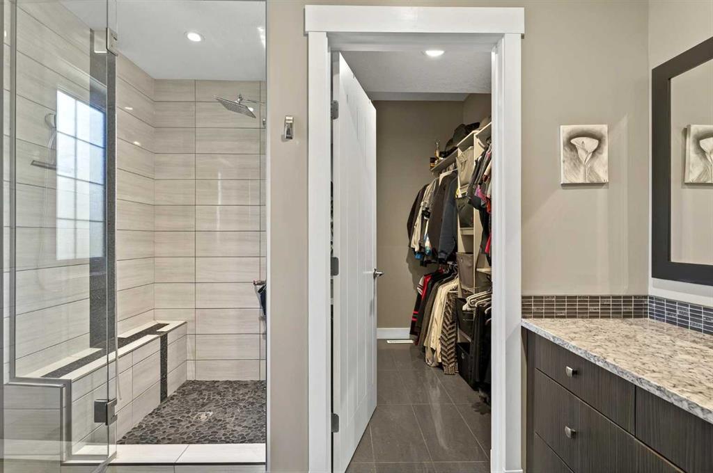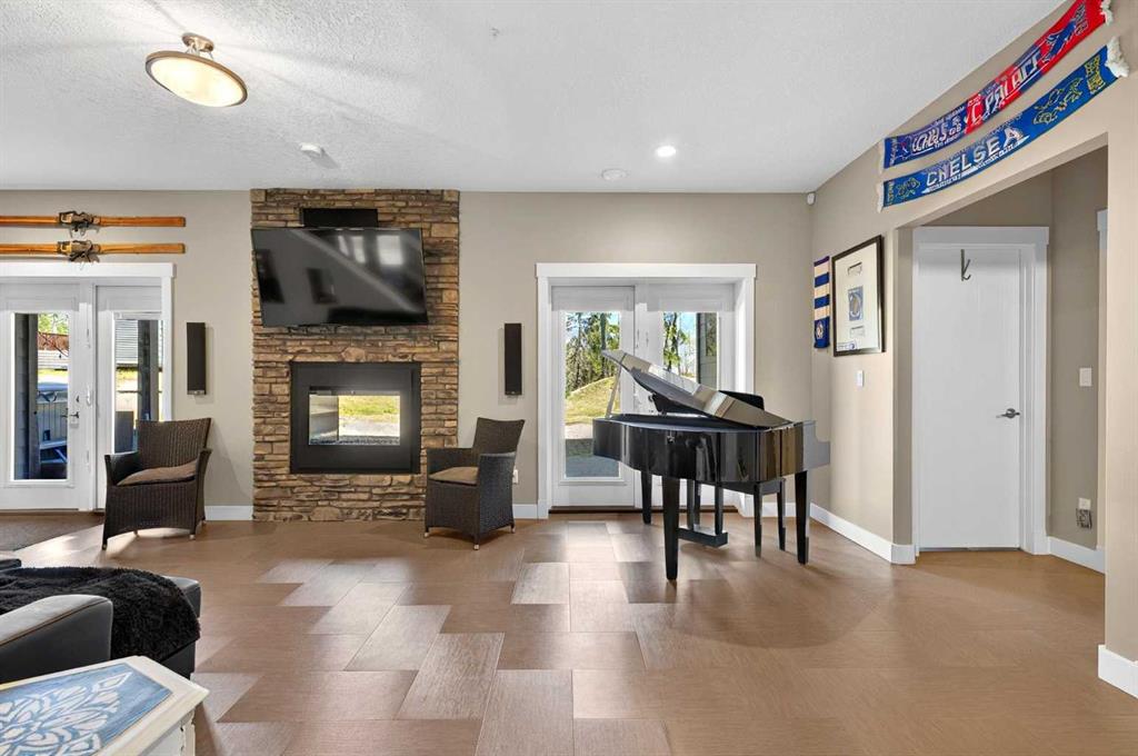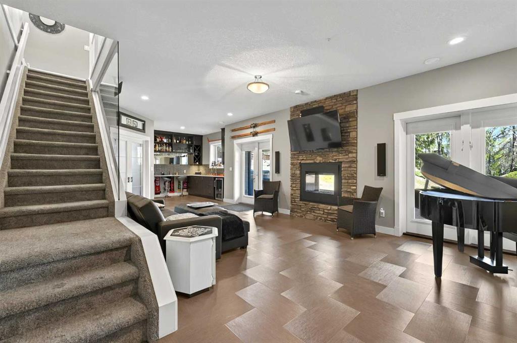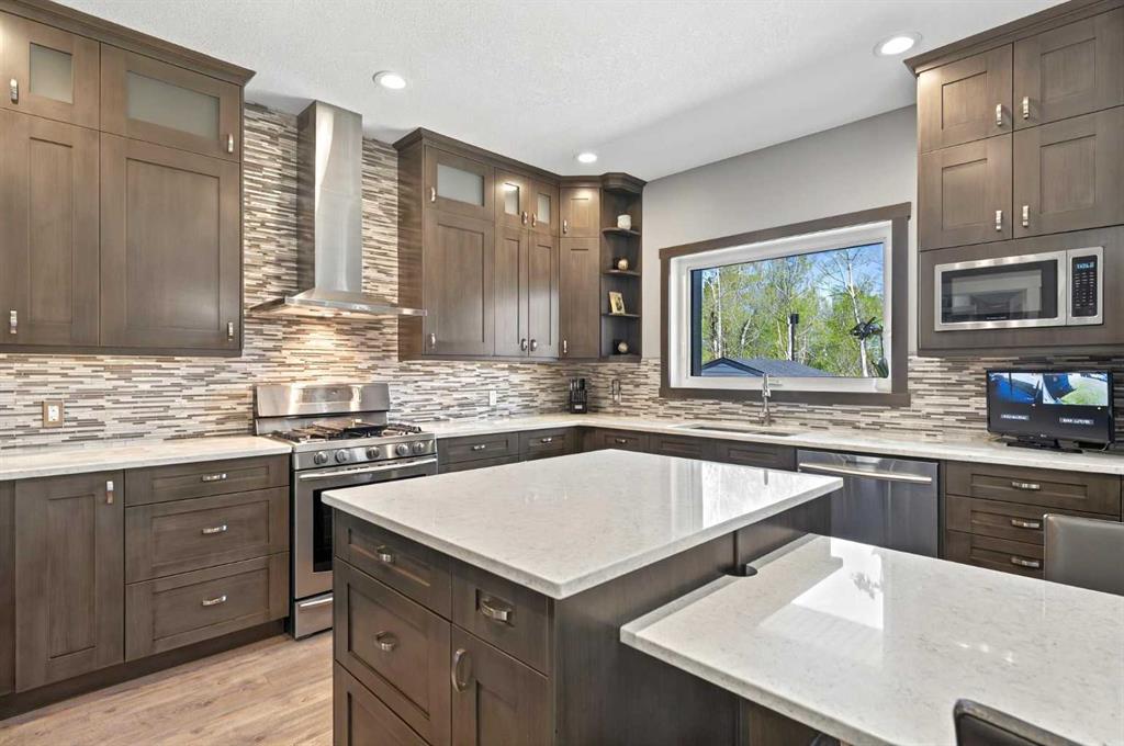 This home is an exquisite custom built 2015 1.5 storey home with walk out basement will drop your jaw to the floor! Located in the beautiful area of Sakwatamau drive, you have an acreage like feel with your .49 acre park lot. The exterior has a modern vibe with high end features that make it stand out above the rest. Built with ICF block form which keeps it cool in the summer, warm in the winter & matched with the triple pane windows, your utilities affordable. You are welcomed by a beautiful exposed driveway, matched to the retaining walls in the backyard. There is a stamped concrete porch attached, with a custom 8ft stunning front door. Walking in, you have a beautiful landscape of your living room, and eat-in kitchen with a view to your covered low maintenance deck and treed yard. The kitchen is beautiful with gas range, extra cabinetry, additional plugs in the island and a stunning built in quartz countertop as a dining table and the large pantry that provides so much extra storage. The primary suite is one of the most functional around. You have a door to the covered deck to enjoy your morning coffee, the ensuite has 2 separate areas to get ready for your day, and also a grand tiled shower with glass doors. The ensuite walks through to the walk-in closet of your dreams-WOW.. and follows through directly into your laundry room and again through to your mudroom! The flow is natural and so worth it! This home provides a loft or 1/2 storey upstairs that is the perfect bedroom for a teenage/ or rec space (663 total sq ft up there). It is sound proofed and has a walk-in closet, and 3-pc bath. The basement is fully finished with infloor heat and provides an incredible space for entertaining and guests! You are greeted by a grand wet bar, music room that is sound proofed that can also double as a huge bedroom, living space and the eye catching double sided fireplace that goes inside and outside. The hot tub on the lower level also stays and has wiring complete for a TV to watch the game while you relax! One more bedroom , & large 3pc bathroom completes the basement. There is built-in surround sound and 4 different sonos speakers in this home which means you can play 4 different genres of music (exterior, garage, primary bedroom and upstairs 3-pc bathroom). The triple car garage is 31X32 and offers a garage door out to the back yard, such a neat feature! If that wasn't enough, please make sure to check out the full feature sheet with your realtor with all the custom extras, including hot/cold taps,"hide a hose 50ft Vaccuum", hot water on demand, AC, triple pane windows.. the list goes on!