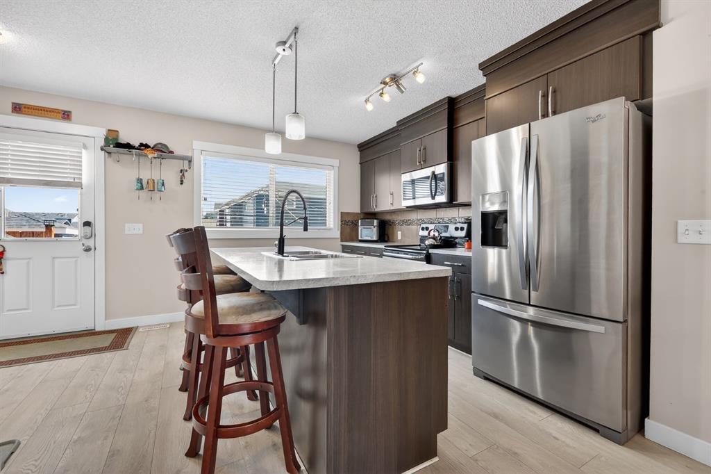 If you’ve been looking for an affordable, move-in-ready home in one of Cochrane’s most family-friendly neighbourhoods — this one deserves a look. Located directly across from two schools and just minutes from all the great amenities Fireside has to offer, this 3-bedroom, 2 full bath, 2 half bath FREEHOLD TOWNHOUSE (no condo fees!) is the perfect fit for a young family, first-time buyer, or investor looking for a solid opportunity. Step inside and you’ll immediately notice the bright, open floor plan that makes everyday living feel comfortable and easy. The island kitchen features stainless steel appliances, plenty of cabinet space, and a layout that flows perfectly into the main living and dining area — ideal for both busy mornings and relaxed evenings at home. Upstairs offers three bedrooms, including a spacious primary suite with its own private 3-piece ensuite and walk in closet. The second full 4-piece bathroom upstairs makes this layout especially practical for families or guests. The fully developed basement adds even more usable space, complete with an additional 2-piece bathroom — perfect for a rec room, play area, home office, or media space. Brand new H/W tank, washer and dryer in 2025. Out back, you’ll find a fenced yard with a two-tiered deck that’s ready for summer evenings, plus a convenient parking pad off the back lane. This home is currently rented to a great tenant, making it an excellent option for investors. Immediate possession is available if assuming the tenant, or possession can be arranged for June 1 if you’re planning to move in yourself. In excellent condition, in a fantastic location, and offering great value — this is the kind of home that doesn’t stay on the market for long. Come take a look and see why so many families love calling Fireside home.