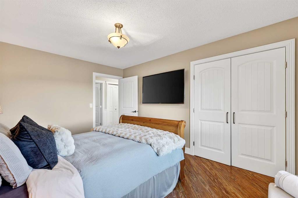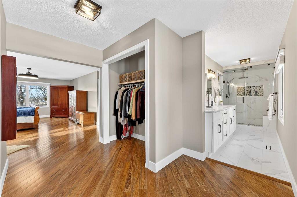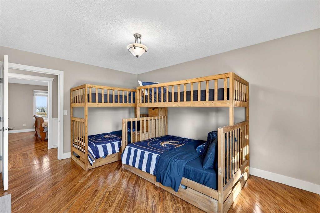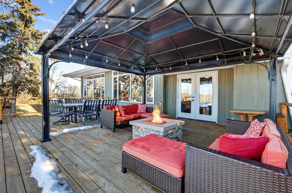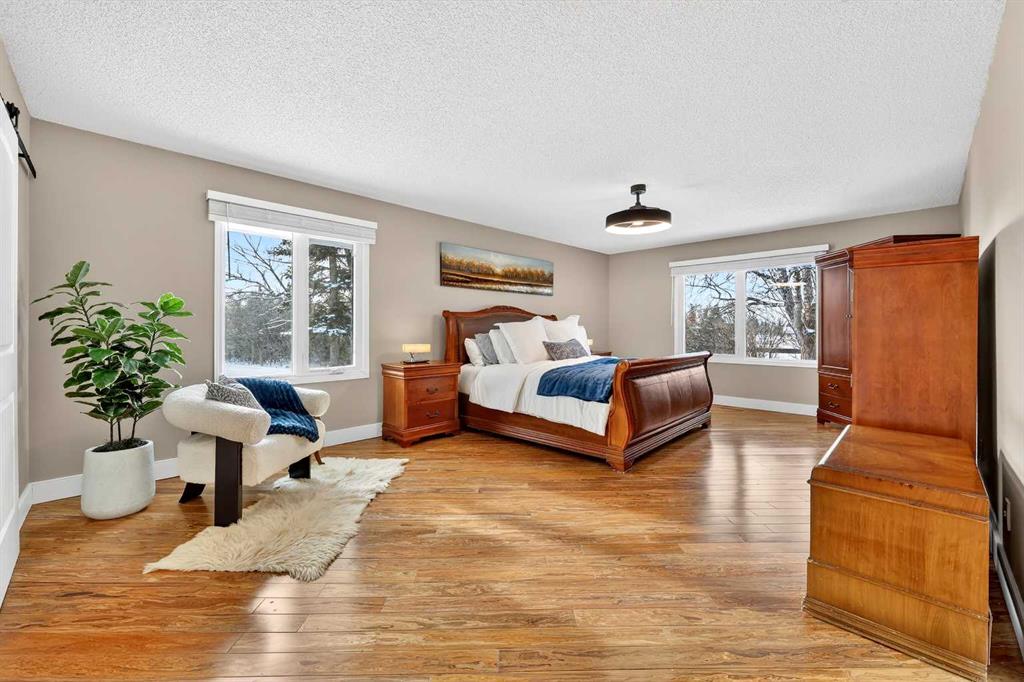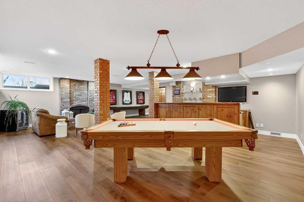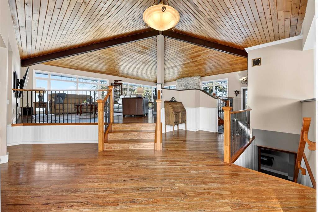 Welcome to an exceptional lifestyle property in the sought-after Red Deer Lake area, just minutes from Spruce Meadows and a short 5 minute drive to the amenities of Calgary. This beautifully maintained ranch-style home offers the perfect balance of peaceful country living and everyday convenience, making it ideal for families, professionals, and anyone seeking space, privacy, and long-term value. Designed for both comfort and functionality, the main level features four spacious bedrooms, including a private primary retreat with a spa-inspired ensuite complete with rain shower and generous walk-in closet. Thoughtful finishes such as hardwood flooring, vaulted ceilings, and quality fixtures create a warm yet refined atmosphere throughout the main living spaces. The bright, open layout connects the upgraded kitchen, dining area, and living room, making it equally suited for entertaining or relaxed daily living. The freshly updated lower level expands your lifestyle possibilities with luxury vinyl plank flooring, a full bathroom, wet bar, games area, hobby room, and extensive storage including a cold room and wine cellar, ideal for entertaining, recreation, or multigenerational flexibility. Outdoors, the property truly shines as a private retreat. Enjoy gorgeous mountain views, a semi-inground gas-heated pool, multiple patios, a gazebo with fire pit, low-maintenance landscaping, and plenty of room for play, gatherings, or quiet evenings under the sky with the Rocky Mountains as your backdrop! Families will appreciate the dedicated play structure and even a covered school bus shelter at the driveway for added convenience. Car enthusiasts, hobbyists, or business owners will recognize the exceptional value of the heated oversized triple garage with epoxy floors and workspace, plus a separate single garage perfect for equipment, storage, or projects. A renovated mudroom with lockers and direct garage access keeps daily life organized and efficient. Set in a tranquil setting only minutes to groceries, medical services, and daily essentials, this property delivers the rare combination of rural serenity, functional space, and city accessibility. With extensive upgrades already completed and pride of ownership evident throughout, this is more than a home… it’s a lifestyle opportunity in one of the region’s most desirable country residential communities.