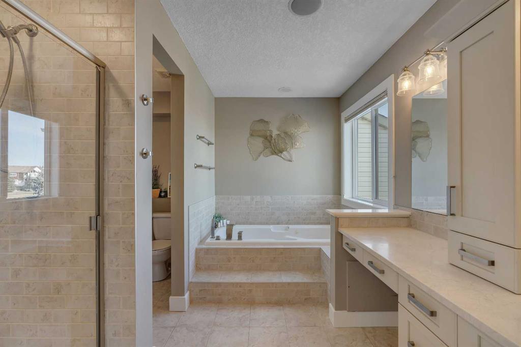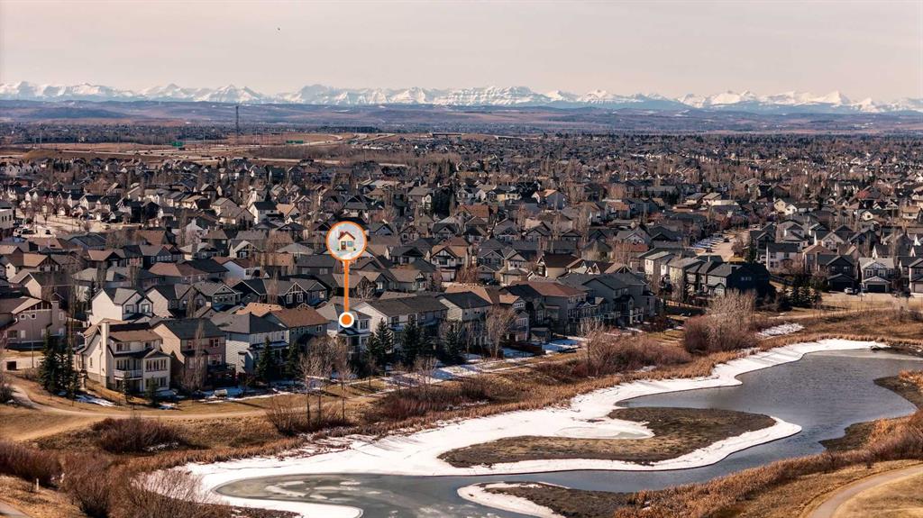 Beautiful 2-storey walkout backing onto the pond with a legal basement suite! This home is immaculate and thoughtfully designed to take full advantage of the view, with expansive windows that fill the space with natural light. The main floor features a spacious foyer, a convenient flex room/office, and an open-concept layout with a large living room complete with a gas fireplace and built-ins. The kitchen offers stainless steel appliances, a newer dishwasher, gas stove, granite countertops, and a breakfast bar. The sizeable dining area accommodates a full family table and overlooks the pond. You’ll also appreciate the walkthrough pantry, along with a stylish mudroom and laundry area just off the kitchen. Upstairs, the primary bedroom offers a comfortable retreat with a spacious ensuite featuring a separate shower and jetted soaker tub, walk-in closet and a seating nook. The additional bedrooms are both generously sized and share the main bathroom. The walkout basement includes a legal suite with two bedrooms, a full kitchen, living room, separate laundry and plenty of natural light. Outdoor living is exceptional in this home with both covered and uncovered patio spaces overlooking the pond. Enjoy year-round access to walking paths, plus a playground just across the water. The home is within walking distance to schools and offers quick access to Deerfoot and Stoney Trail. Other updates and features include air conditioning, new light fixtures throughout, new siding and roof (2022), updated hot water tank and 2 furnaces. Move in and enjoy everything this home and location has to offer!