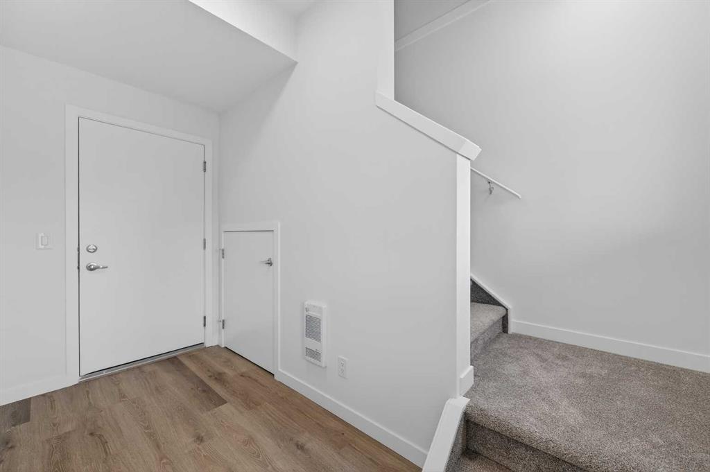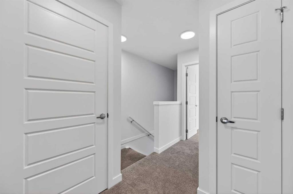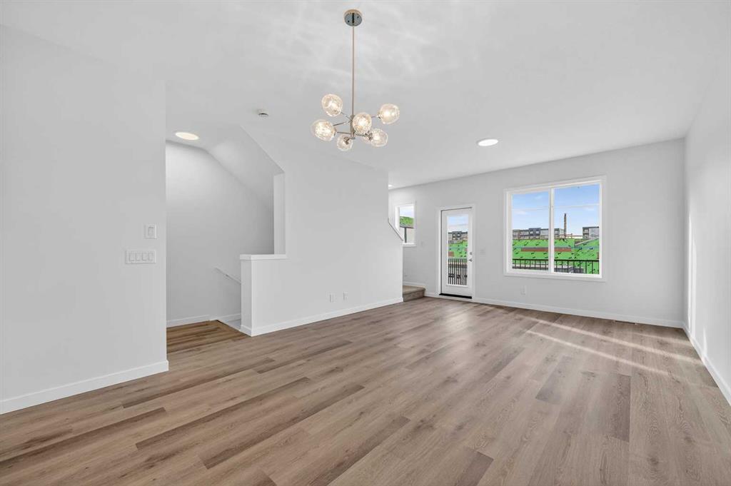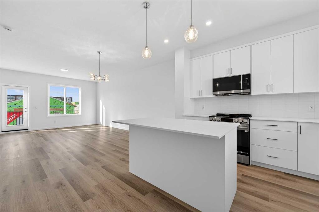 OPEN HOUSE on Saturday and Sunday from 12-5pm. Please go to the show home located at 101, 28 Red Embers Plaza NE for access. StreetSide proudly presents this exceptionally popular interior-unit townhome, where expansive living areas meet modern comforts and sophisticated finishes. The thoughtfully designed floorplan features three spacious upper-level bedrooms and two and a half well appointed bathrooms, complemented by a versatile lower-level den perfect for a home office or quiet retreat. The heart of the home is an inviting open-concept main floor, anchored by a large gourmet kitchen featuring a functional breakfast bar for casual dining. This bright living space transitions seamlessly to a private balcony, offering a perfect setting for outdoor relaxation. The interior showcases high end craftsmanship, including modern white slab-style cabinetry with a full bank of drawers for maximum storage. The kitchen is further elevated by polished white quartz countertops and a full suite of premium stainless steel appliances. Durable luxury vinyl flooring runs throughout the primary living areas, while the stairs and upper level are finished with plush carpet over an 8lb underlay for superior comfort. Additional conveniences include an attached double car garage, professionally maintained landscaping, and a lifestyle defined by maintenance free living. Located within Redstone Square this home places you at the heart of the dynamic Redstone neighborhood. Enjoy the ease of a convenient location with quick access to major routes, including Stoney Trail, ensuring you are never far from the city's best. The community is strategically positioned near future commercial developments, promising shops, services, dining, and entertainment options just moments from your doorstep.