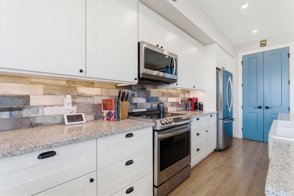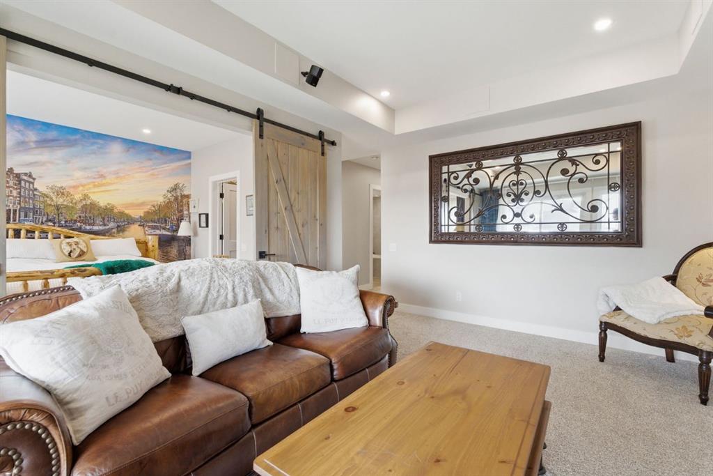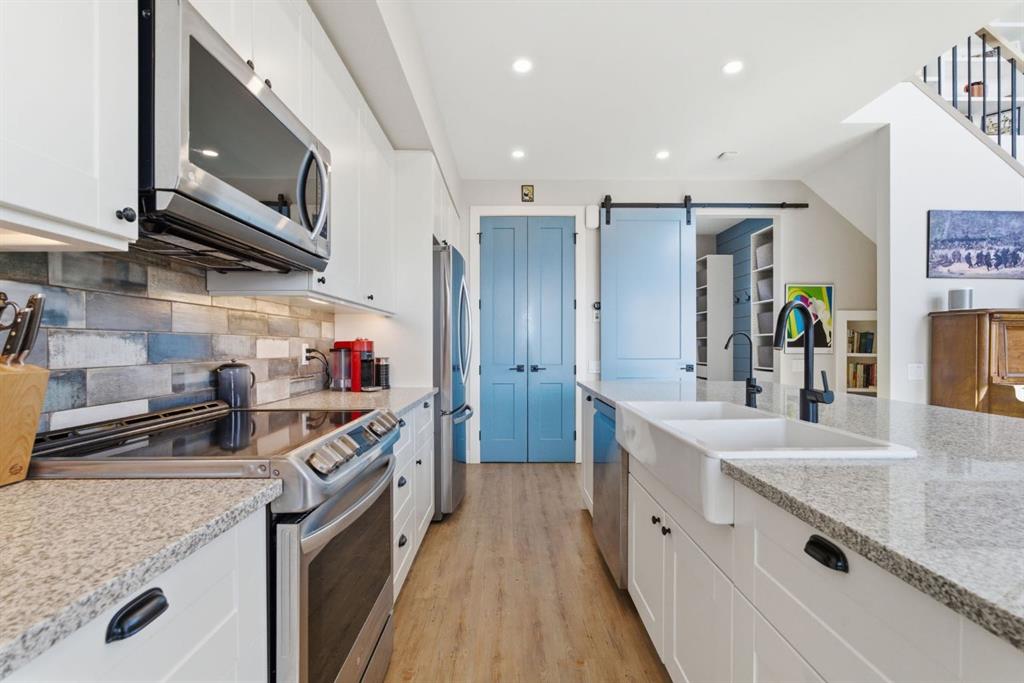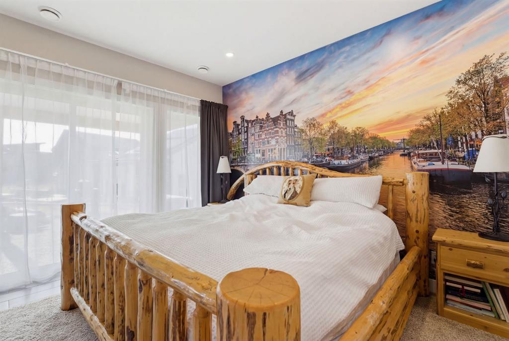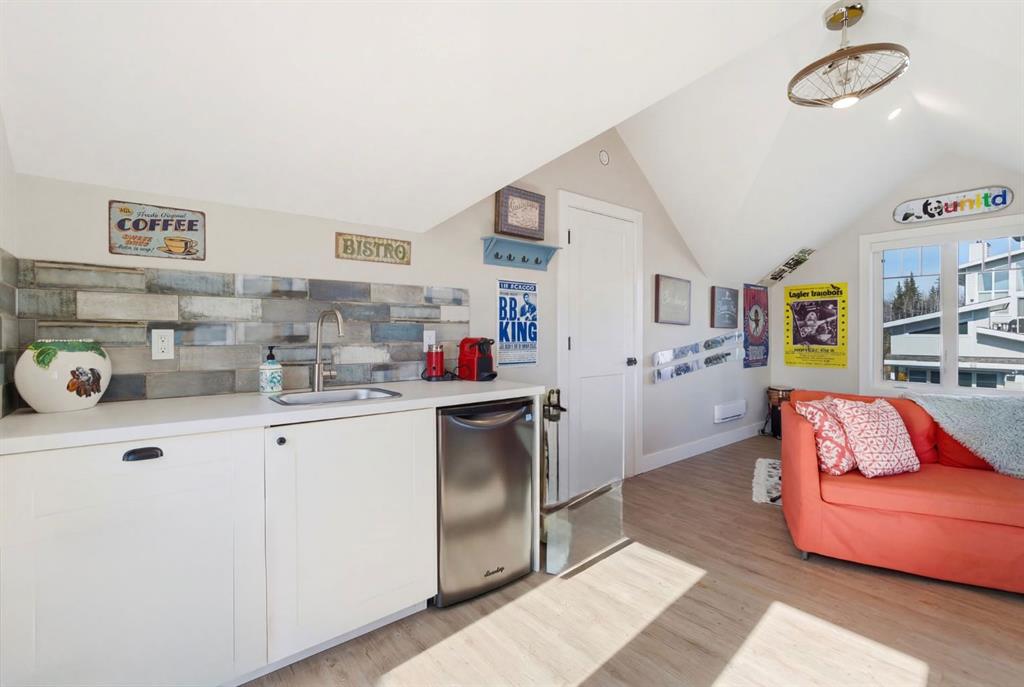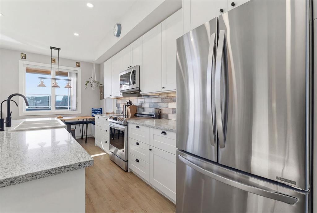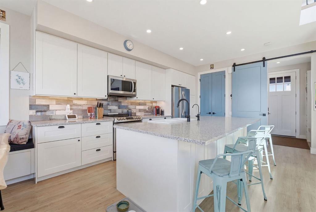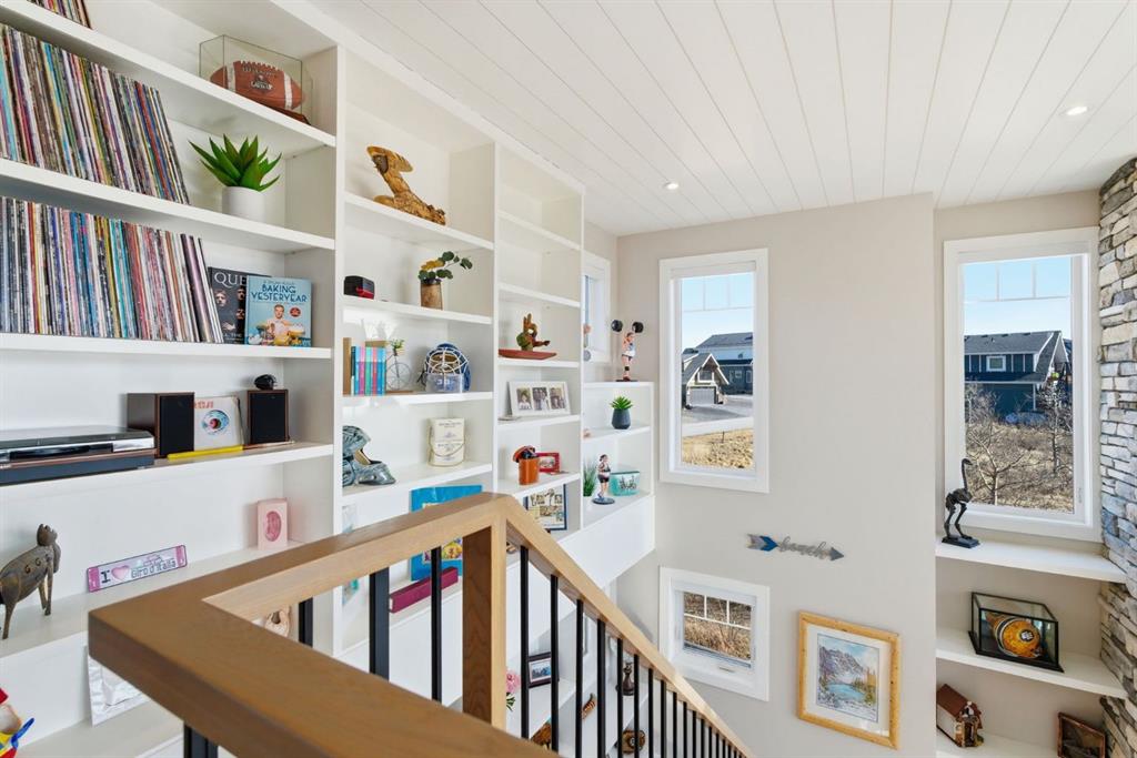 Welcome to CottageClub at Ghost Lake—where lake living meets mountain views and every day feels like an escape. Just minutes from Cochrane and an easy drive from Calgary, this vibrant, amenity-rich community offers the perfect balance of weekend retreat and full-time living. Built by Aura Quality Homes, this fully finished 1.5-storey walkout offers 2,293 of total living space and has been thoughtfully designed—offering flexibility, and highly elevated finishes throughout. Step inside and you’re immediately welcomed by an inviting entry with custom storage solutions and a stylish 2-piece bath. The heart of the home is the open-concept main living area, with soaring two-storey ceilings, a wood-burning stone fireplace with copper insert, and custom built-ins, adding both character and function. The kitchen is nothing short of impressive where attention to detail shines—from soft-close cabinetry and a stone backsplash to the oversized granite island with farmhouse sink. Added features such as a water filtration system and extensive storage space elevate both comfort and convenience. Shiplap detailing and expansive triple-pane windows bring in natural light while framing the incredible views beyond. The dining area features built-in bench seating with storage—perfect for gathering with family and friends. Step outside onto the expansive full-width deck, complete with stairs leading to the yard, creating a seamless indoor-outdoor lifestyle. Upstairs, you’ll find two versatile spaces—one is a perfect bedroom with a large walk-in closet and another ideal as a 2nd bedroom or home office—along with a 3-piece bath. A private balcony off the upper level offers a quiet place to take in the panoramic lake and mountain views. The walkout lower level is dedicated to the primary retreat, designed for relaxation with a spacious bedroom, walk-in closet, and a luxurious spa inspired 5-piece ensuite featuring in-floor heating and a glass steam shower. Barn doors allow you to create separation or maintain an open feel with a large family room. Patio doors lead directly outside, further connecting you to the natural surroundings. Laundry and additional storage complete this level. Above the double heated garage, is a bunk house with a 3-piece bath offering incredible flexibility—perfect for teens, guests, extended family, or a private workspace. This home is also equipped for modern living with smart home features, integrated network wiring, and an energy-efficient Mitsubishi Zuba heat pump providing both heating and cooling year-round. Just steps from the clubhouse, and lake access, making its location truly one of the best in the community. CottageClub is a unique community offering an unmatched lifestyle—complete with a private beach, lake access, sport courts, and walking paths. The recreation centre features a gym, indoor pool, hot tub, and library. Whether you’re looking for a weekend getaway or a full-time home, this is your opportunity to experience lake living at its finest.