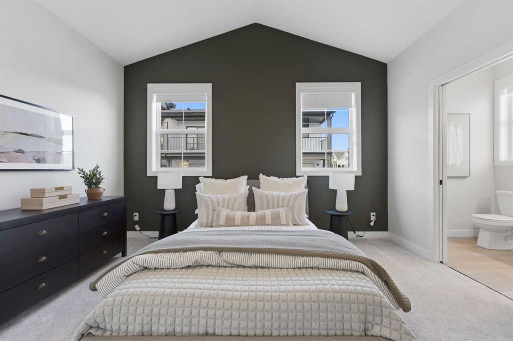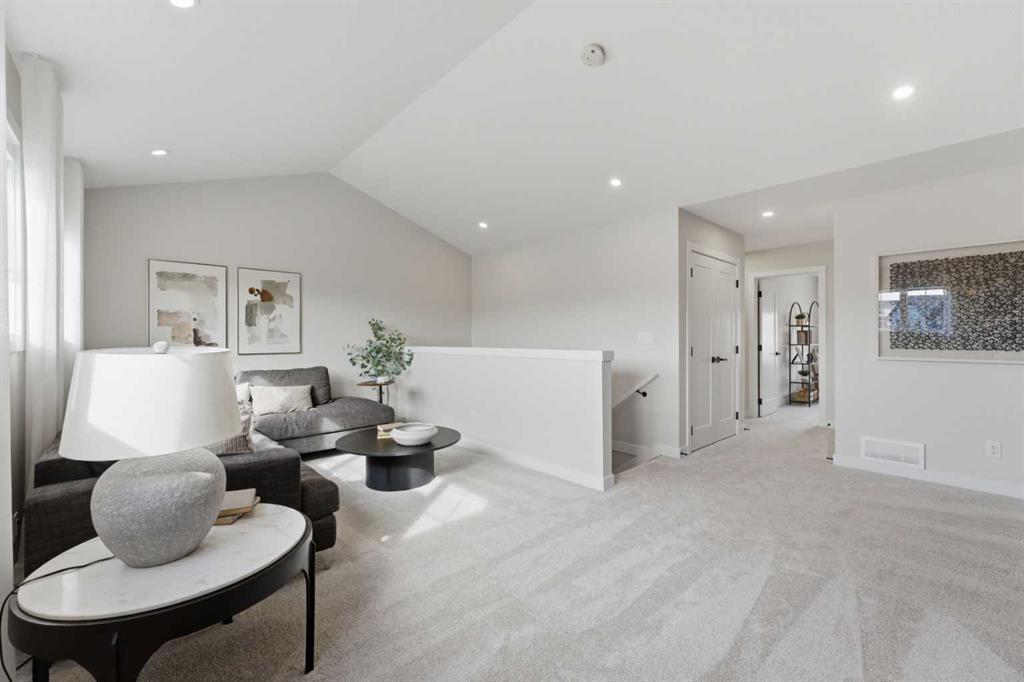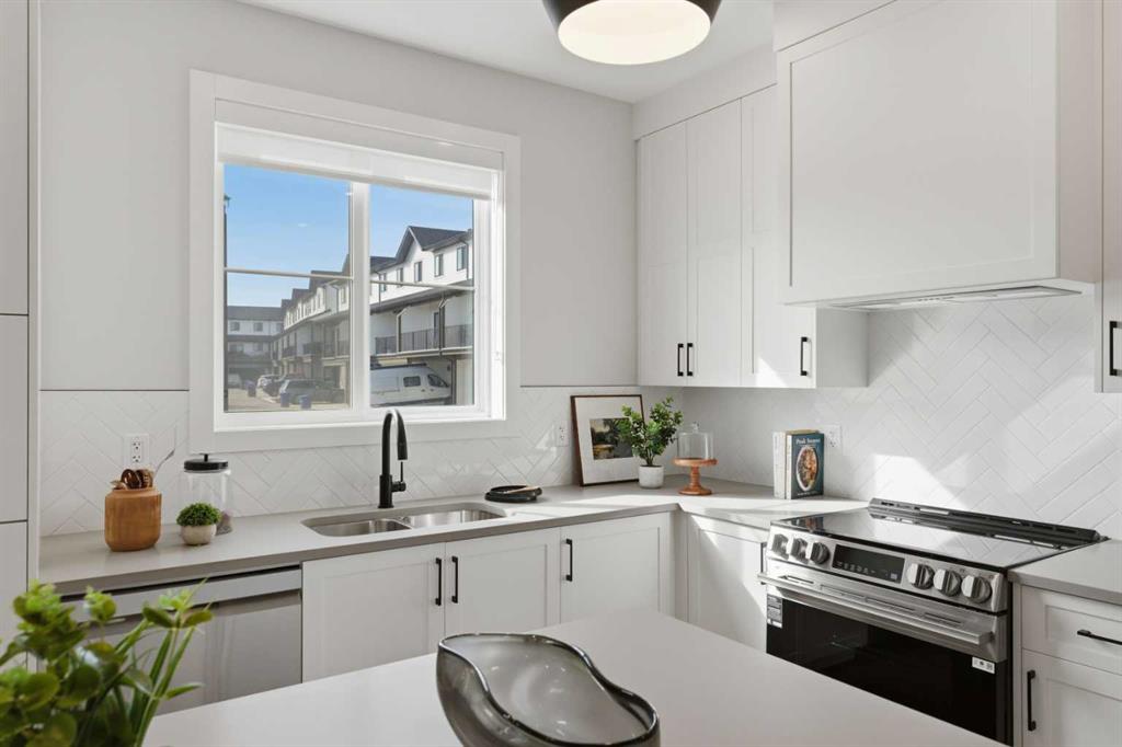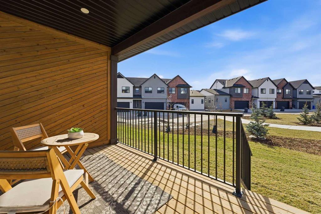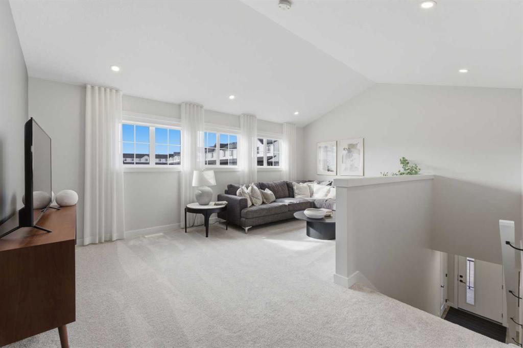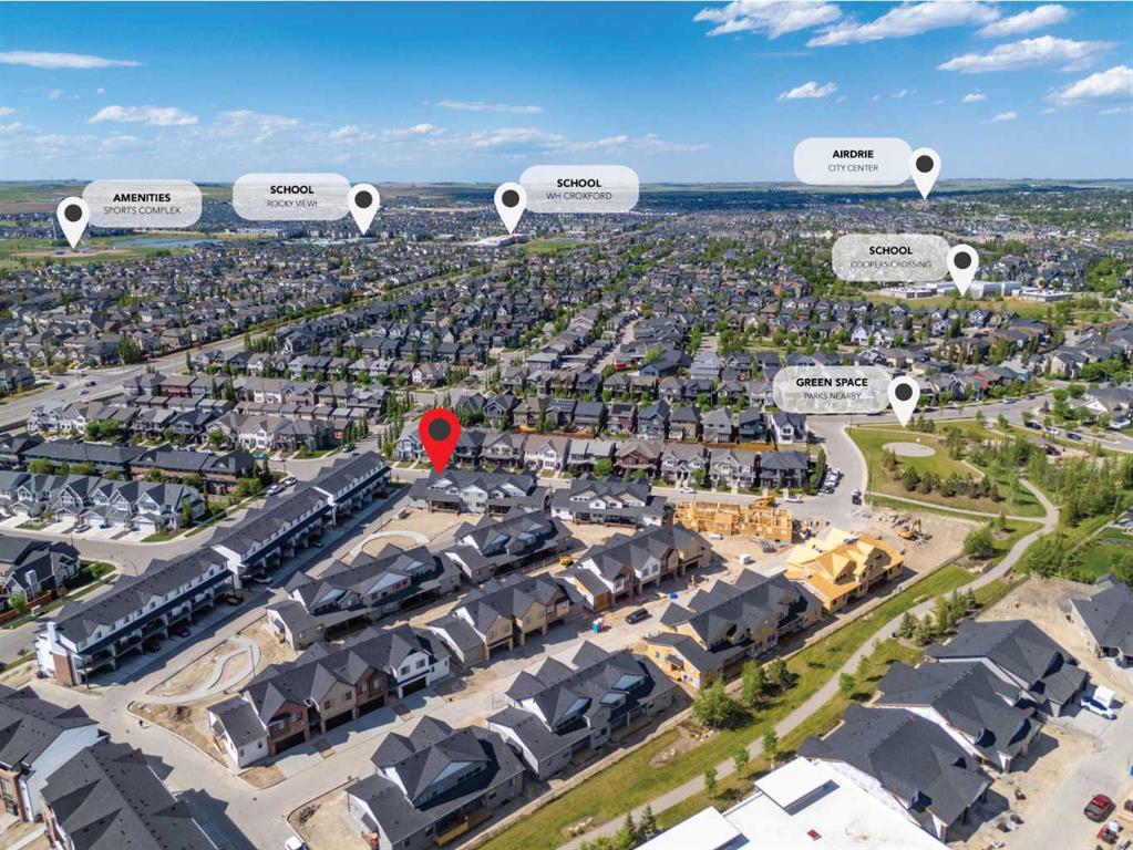 Experience luxury and convenience in the heart of Airdrie’s award-winning community, Cooper’s Crossing. As a former showhome, this stunning corner-unit townhome comes fully loaded with premium designer upgrades and the added comfort of central air conditioning already installed. The main level offers an open-concept layout with 9-foot ceilings, a gourmet kitchen featuring an oversized island and stainless steel appliances, and a private primary retreat with soaring vaulted ceilings and a spa-inspired ensuite. The sun-soaked upper level provides a versatile bonus room, two additional spacious bedrooms, and a dedicated laundry area. Enjoy sunshine all day and peaceful evenings on your covered south-facing balcony, complete with a gas line and views of the landscaped green space. This home is finished with a double attached garage and modern contemporary exteriors, offering a sophisticated "Lock & Leave" lifestyle. With low condo fees of $347/month, all exterior maintenance, snow removal, and landscaping are professionally managed. Discover effortless, maintenance-free living in one of Airdrie's most prestigious locations. Book your private tour today!